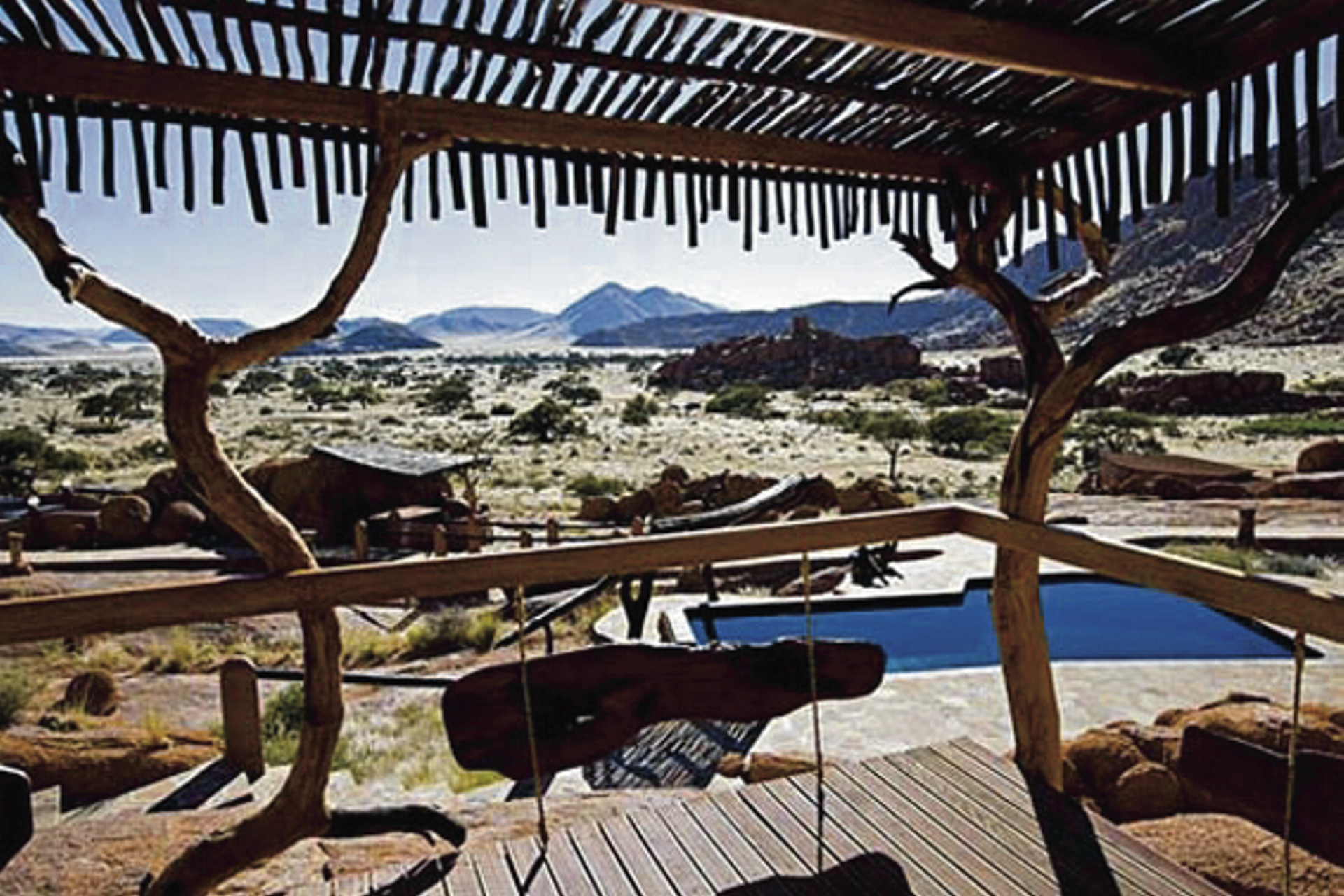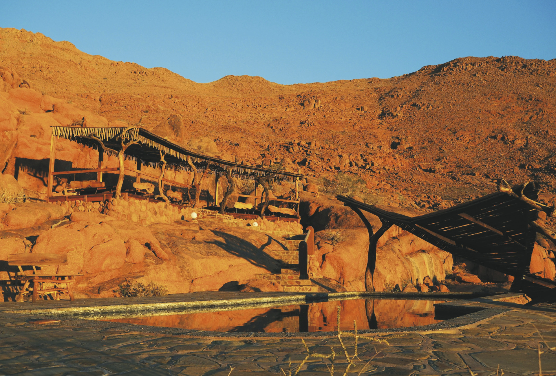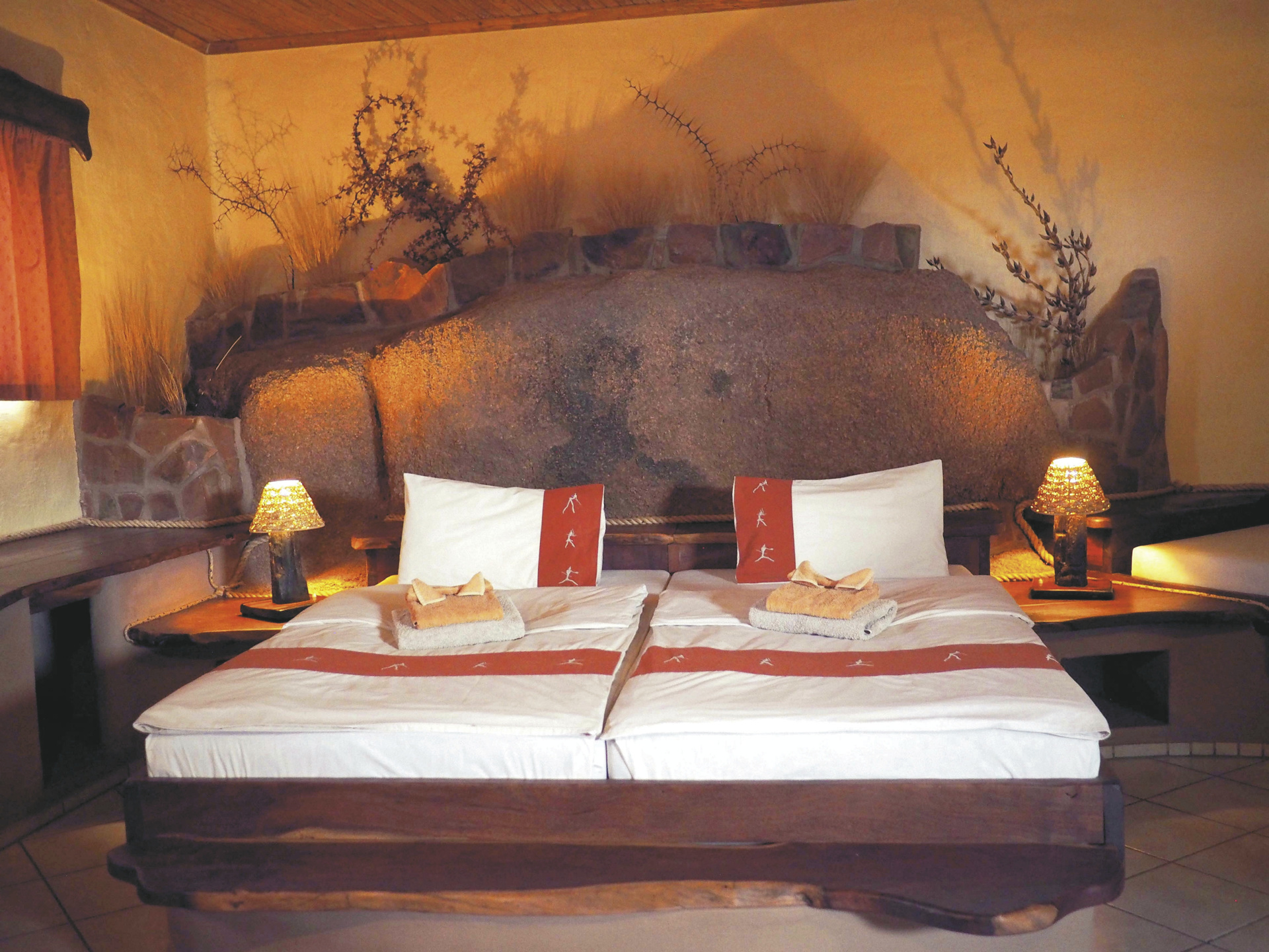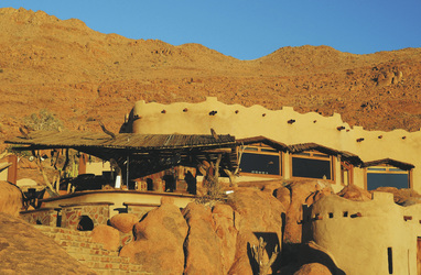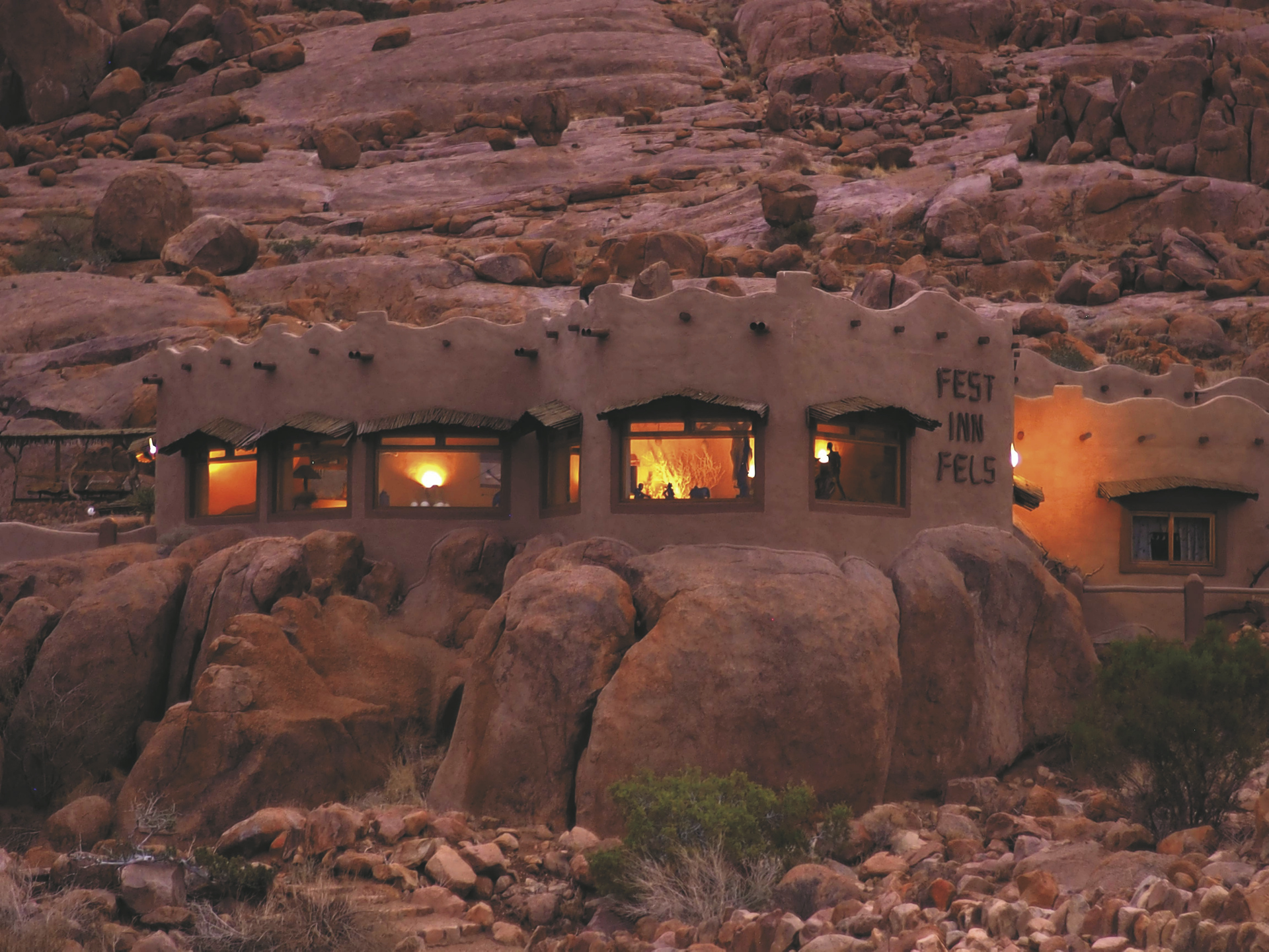 Die Farm-Lodge "Fest Inn Fels" liegt auf der aktiven Rinder-, Pferde- und Geflügelfarm Ranch Koiimasis. Eingebettet zwischen roten Granitfelsen, hüllt die untergehende Sonne diesen Ort in magisches Licht. Die Mahlzeiten nehmen Sie im originellen Felsenrestaurant mit tollem Panoramablick ein, an kühlen Abenden spendet hier ein Kamin behagliche Wärme. Am Pool und auf der erhöhten Sonnenterrasse können Sie Ihre Seele baumeln lassen und genießen einen einmaligen Blick über die pittoreske Landschaft inmitten der Felsen. Am Abend trifft man sich zum Plausch unter freiem Himmel in der Sky-Bar. Optionale Aktivitäten: markierte Wanderwege und Kletterstrecken, Farmtouren auf den Spuren der San, Panoramafahrten, Sternenbeobachtung, Wildpferdbeobachtung.