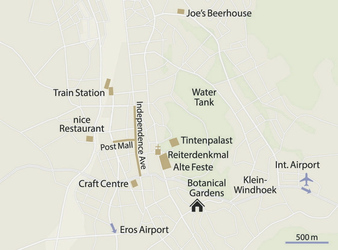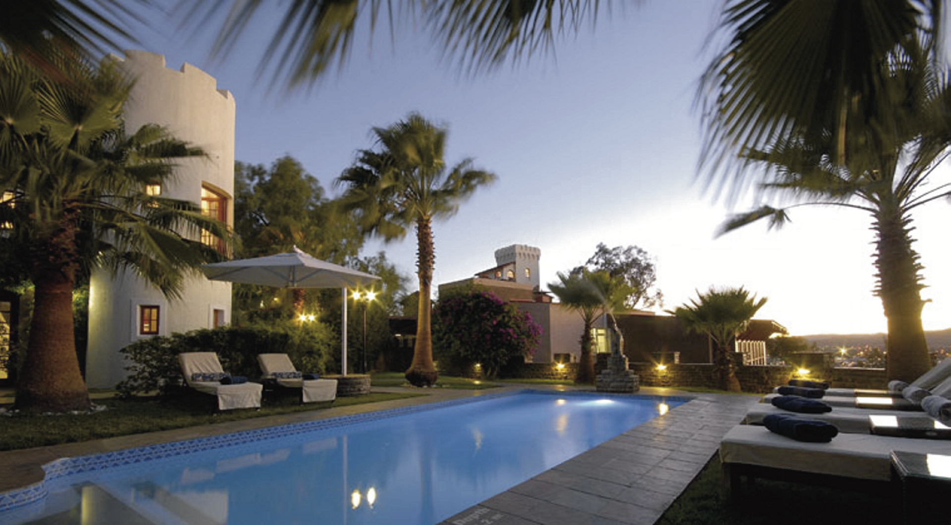 Das bereits 1914 vom Grafen von Schwerin für seine Verlobte erbaute Haus steht in Namibia für hervorragenden Service und kulinarische Genüsse. Das Top Gourmet-Restaurant Leo‘s at the Castle verfügt über den größten privaten Felsen-Weinkeller des Landes und ist längst kein Geheimtipp mehr. Private Abendessen können Sie auch im Ritterraum einnehmen. Von der Terrasse hat man einen herrlichen Blick über die Stadt. Beheizbarer Pool mit Sonnenliegen, kostenloses WLAN und bewachter Parkplatz.
