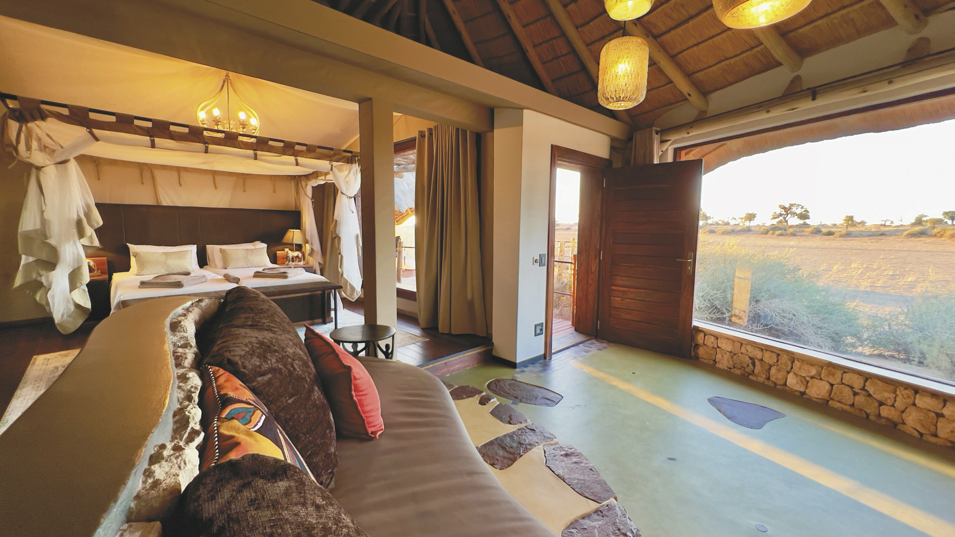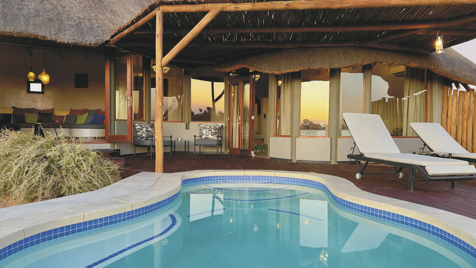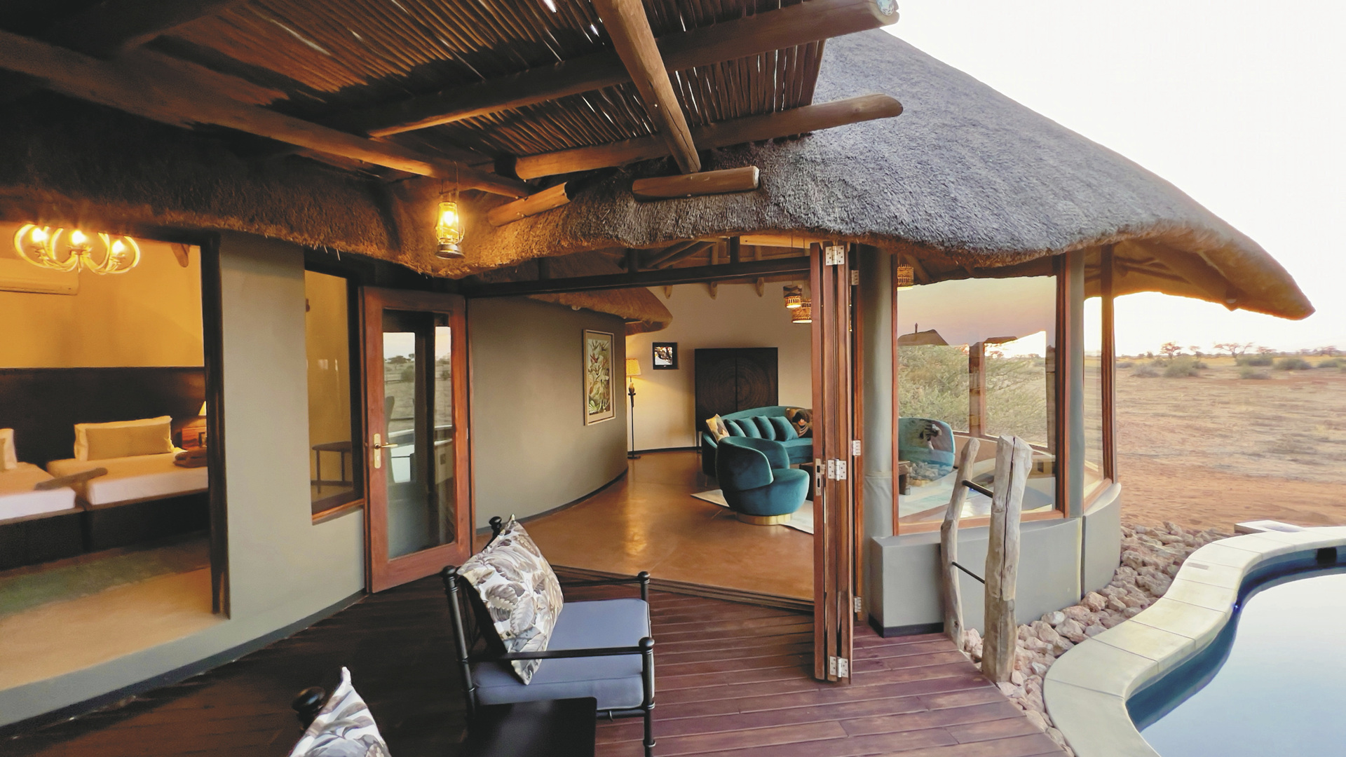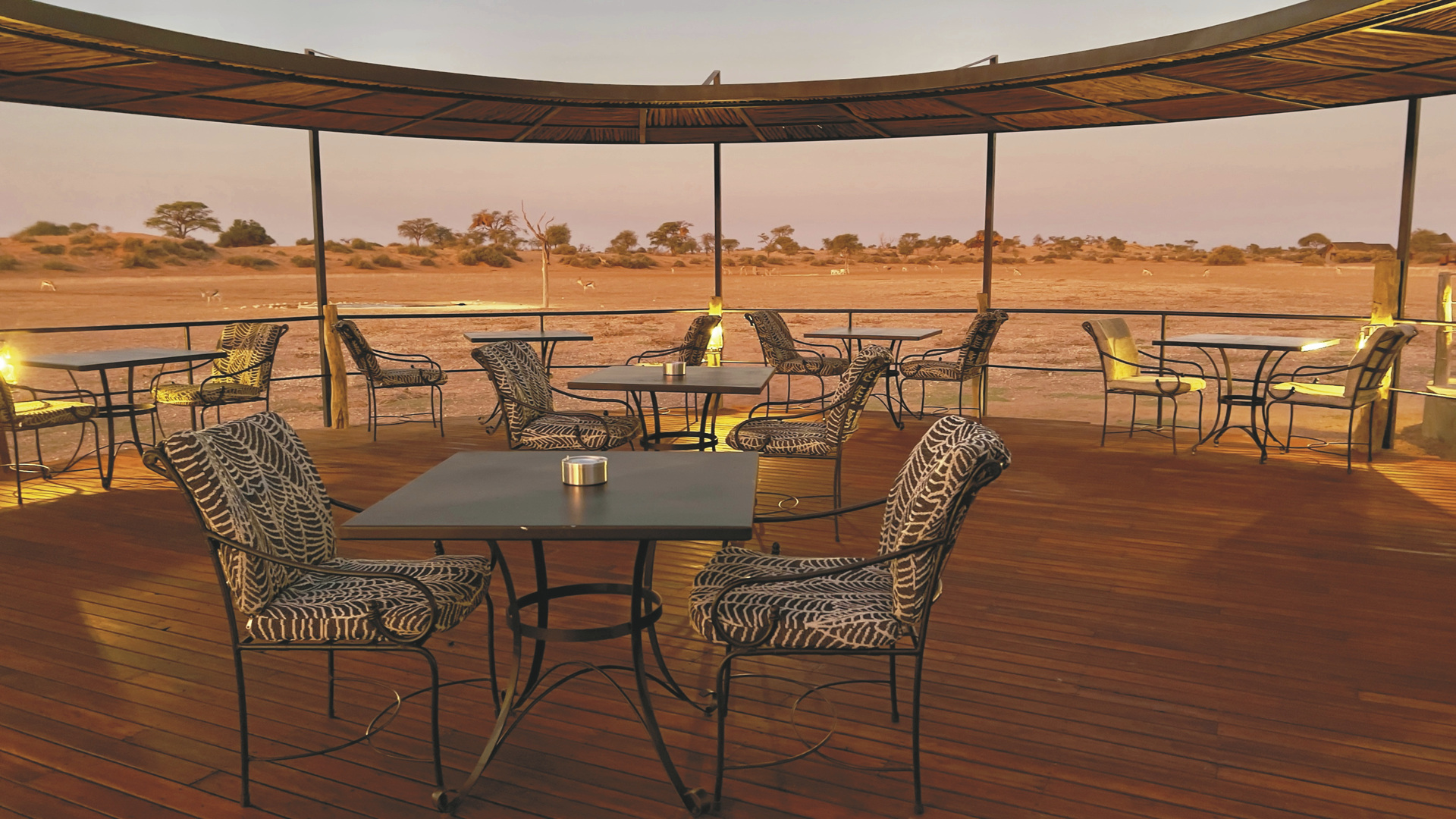 Inmitten der sanften Dünen der Kalahari liegt diese Oase. Der Hauptbereich liegt in der Mitte eines Vleis, einem flachen ausgetrocknetem See, und ist über einen Holzsteg zu erreichen. Hier befinden sich das stilvolle Restaurant mit Kamin und großer Aussichtsterrasse, die Bar und eine Lounge mit kostenlosem WLAN. Ein Pool mit Sonnenterrasse lädt zum Entspannen ein. Noch mehr Entspannung bietet ein Besuch im Spa. Optionale Aktivitäten: markierte Wanderwege, geführte Wanderungen, Pirsch-/Panoramafahrten, Mountainbike und Fatbike-Verleih. Eine tolle Möglichkeit die Kalahari mit allen Sinnen zu erleben ist die 3-tägige geführte Trans-Kalahari-Wanderung mit einer Übernachtung in der Lodge und einer Übernachtung im einsam gelegenen Dünencamp (für max. 4 Pers.).