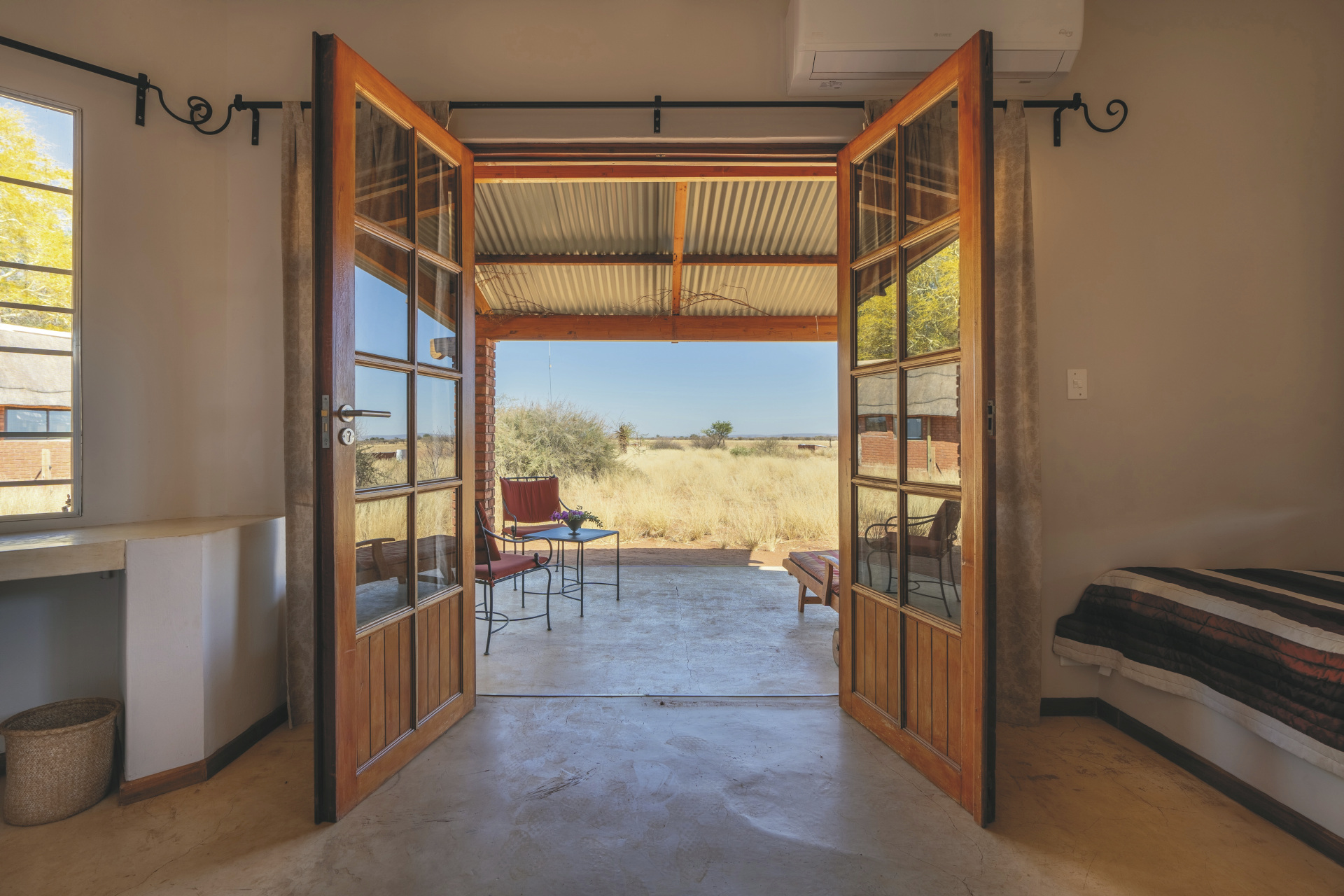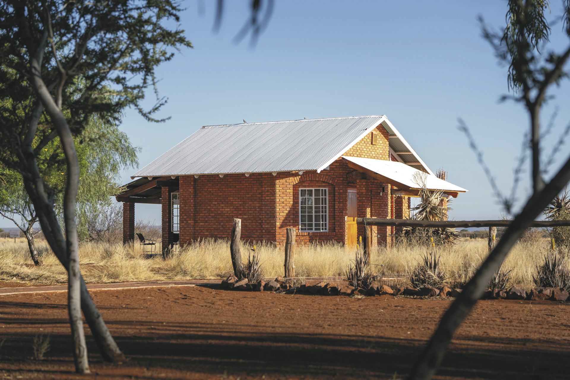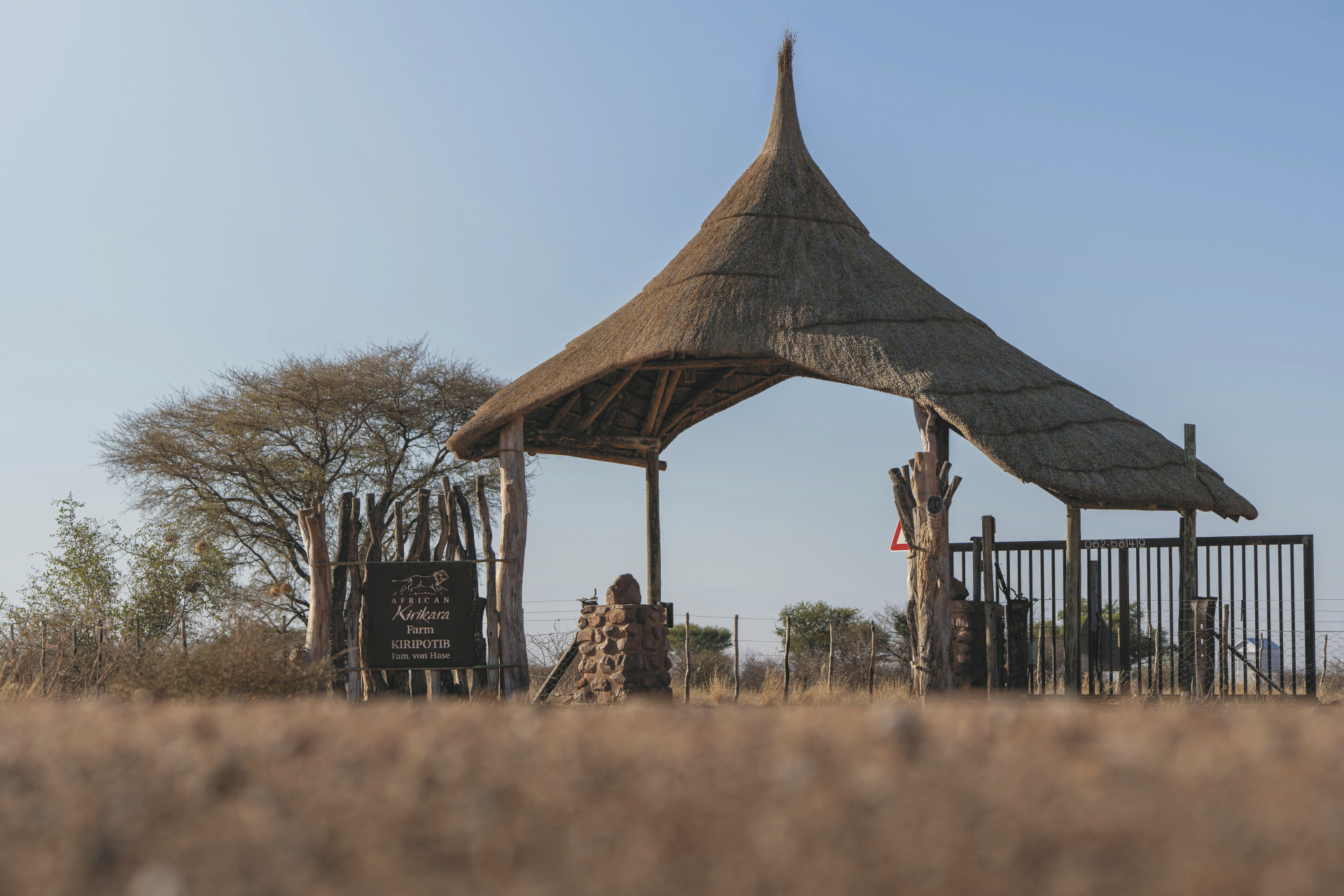 Das weitläufige Farmland für Rinder, Schafe und Wildtiere liegt ca. 160 km südöstlich von Windhoek und dem internationalen Flughafen (ca. 2 Fahrtstunden). Transfers möglich, Flugpiste vorhanden.