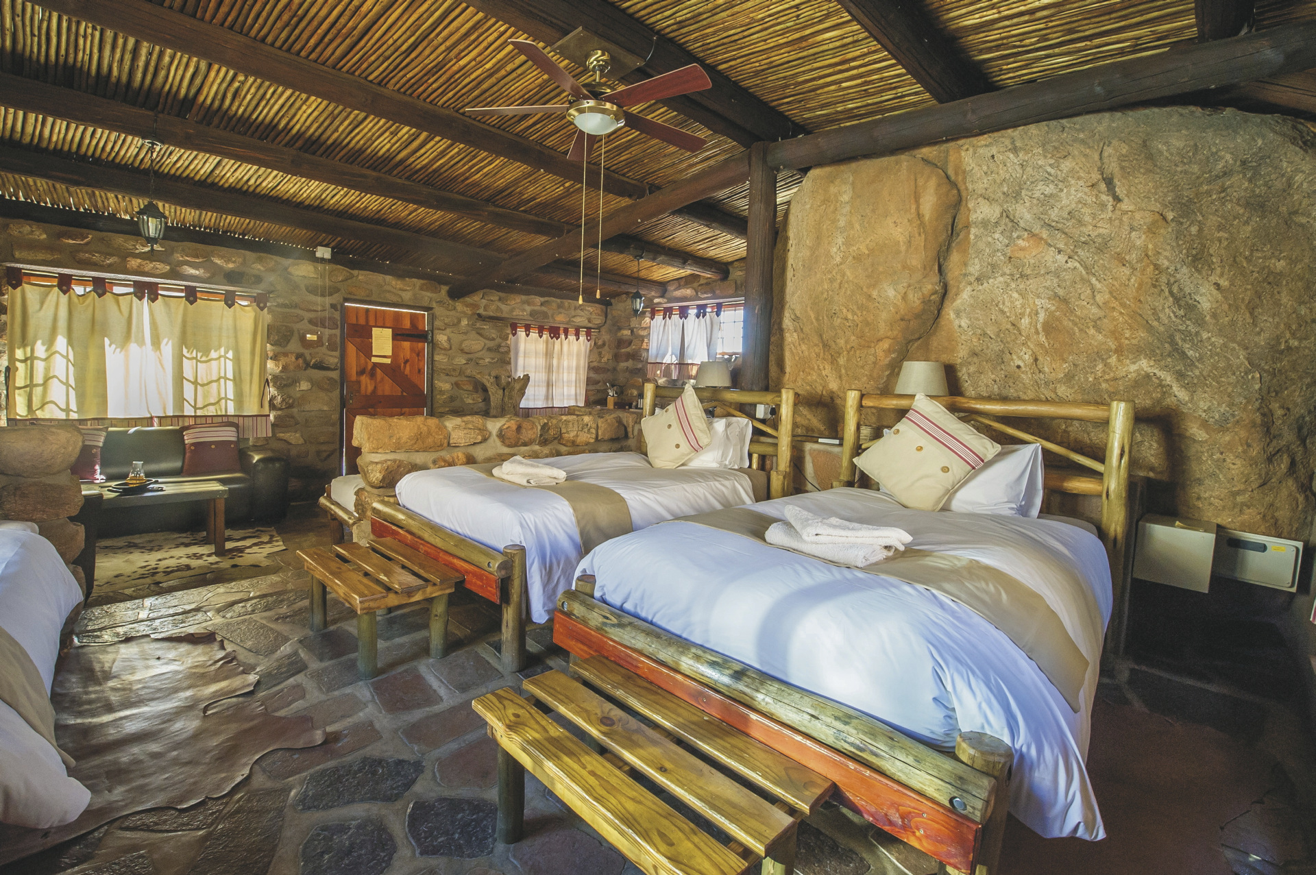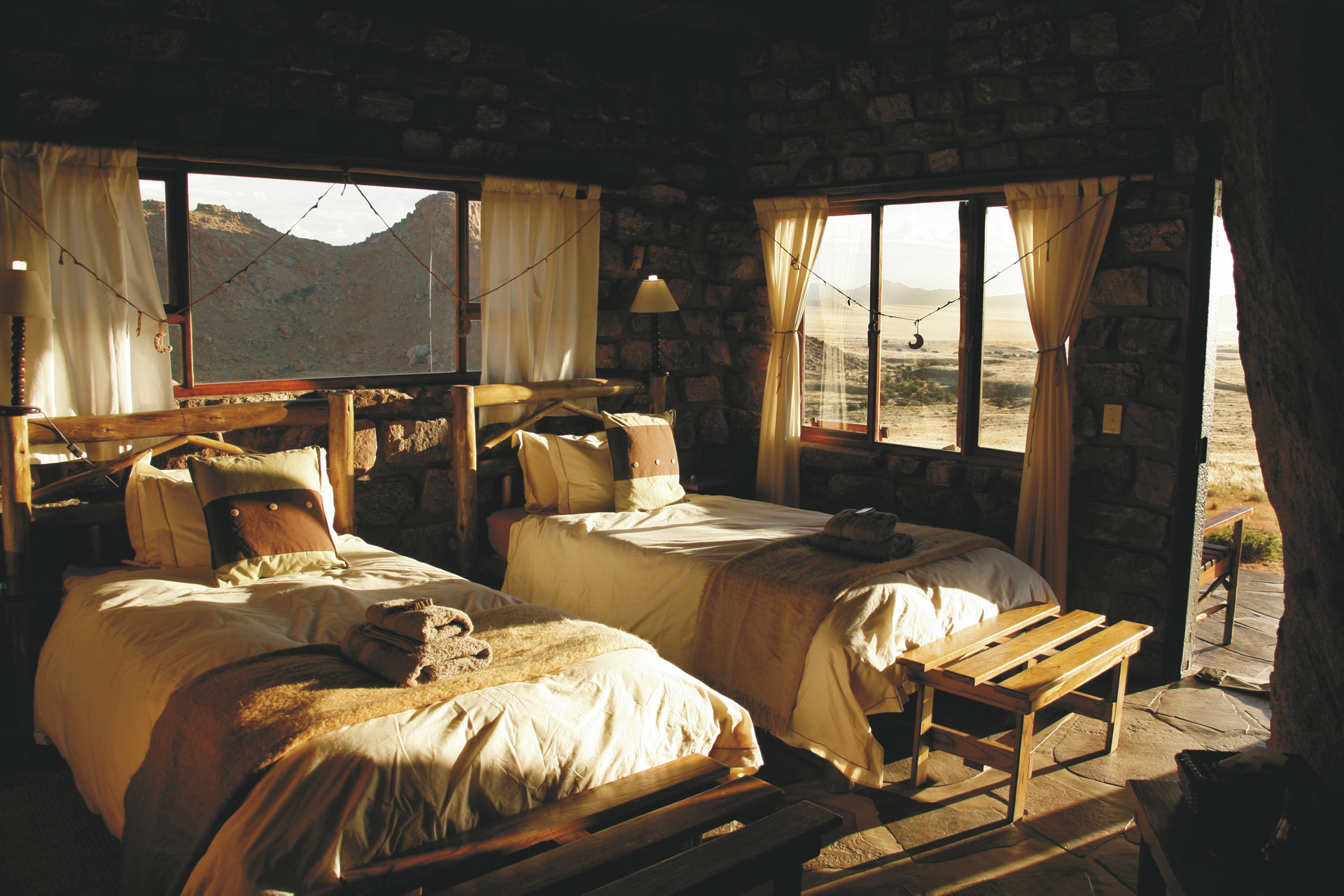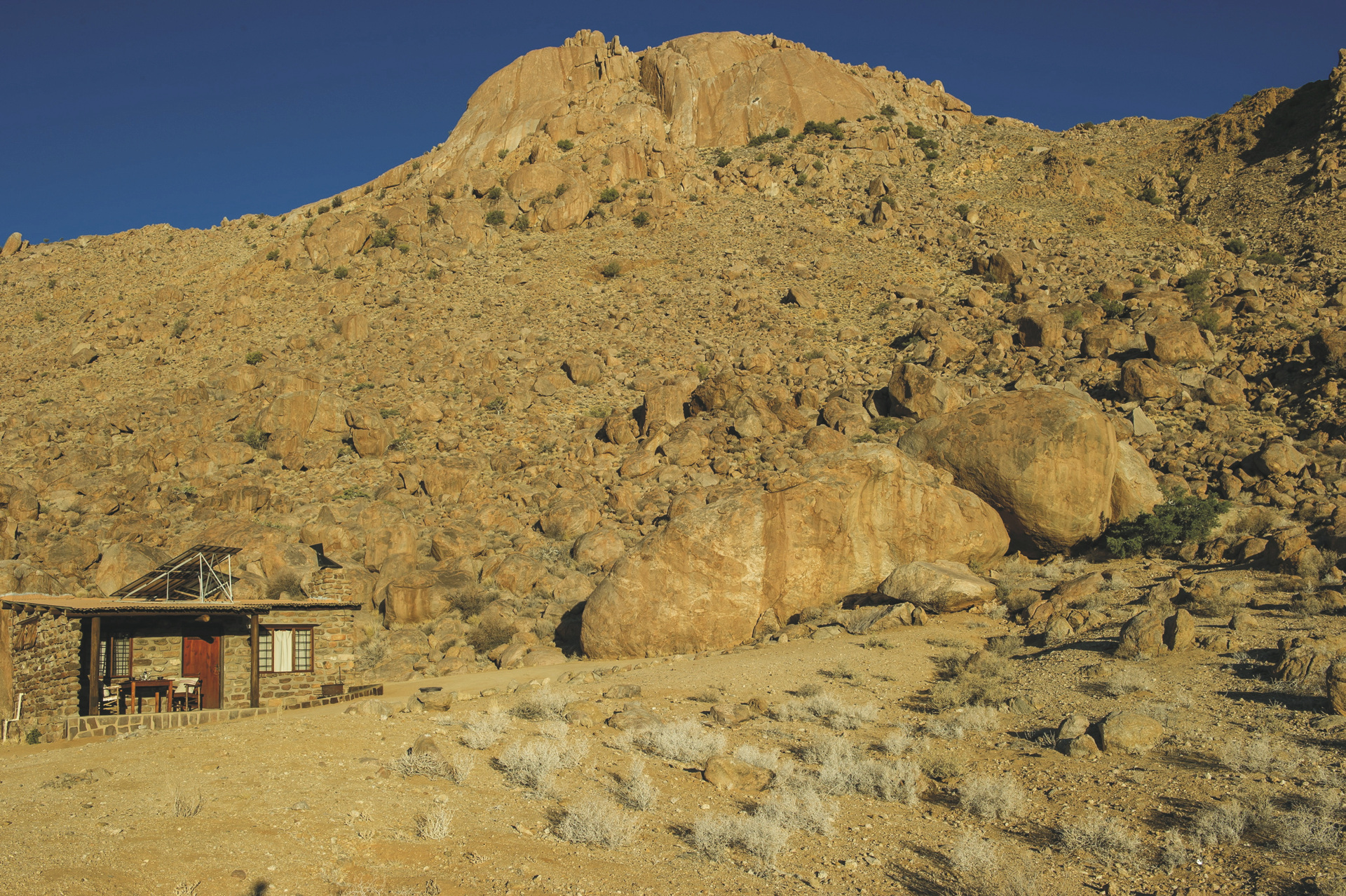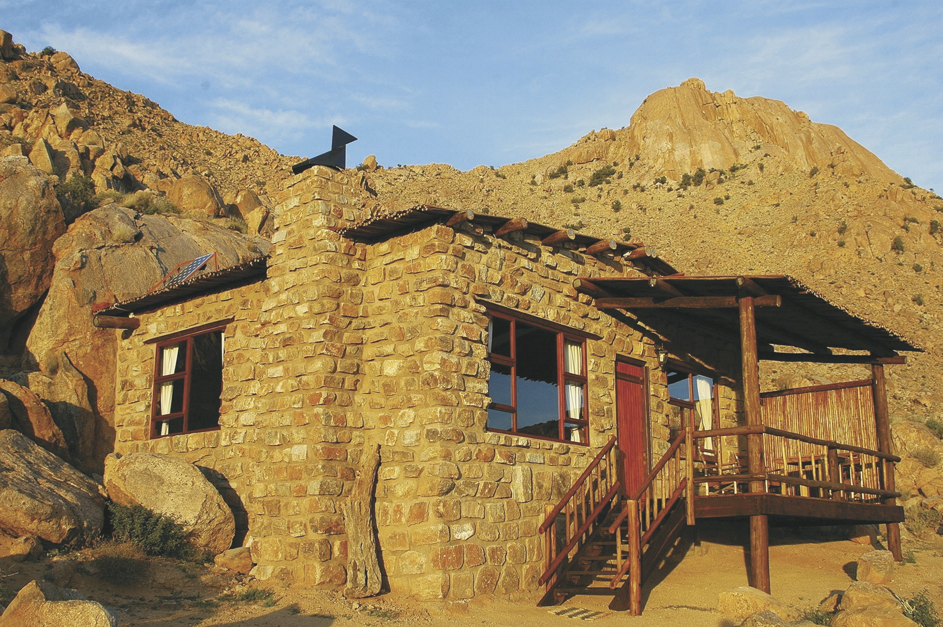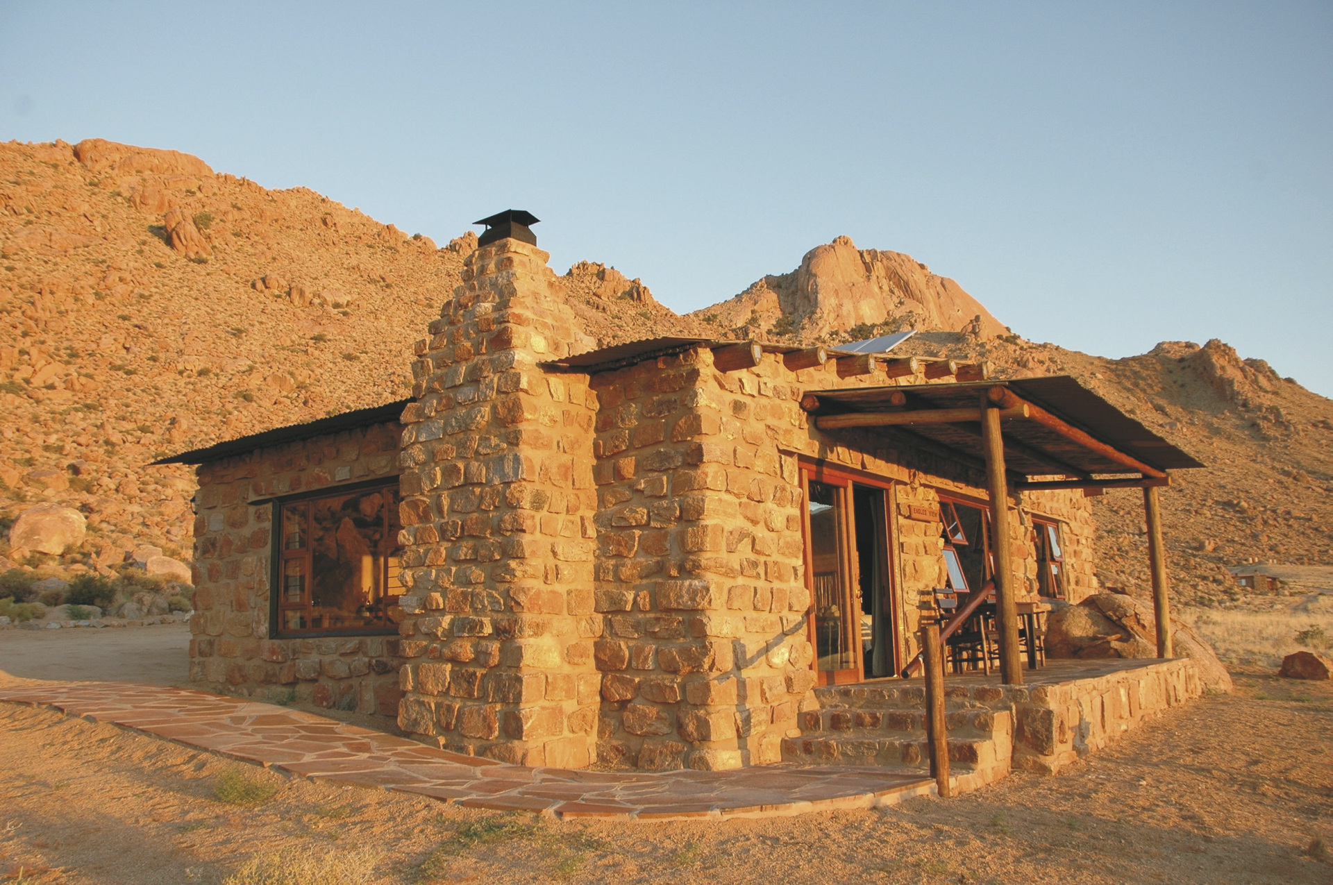 Die 8 Chalets für Selbstversorger liegen eingebettet zwischen Granitfelsen mit einzigartigem Blick in die Wüste. Die Chalets wurden individuell gebaut und kombinieren natürliche Elemente und Felsen in der Inneneinrichtung zu einer rustikalen und luxuriösen Mischung. Sie sind gemütlich eingerichtet und verfügen über ein Bad, Kochnische, Minibar, Lounge, Kamin, Ventilator, Safe und eine Terrasse mit Grillplatz. Einige Chalets sind für Familien mit für 3 und 4 Personen geeignet.