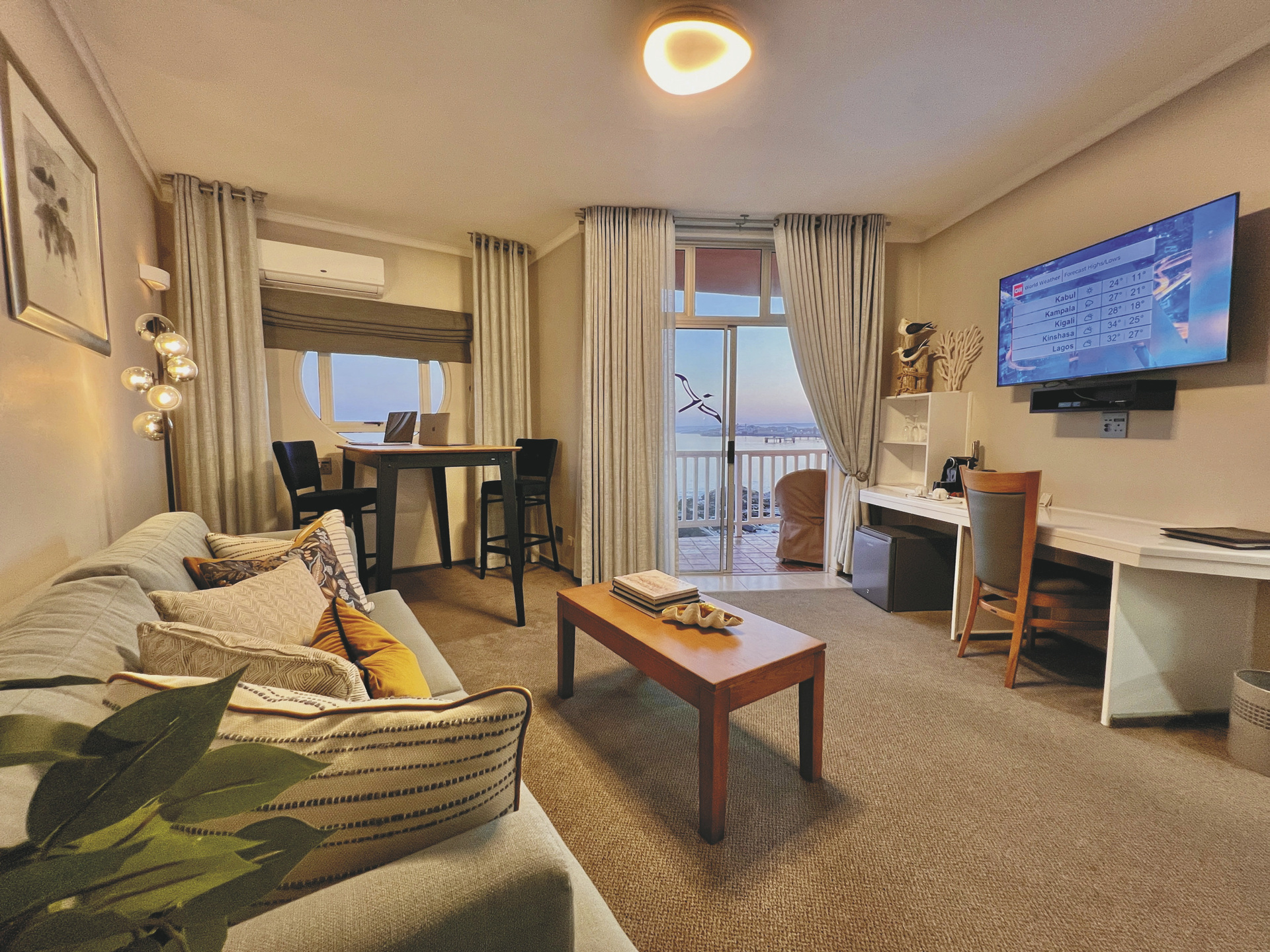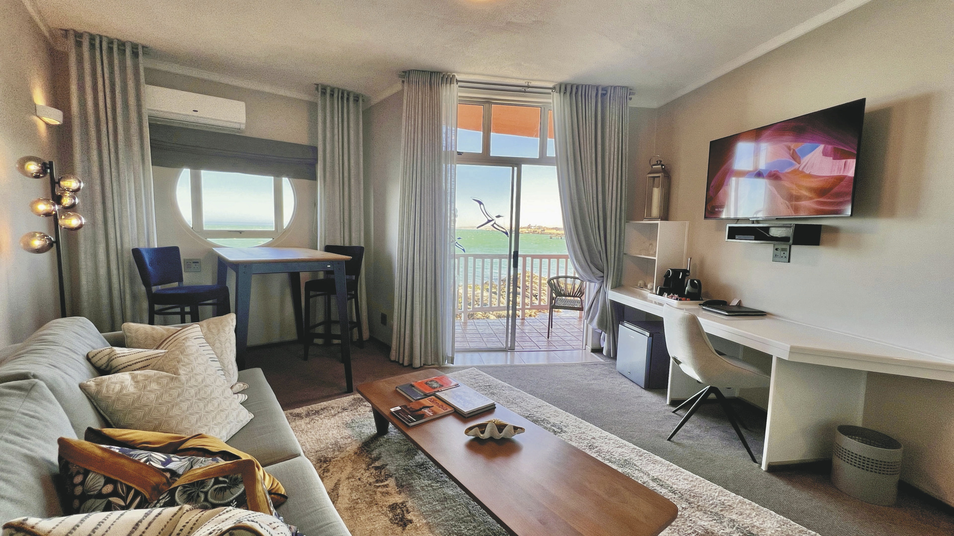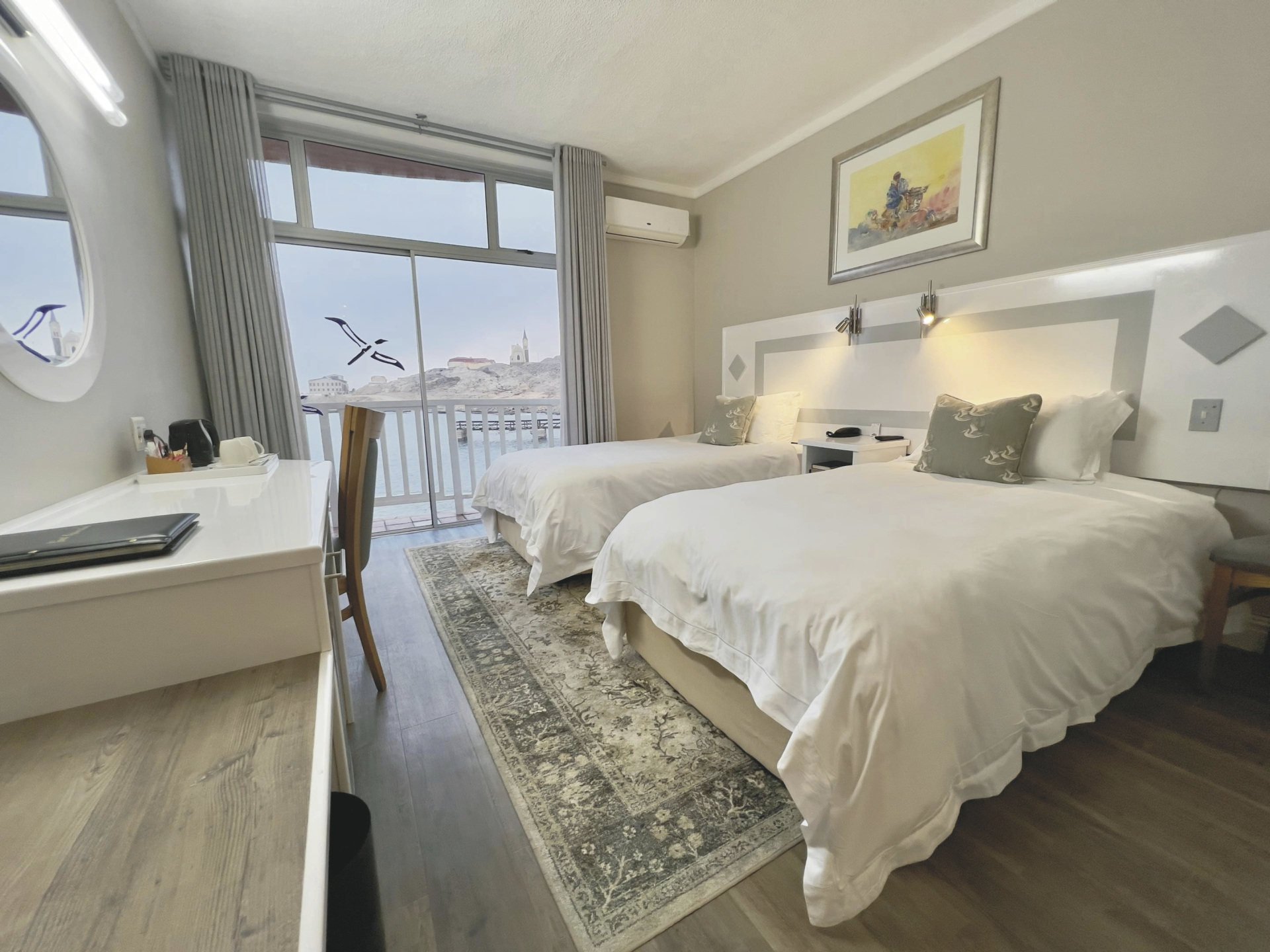 Entspanntes Ambiente mit freundlich, professionellem Service erwartet Sie. Die direkte Meerlage mit eigenem Gezeitenstrand und Badesteg sind einzigartig in Namibia. Der windgeschützte Innenhof ist eine grüne Oase mit einem großen Pool und der Sonnenterrasse. Außerdem gibt es eine Sauna mit Meerblick für entspannte Stunden und am Strand einen Spielplatz für die kleinen Gäste. Am Abend trifft man sich auf ein Getränk in der Crayfish Bar oder in der Lounge, wo an kühlen Abenden ein Feuer im Kamin lodert. Das renommierte Penguin Restaurant ist bekannt für seine gute Küche mit frischen Meeresfrüchten, genießen Sie kulinarische Köstlichkeiten auf der Terrasse und lauschen dabei dem Rauschen der Wellen. Kostenloses WLAN finden Sie im gesamten Hotel, für Ihr Mietfahrzeug stehen sichere Parkmöglichkeiten zur Verfügung. Optional: verschiedene Rundfahrten & Aktivitäten, z.B. ein Ausflug in die Geisterstadt Kolmanskuppe.