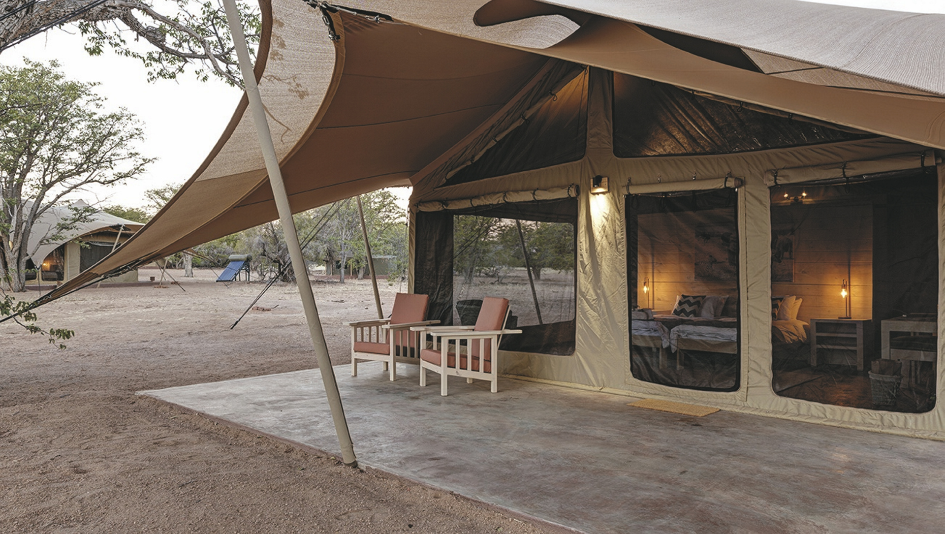 Die 9 geräumigen Safarizelte sind hell, mit viel Liebe zum Detail eingerichtet und verfügen alle über ein eigenes, offenes Badezimmer; Ventilator, Moskitonetz, Safe und eine kleine überdachte Terrasse. Durch die Moskitonetz bespannten Fenster hat man einen herrlichen Blick in den Busch, gleichzeitig sorgt dies für eine gute Belüftung und Klimatisierung. Genießen Sie das Abenteuer eines Zeltcamps, ohne auf Luxus zu verzichten! Zusätzlich gibt es für Familien ein geräumiges Safarizelt mit Schlaf- und einem Badezimmer.
