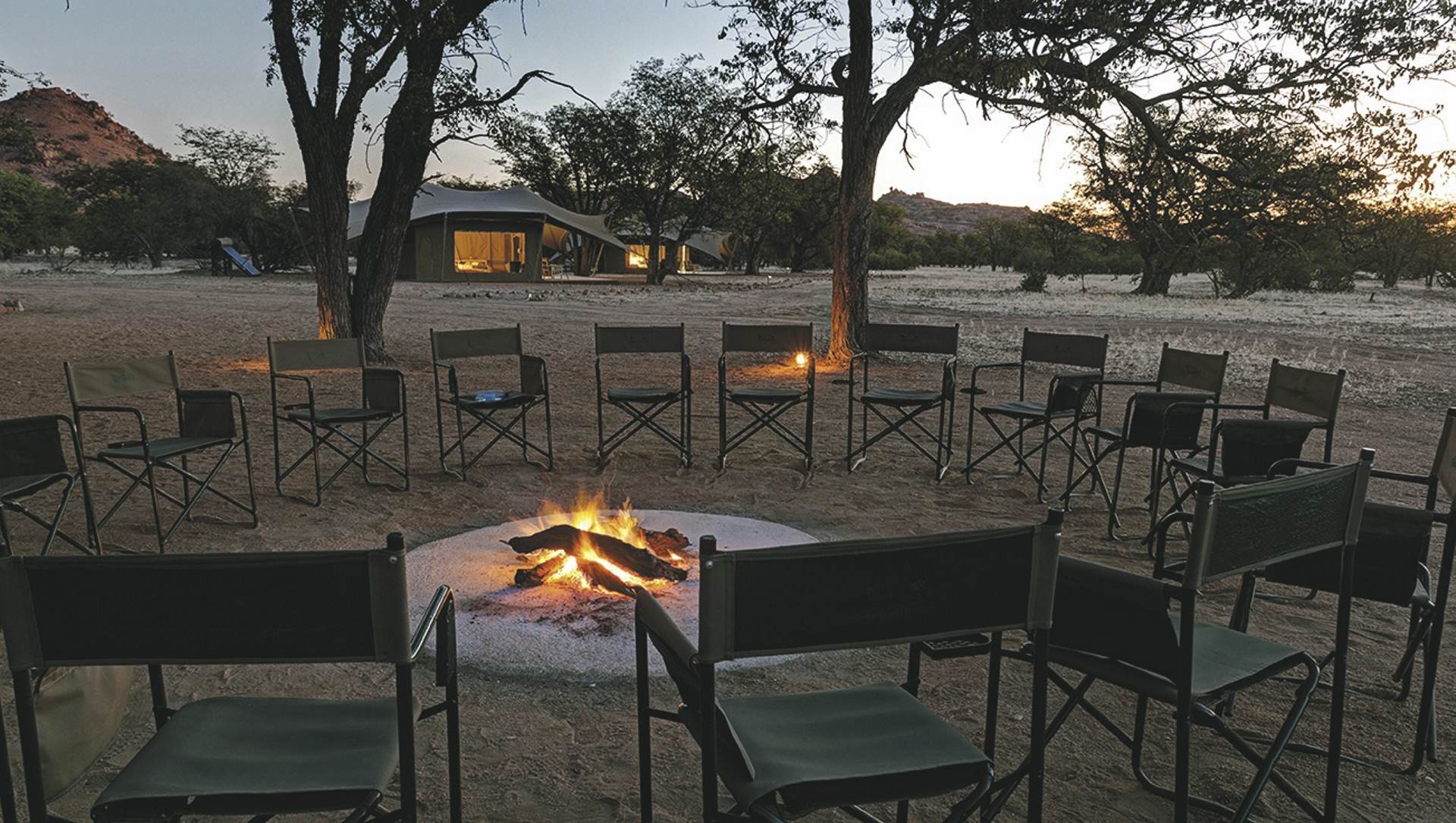 Im Hauptbereich finden Sie das große Lounge- und Speisezimmer mit der Honesty-Bar. Am Abend lodert ein gemütliches Feuer in der Feuerstelle und lockt zum Plausch. Ein herrlicher Pool bietet Erfrischung an heißen Tagen. Am Wasserloch kann man mit etwas Glück vorbeiziehendes Wild beobachten. Kostenloses WLAN im Hauptbereich. Optionale Aktivitäten: Rundfahrt zu den Sehenswürdigkeiten um Twyfelfontein, Pirschfahrt zum Aufspüren der hier lebenden seltenen Wüstenelefanten.