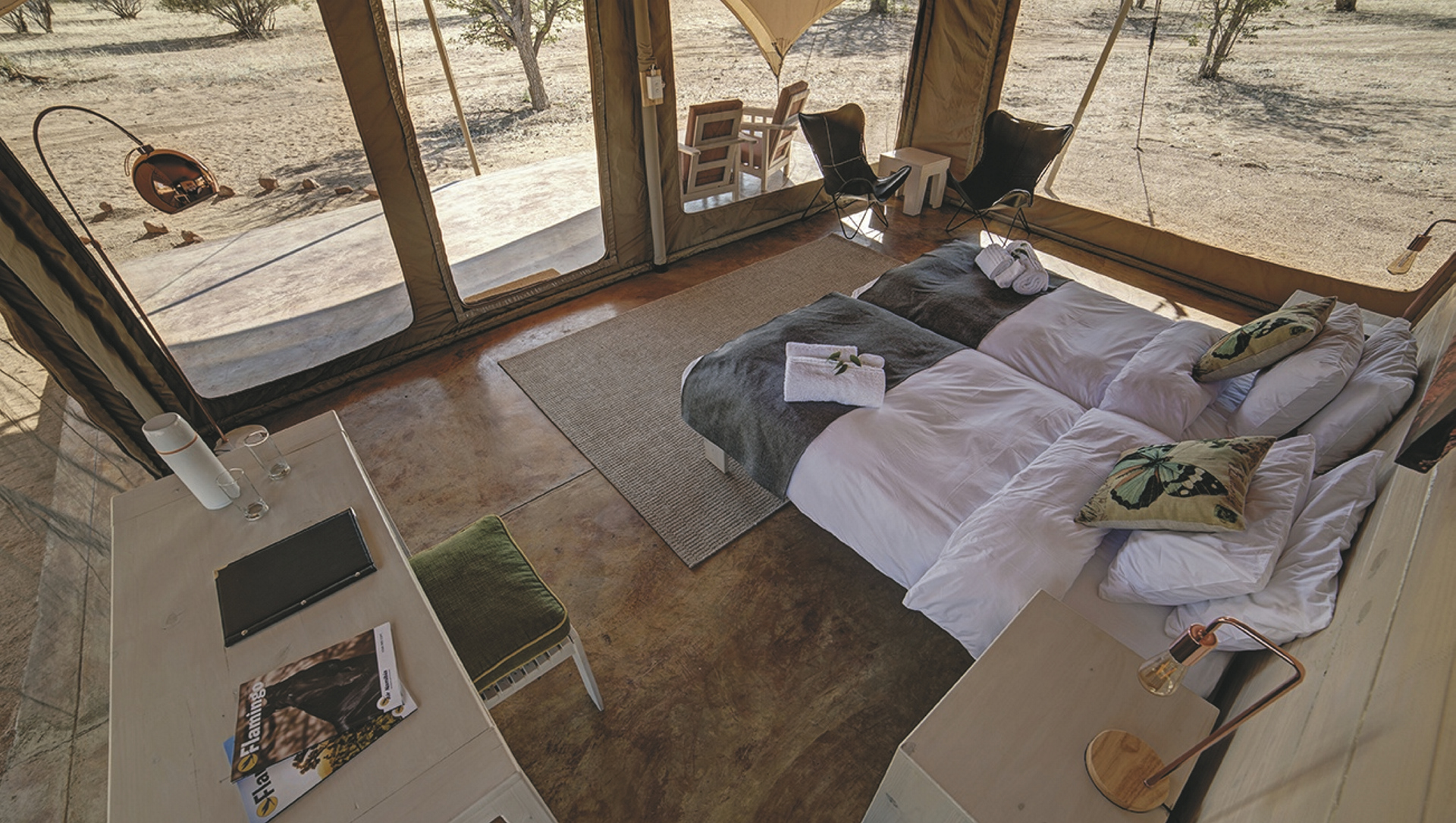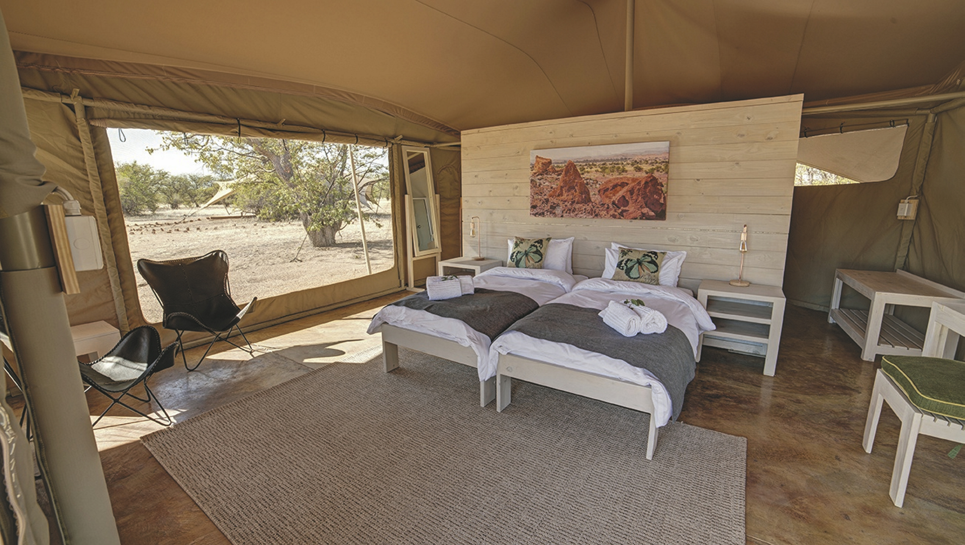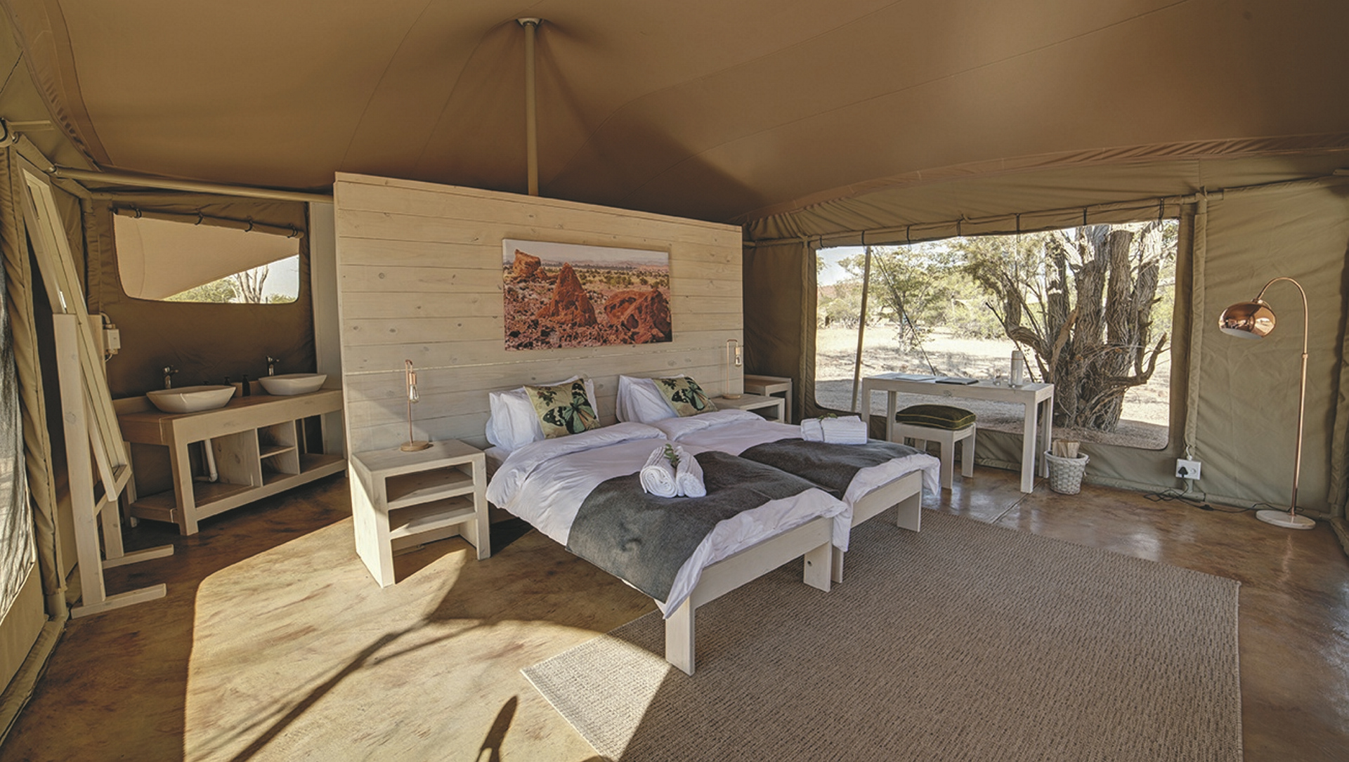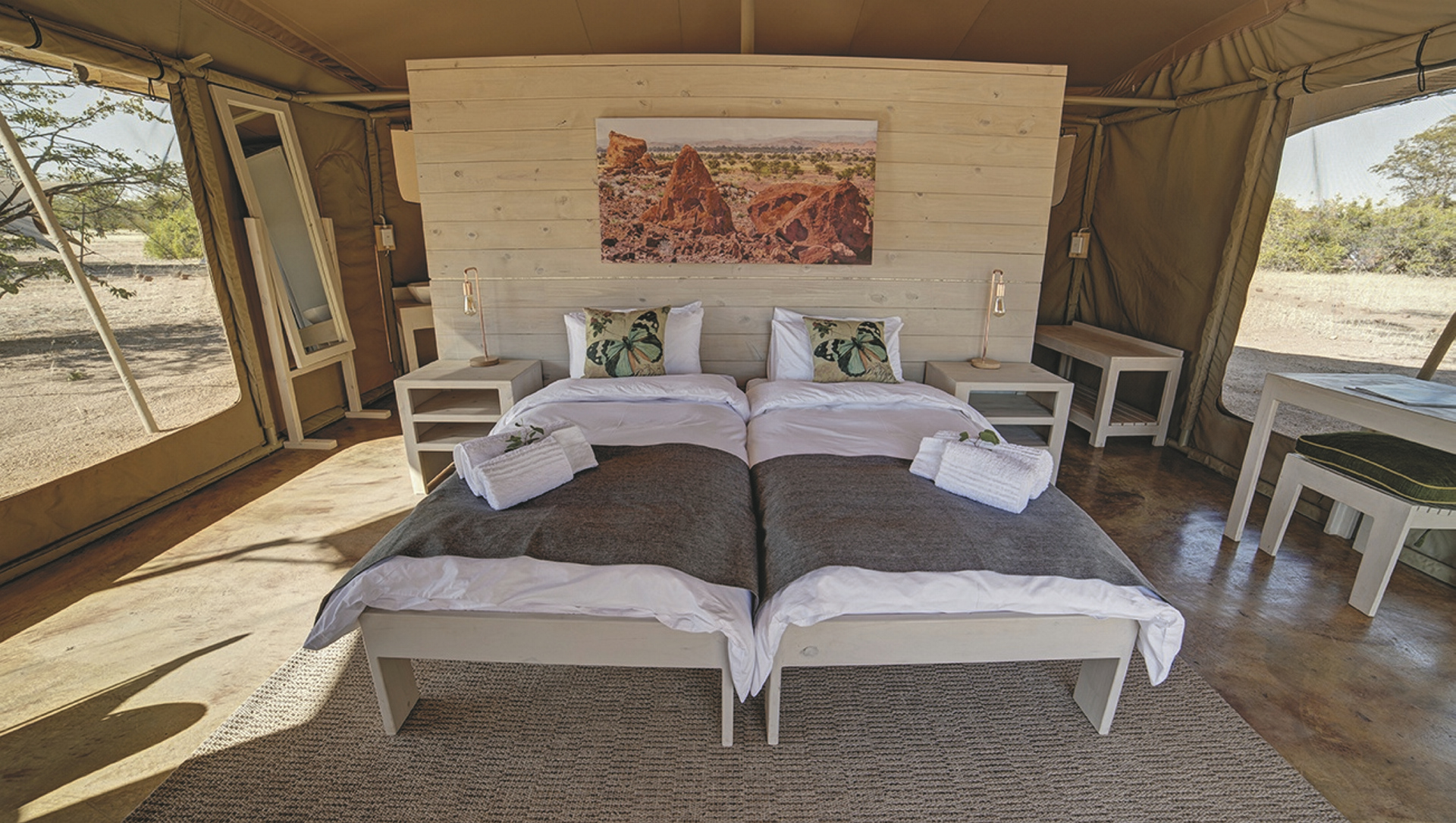 Dieses Camp verbindet im Design ein Hauch von Abenteuer mit komfortabler Gemütlichkeit. Hell, luftig und afrikanisch kommt das Interieur daher.