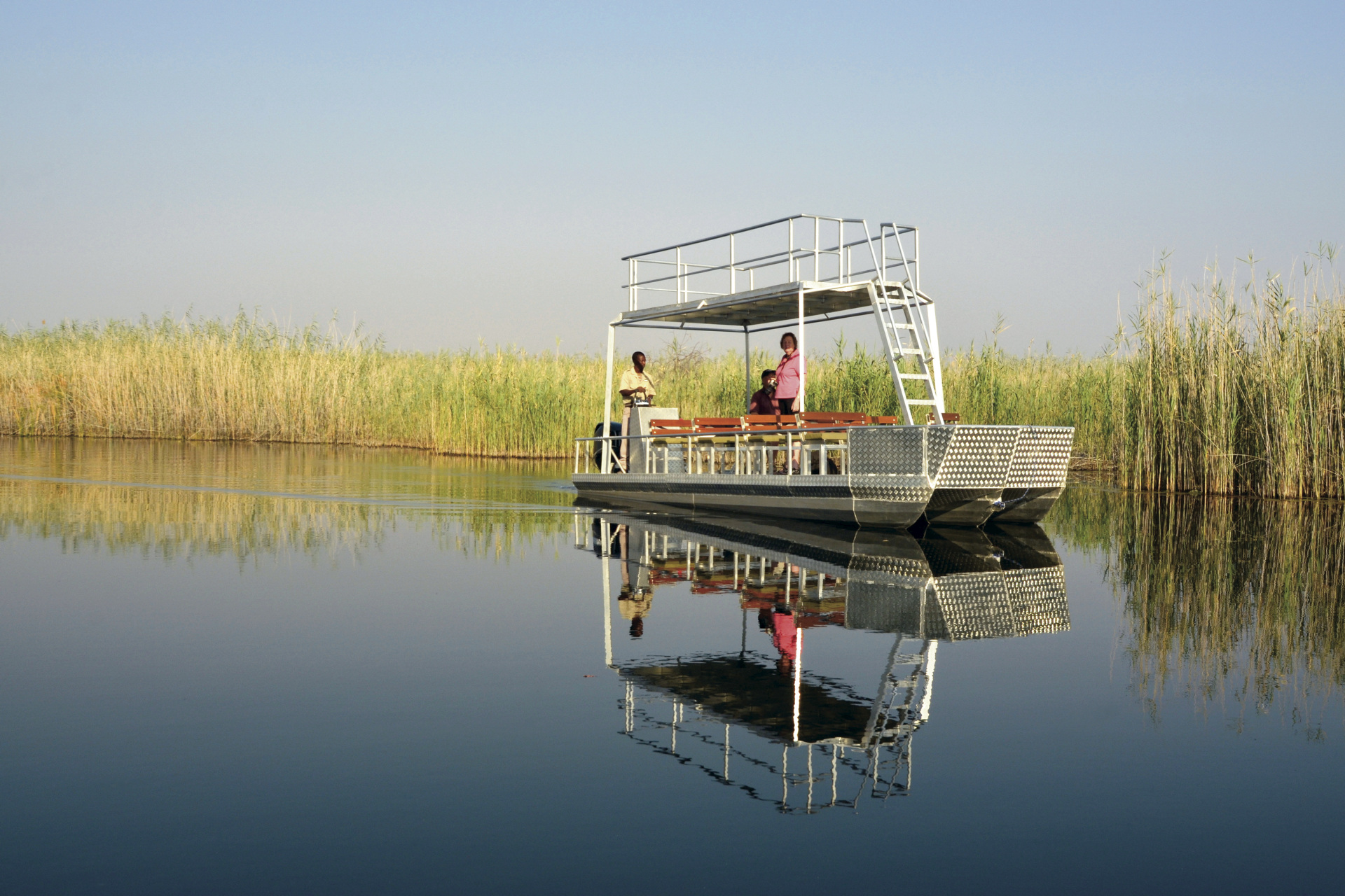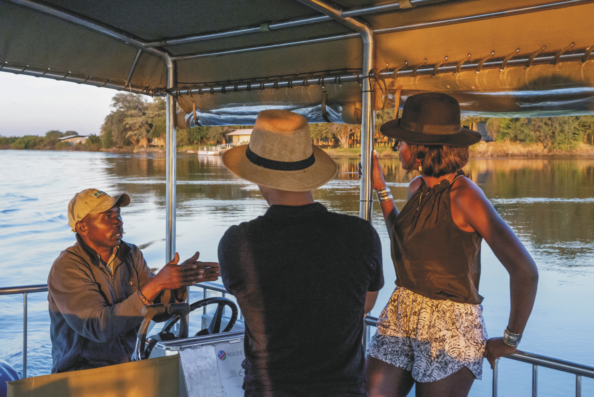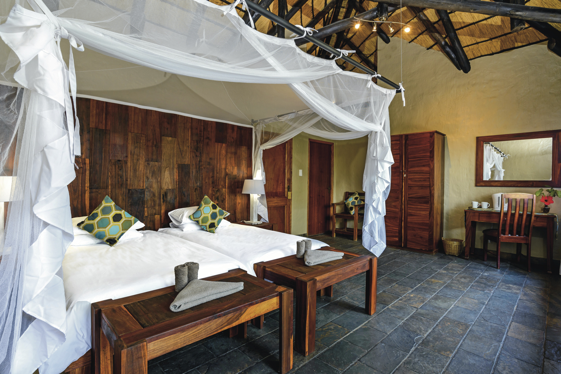 Ihr Aufenthalt auf Namushasha beginnt an einem beeindruckenden Eingangsportal im afrikanischen Stil mit einem hölzernen Kronleuchter und großen geschnitzten Tieren. Der Speisesaal mit seinem hohen Strohdach ist an den Seiten zum Fluss hin offen und bietet eine luftige Atmosphäre und einen großartigen Ausblick. Auf der vorgelagerten Terrasse wird bei gutem Wetter das Abendessen serviert, noch näher am Fluss liegt die Aussichtsterrasse mit freiem Blick auf das Wasser und das gegenüberliegende Ufer. Hier oder in der Bar trifft man sich nach einem ereignisreichen Tag zum Austausch. Der Pool liegt in der Gartenanlage und bietet auch zur Mittagszeit ein schattiges Plätzchen. Kostenloses WLAN finden Sie im Hauptbereich. Optionale Aktivitäten: Bootsafaris, Angeln, Pirschfahrten.