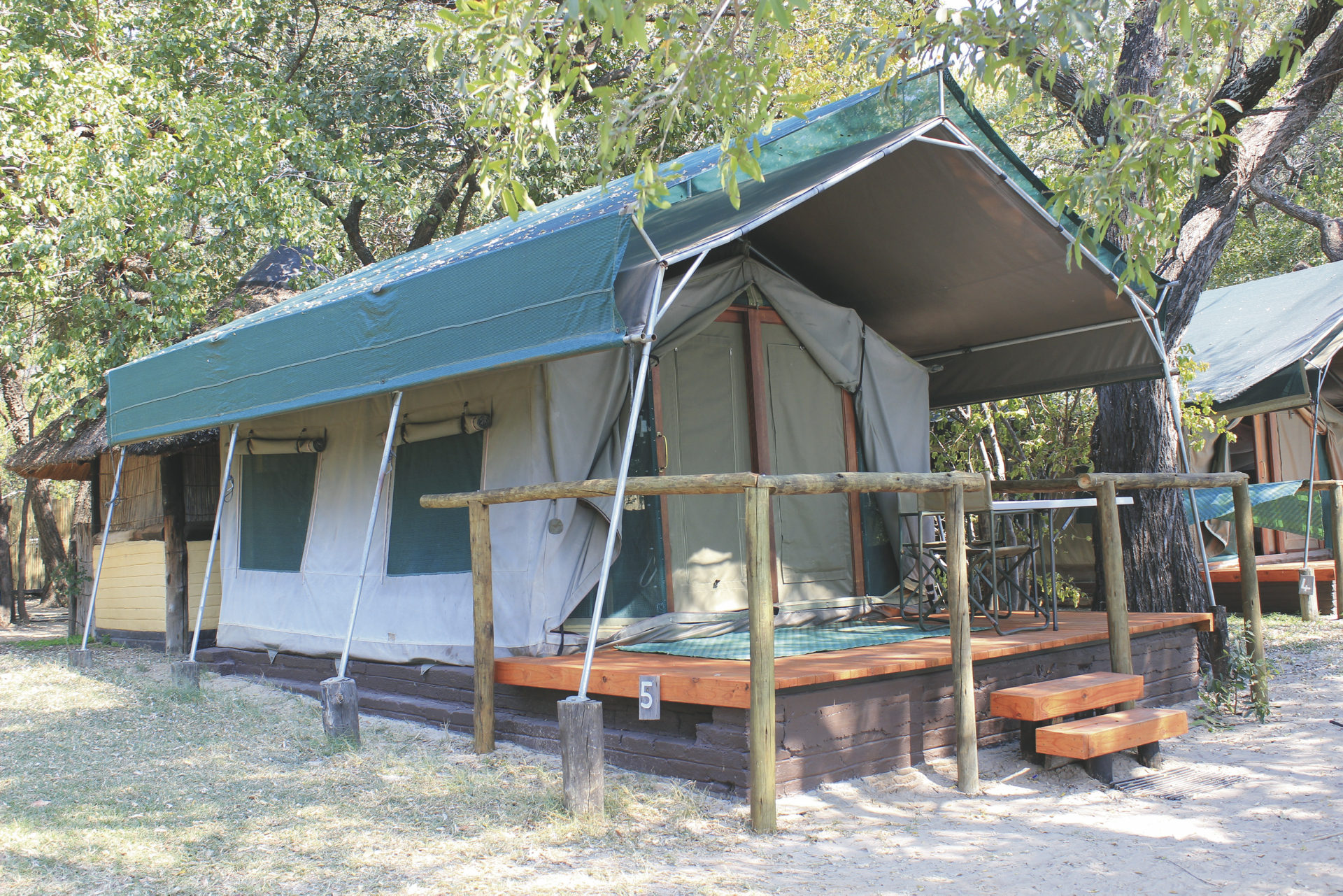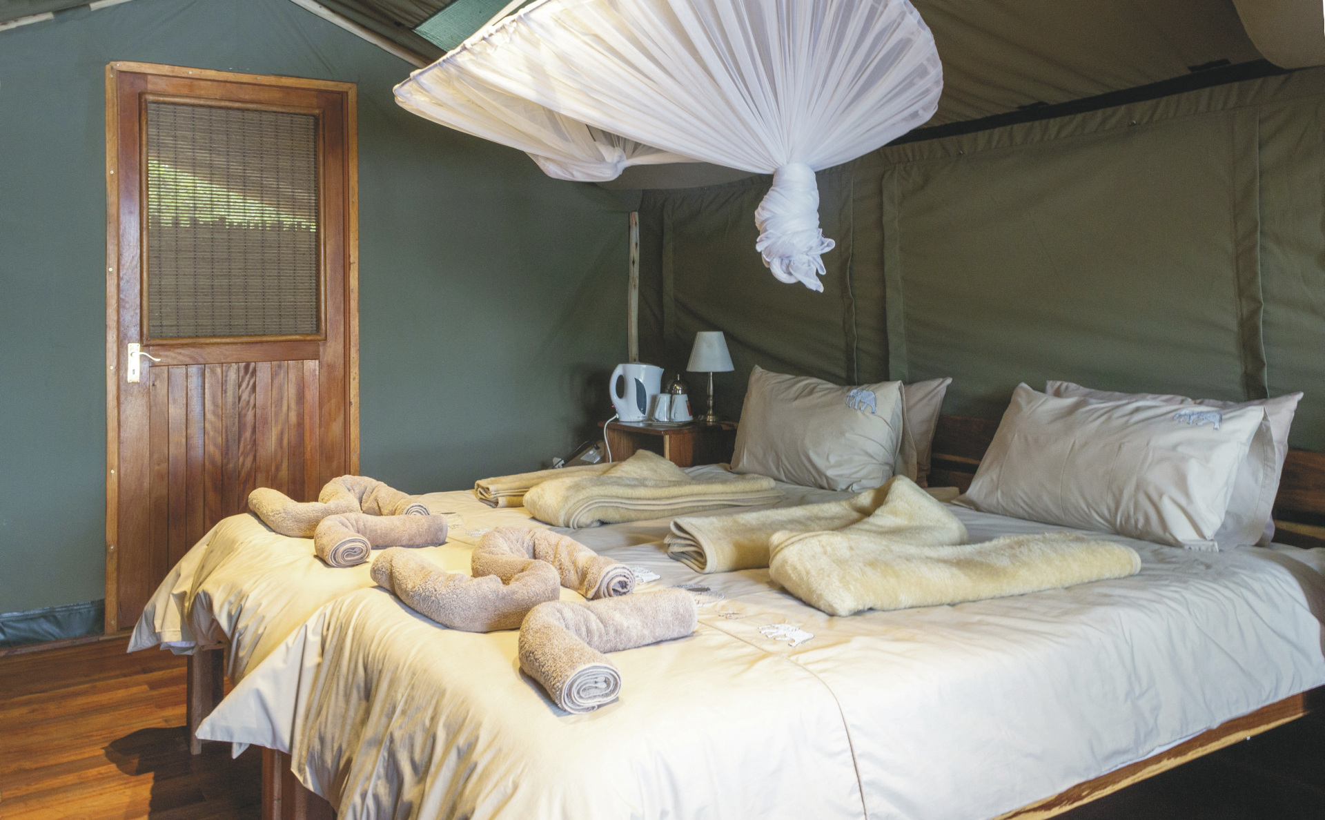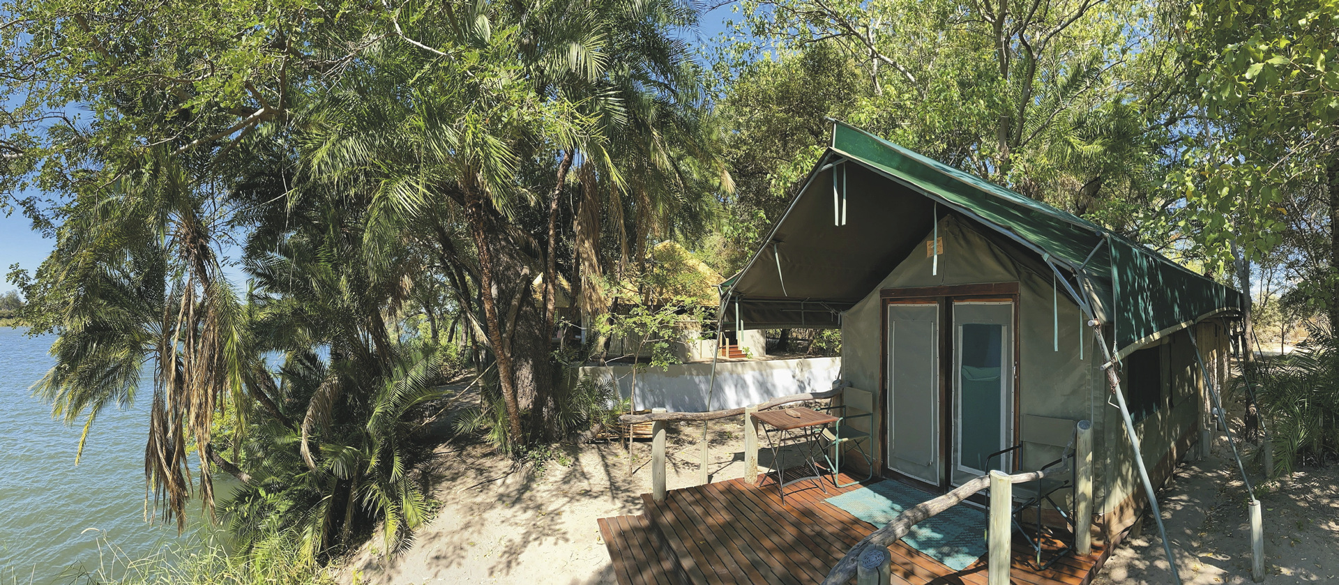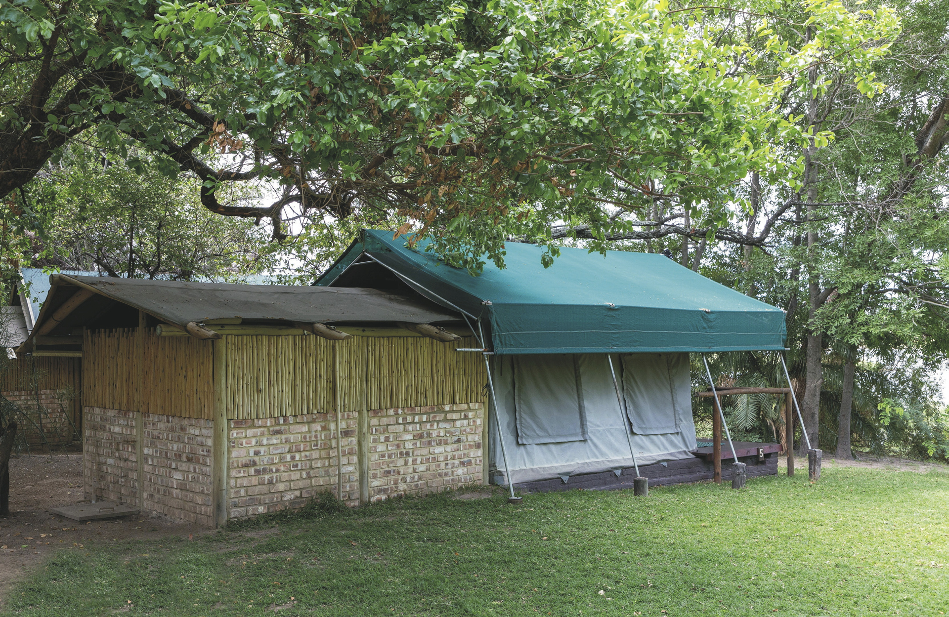 Es gibt 10 rustikale Safarizelte, die in der Gartenanlage verteilt liegen und Blick auf den lebensspendenden Fluss bieten. Sie verfügen über moderne Badezimmer, Moskitonetz, Tee-/Kaffeezubereiter, Ventilator und eine kleine Terrasse.Besonders romantisch sind die 2 River Suiten, die wie ein Hausboot auf dem Fluss liegen. Sie trumpfen mit einer einmalig exklusiven Lage und dem Gefühl, bei den Nilpferden im Wohnzimmer zu wohnen. Außerdem verfügen sie über eine gehobene Ausstattung mit Kühlschrank und einem Safe.