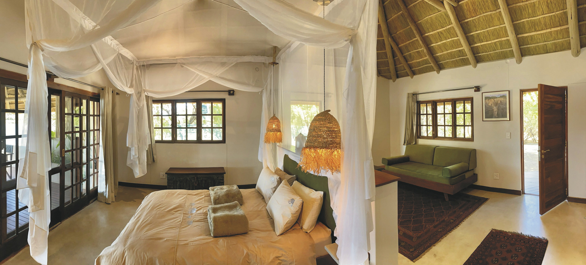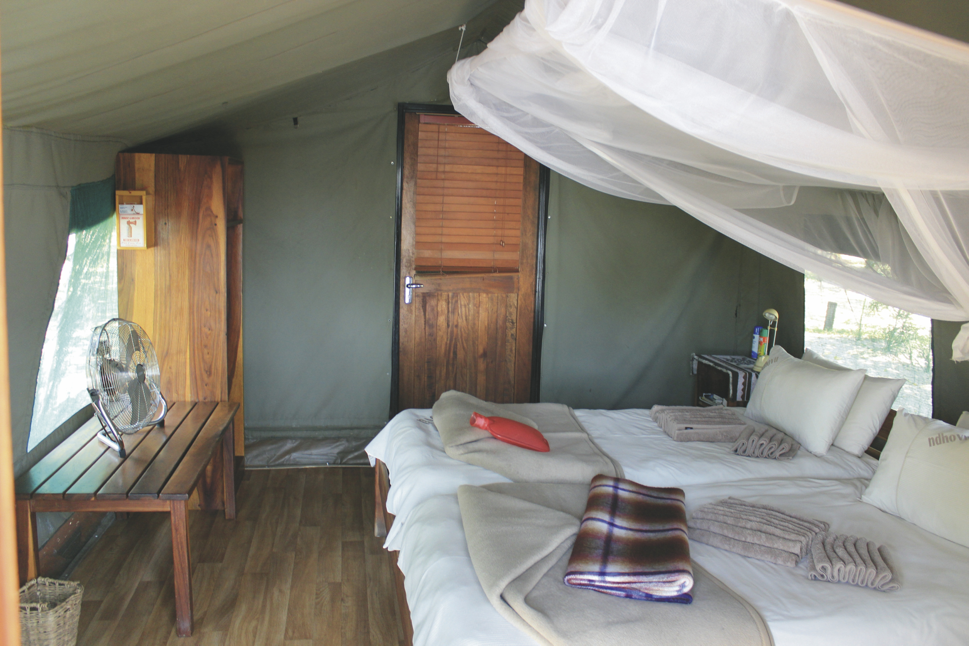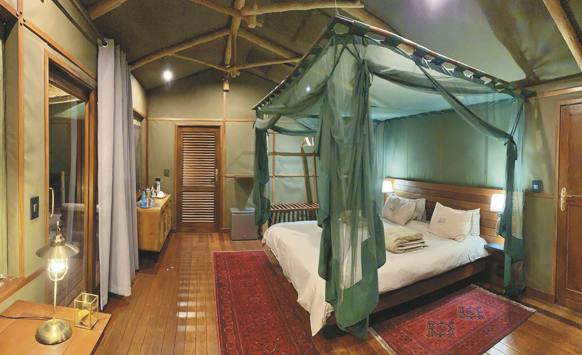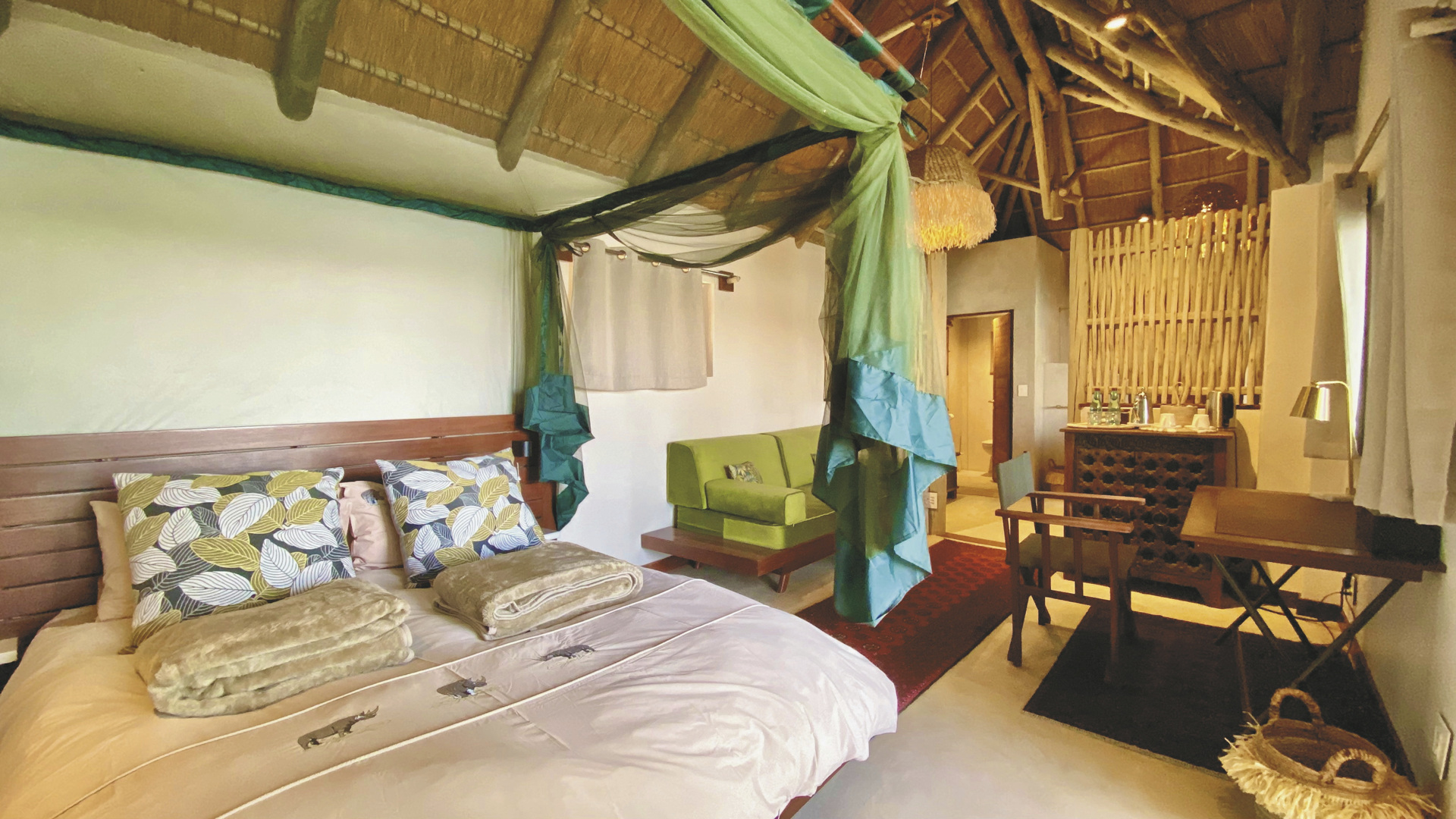 Es gibt 10 rustikale Safarizelte, die in der Gartenanlage verteilt liegen und Blick auf den lebensspendenden Fluss bieten. Sie verfügen über moderne Badezimmer, Moskitonetz, Tee-/Kaffeezubereiter, Ventilator und eine kleine Terrasse.Besonders romantisch sind die 2 River Suiten, die wie ein Hausboot auf dem Fluss liegen. Sie trumpfen mit einer einmalig exklusiven Lage und dem Gefühl, bei den Nilpferden im Wohnzimmer zu wohnen. Außerdem verfügen sie über eine gehobene Ausstattung mit Kühlschrank und einem Safe.