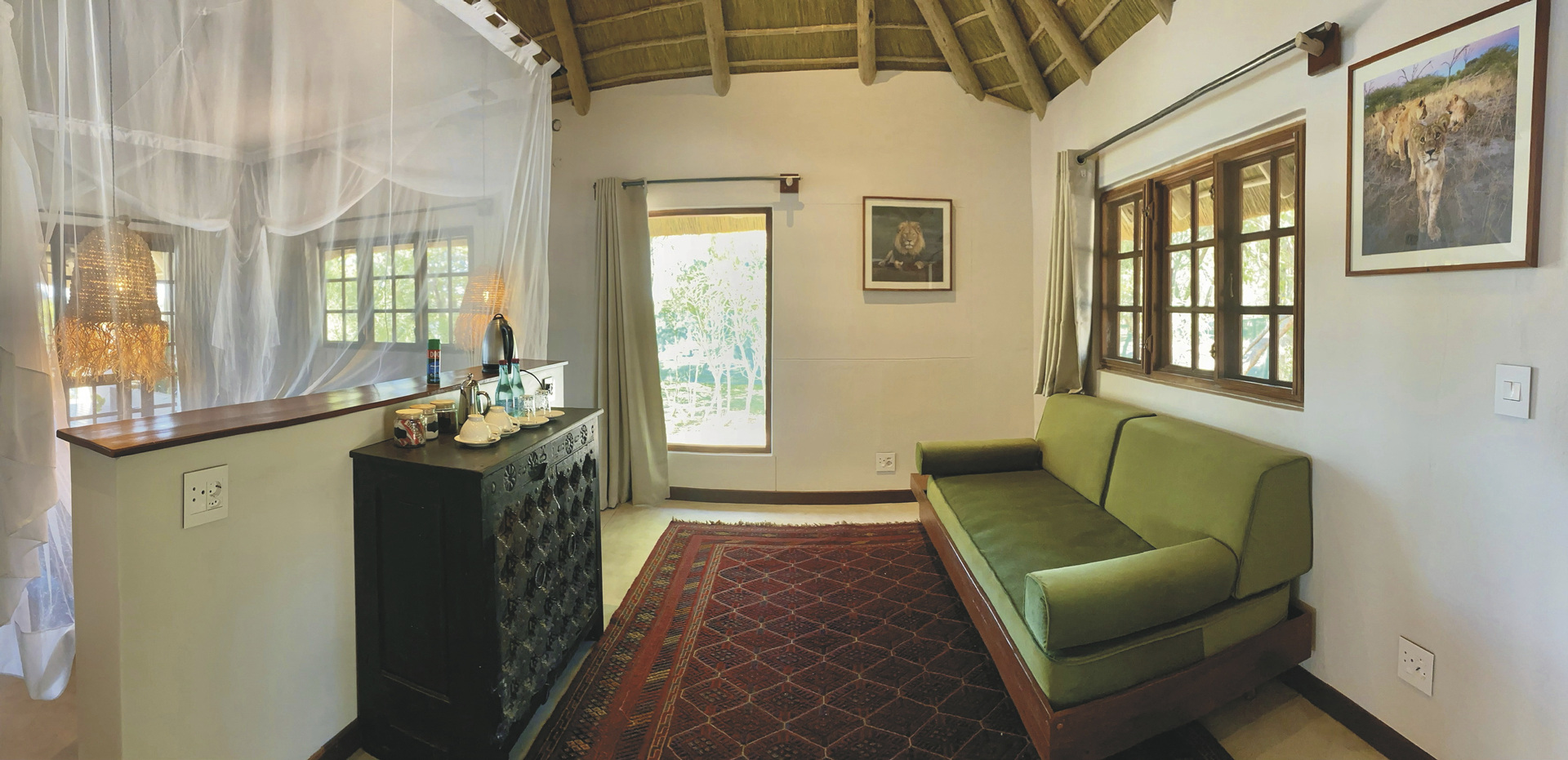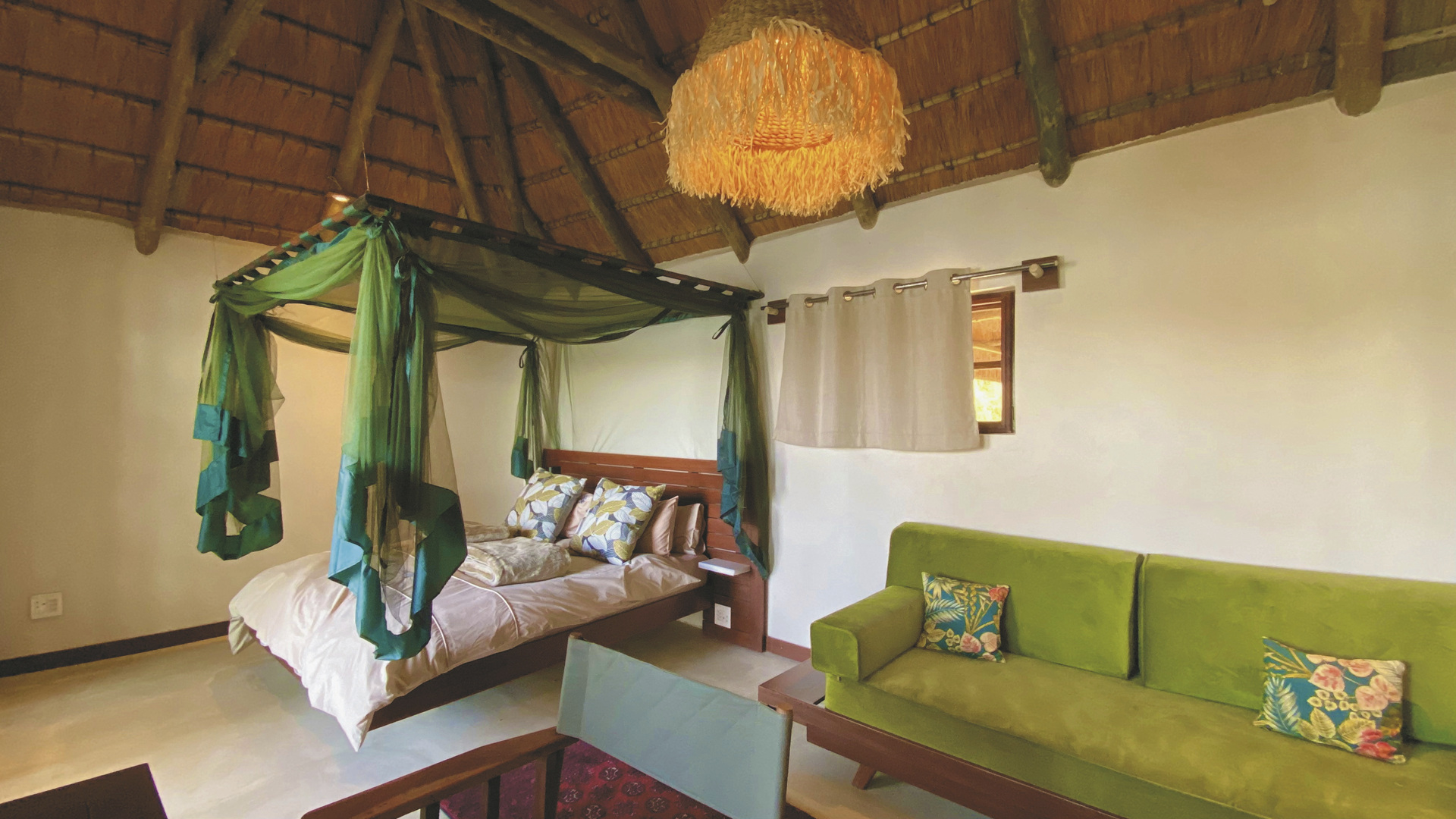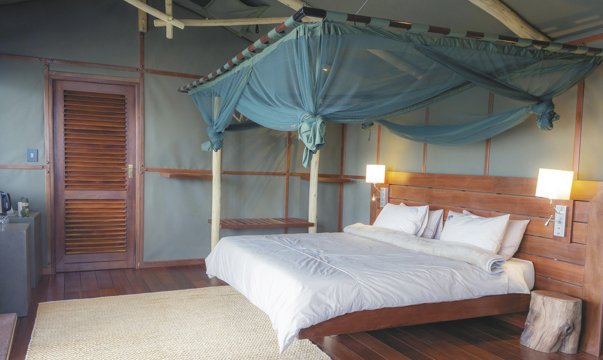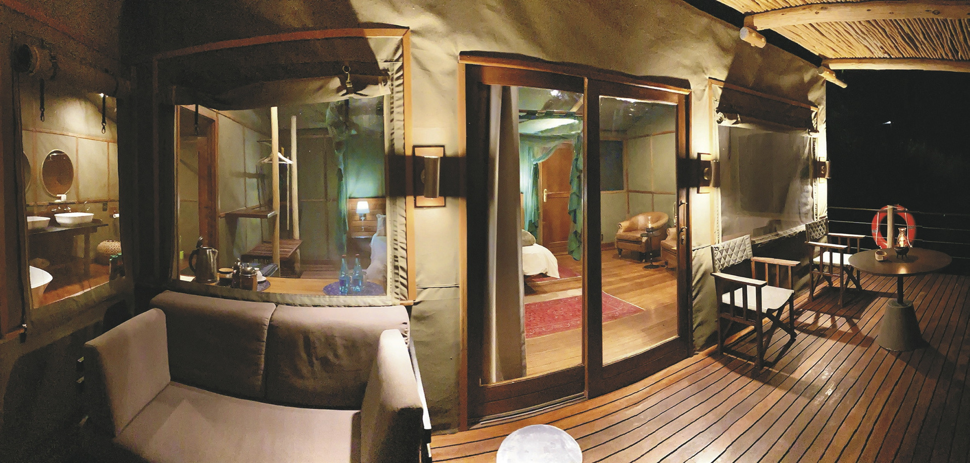 Es gibt 10 rustikale Safarizelte, die in der Gartenanlage verteilt liegen und Blick auf den lebensspendenden Fluss bieten. Sie verfügen über moderne Badezimmer, Moskitonetz, Tee-/Kaffeezubereiter, Ventilator und eine kleine Terrasse.Besonders romantisch sind die 2 River Suiten, die wie ein Hausboot auf dem Fluss liegen. Sie trumpfen mit einer einmalig exklusiven Lage und dem Gefühl, bei den Nilpferden im Wohnzimmer zu wohnen. Außerdem verfügen sie über eine gehobene Ausstattung mit Kühlschrank und einem Safe.