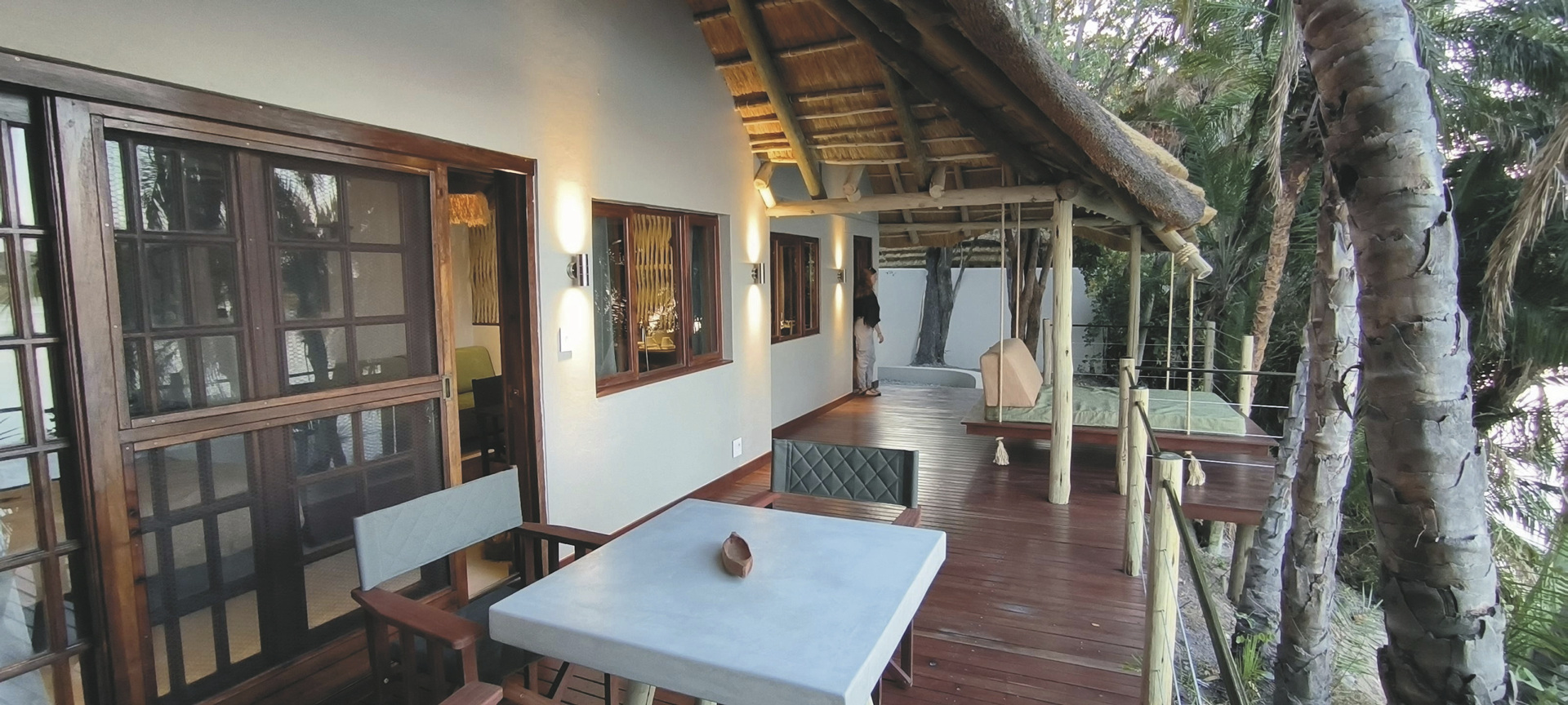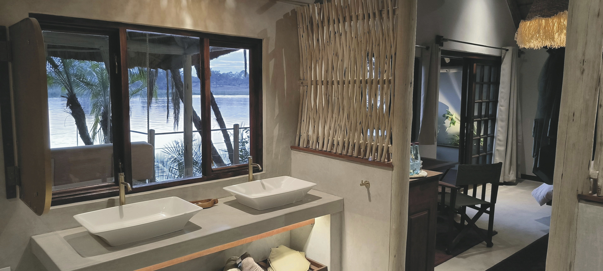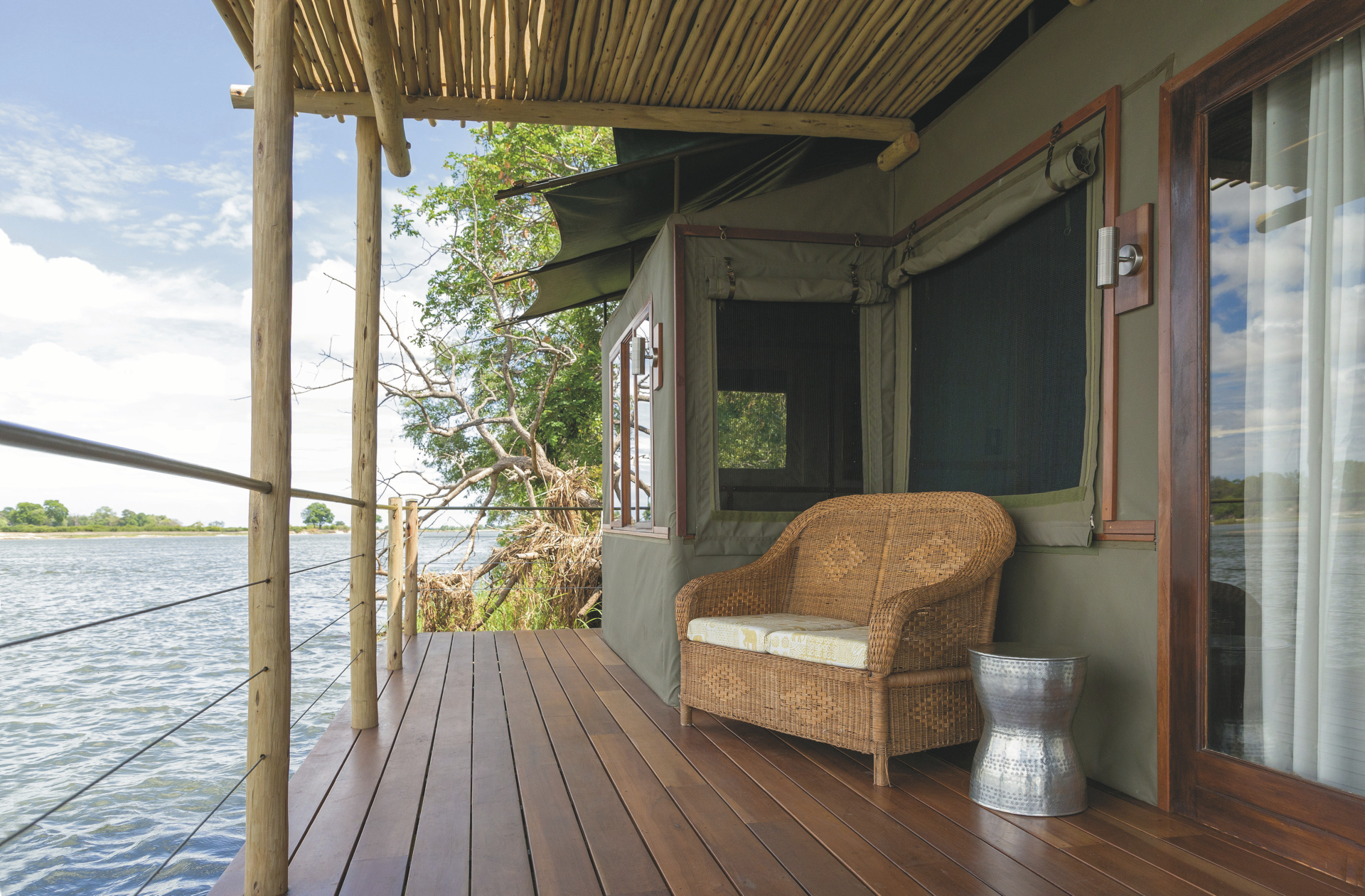 Die 2 modernen Suiten an Land (Buffalo & Elephant) sind das perfekte Domizil für Familien oder gemeinsam reisende Freunde, da sie sich eine große, überdachte Terrasse mit Blick auf den Fluss teilen, aber ansonsten eigenständig sind.