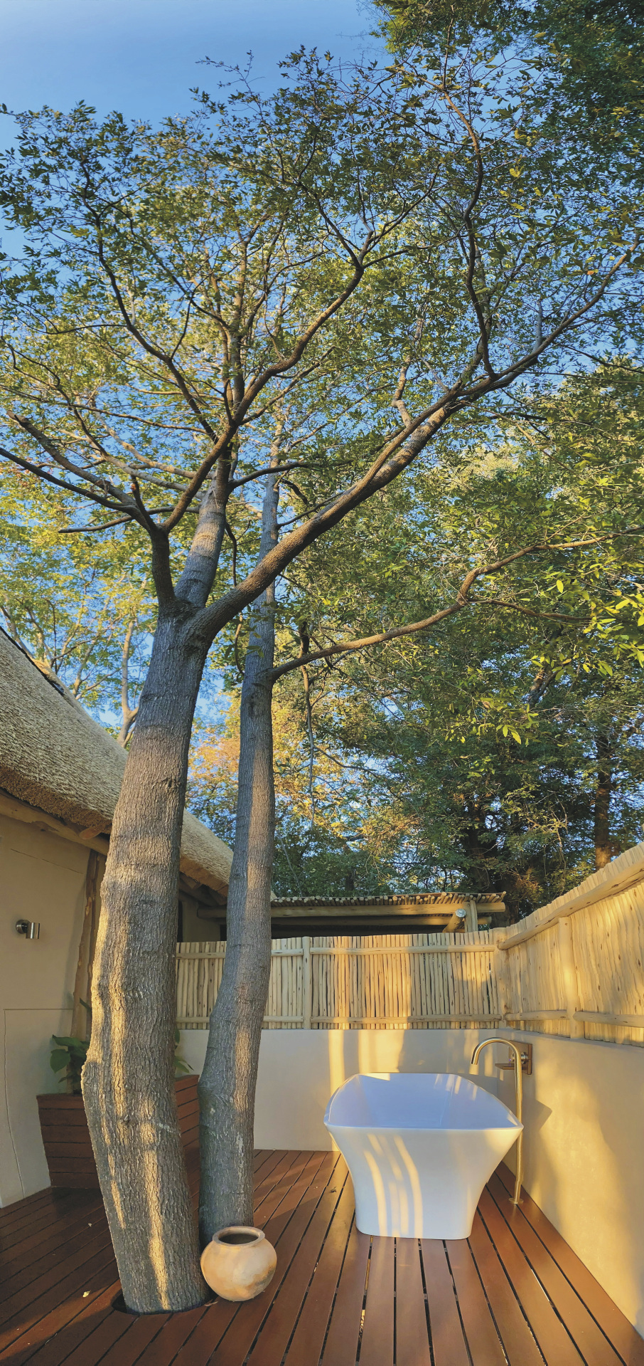 Für Familien, die ein bisschen mehr Nähe wünschen ist die neue Lion Suite die beste Unterkunft. Zwei Schlafzimmer, ein kleiner Loungebereich, eine schattige Terrasse, natürlich mit Flussblick und ein gemeinsames Badezimmer stehen zur Verfügung. Der Clou ist die Badewanne im Freien und der Sichtschutz, der per Knopfdruck den Blick von der Wanne auf den Fluss freigibt.