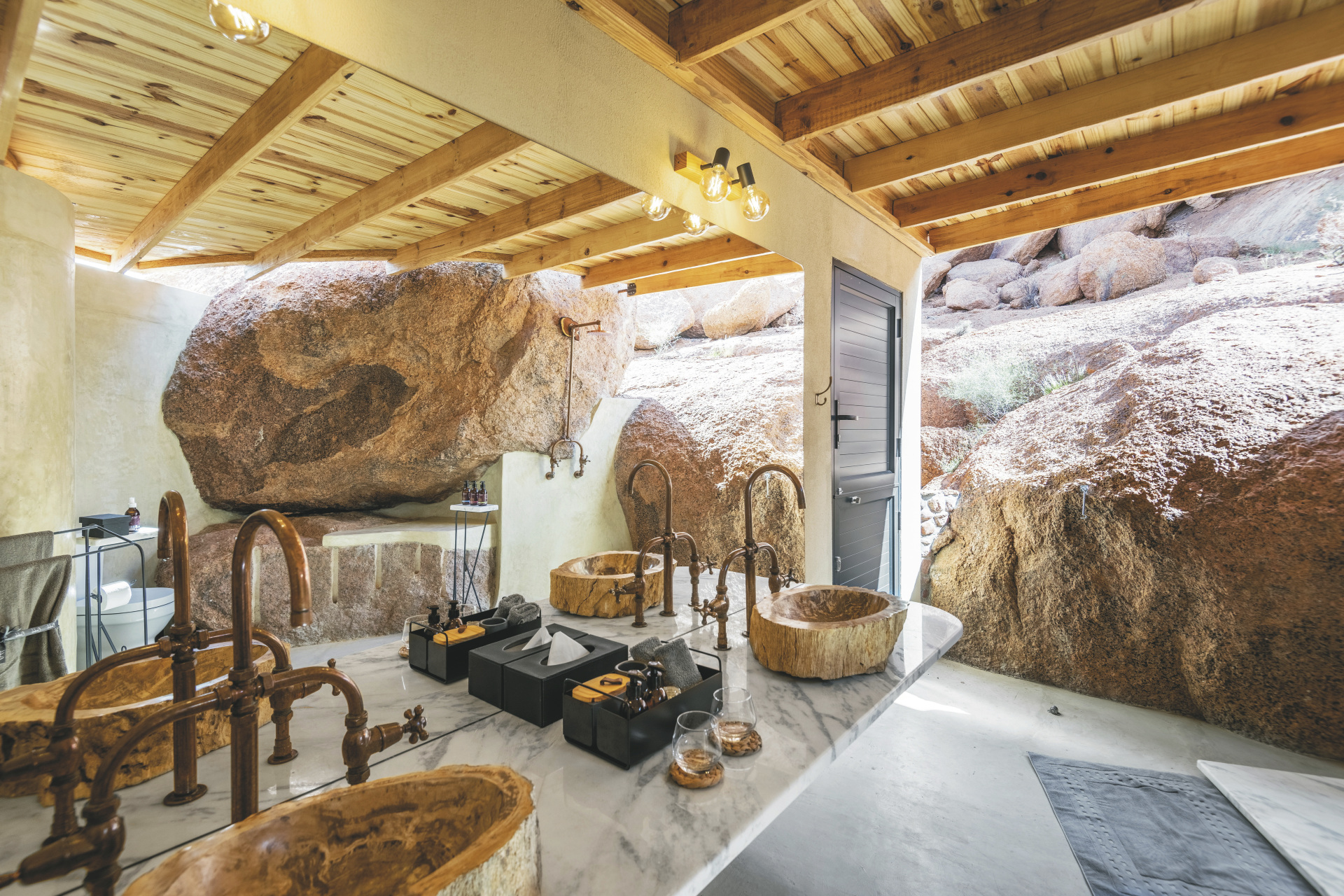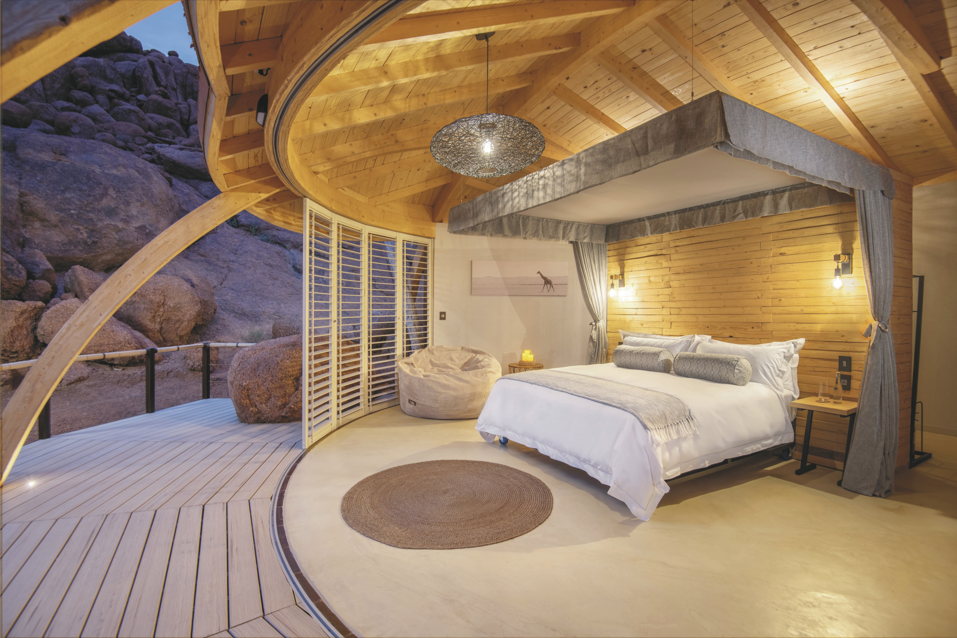 Die 6 Suiten liegen versteckt zwischen den Granitblöcken, die die Lodge umgeben. Da die Region ganzjährig mild ist hat man auf Wände auch hier weitestgehend verzichtet. Die vordere Front jeder Suite lässt sich jedoch mit Jalousien bei Bedarf schließen. Das Bett steht auf Rollen und kann auf die großzügige Terrasse gerollt werden, um eine Nacht unter dem gigantischen Sternenhimmel zu verbringen. Nachts verhilft eine im Bett integrierte Klimaanlage (Evening Breeze) zu angenehmer Kühle. Jede Suite verfügt über ein eigenes geräumiges Badezimmer, welche sich auch zum Teil unter freiem Himmel befindet. Außerdem finden Sie einen Kühlschrank, kostenloses WLAN, Safe, Fön und einen Tee-/Kaffeezubereiter vor.