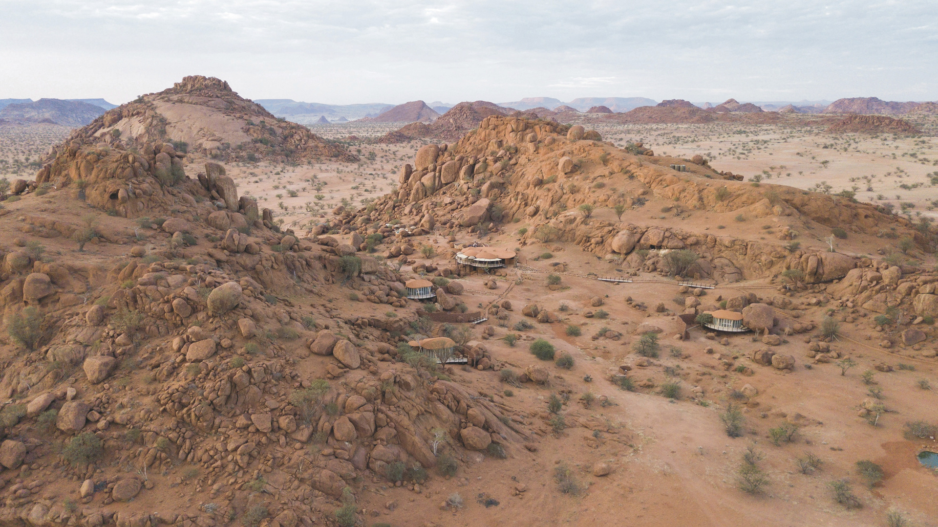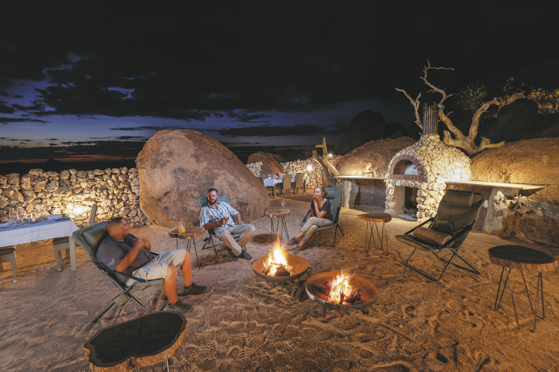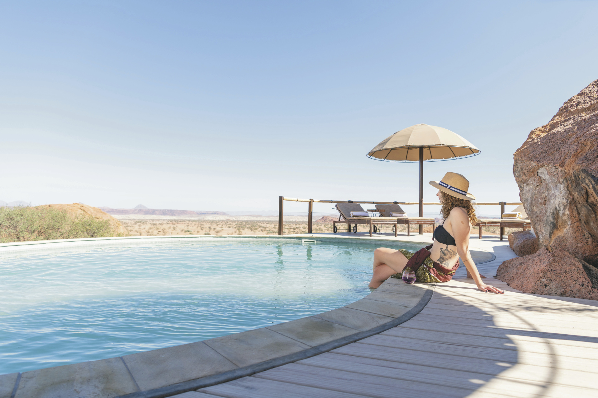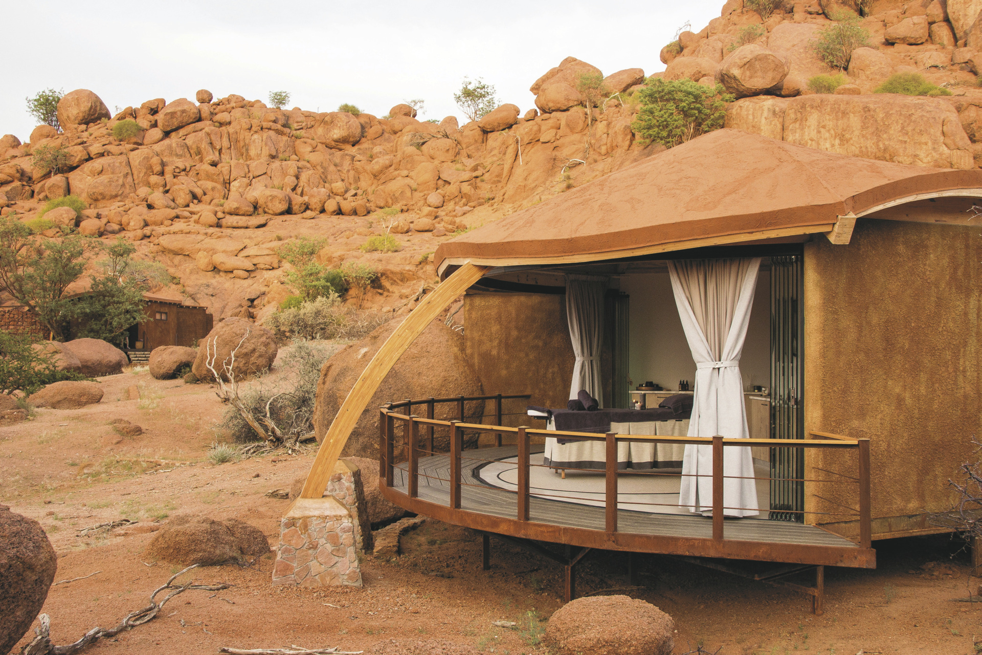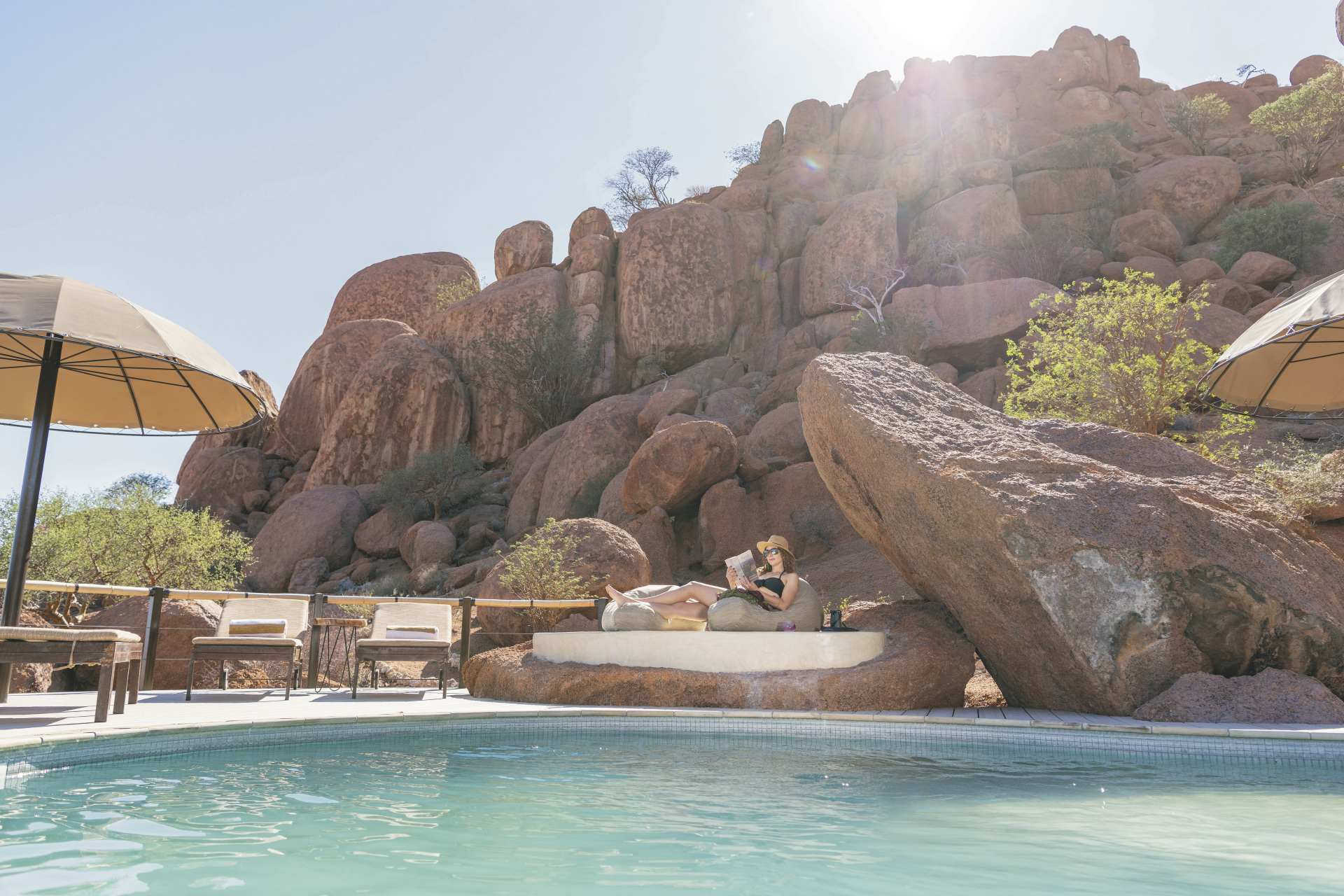Die Lodge ist am Fuße von zwei Granitvorsprüngen erbaut, die durch einen Grat verbunden sind. Von hier haben Sie einen herrlichen Blick auf Namibias höchsten Berg, den Brandberg im Süden und die verstreuten, kathedralenartigen Granitinselberge im Norden. Die Lodge mit weitgehend offenem Gemeinschaftsbereich wurde mit viel Liebe zum Detail eingerichtet. Entspannung und Erholung finden Sie zwischen den Aktivitäten z.B. am Pool, in der Lounge, im Spa oder in der Bibliothek. Am Abend genießt man ein letztes Getränk vor dem zu Bett gehen entweder in der Bar oder unter den Sternen Namibias rund um das Lagerfeuer. Die Lodge wird zu 100% mit Solarstrom versorgt. Kulinarik wird besonders groß geschrieben, regelmäßig finden in der Boma Pizza-Abende statt, bei denen Sie Ihre eigene Pizza kreieren können, die dann im Holzofen frisch gebacken wird. Eingeschlossene Aktivitäten: Pirschfahrten auf der Suche nach den seltenen Wüstenelefanten, geführte Wanderungen, Ausflüge zu den Felsmalereien der San von Twyfelfontein, Solar E-Bike Touren. Bei einem Aufenthalt von 3 Nächten und mehr können Sie sich auch auf die Suche nach den Wüstennashörner der Region begeben.