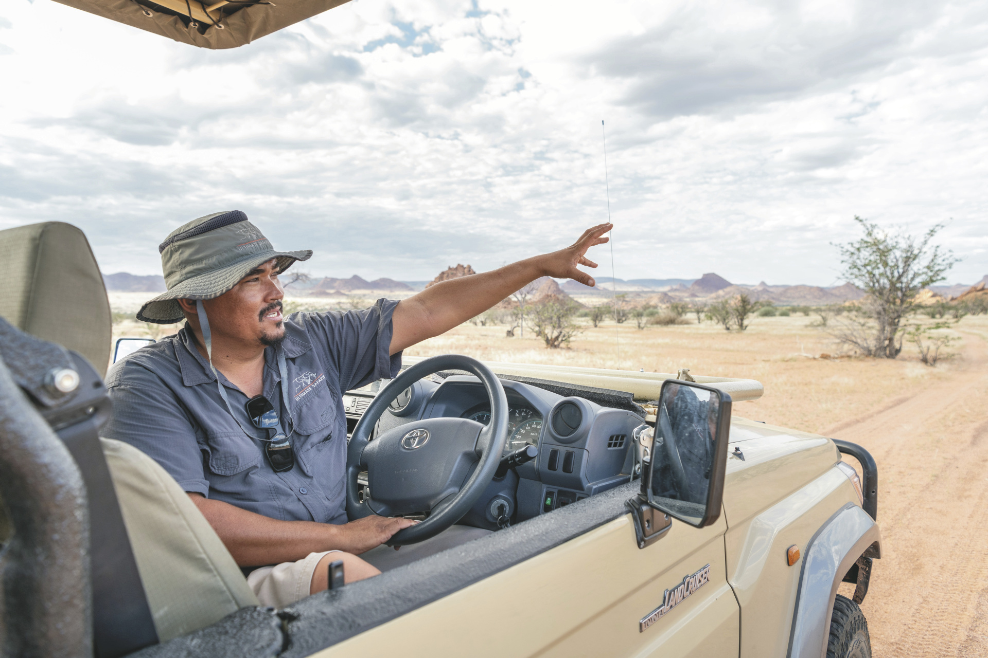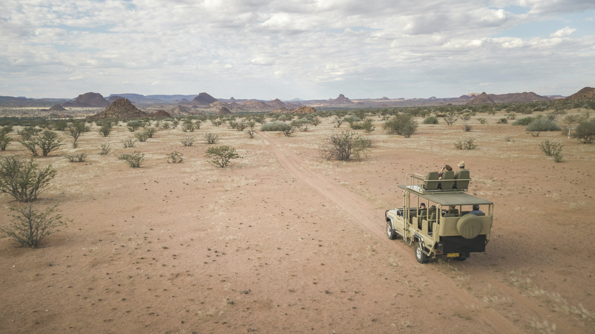 Auf der privaten Konzession Doro! Nawas im Herzen des Damaralandes gelegen. Zum UNESCO-Weltkulturerbe Twyfelfontein sind es ca. 20 Fahrminuten. Die Landebahn liegt ca. 20 Fahrminuten von der Lodge entfernt, von hier erfolgt ein Transfer im offenen Safari-Fahrzeug zur Lodge.