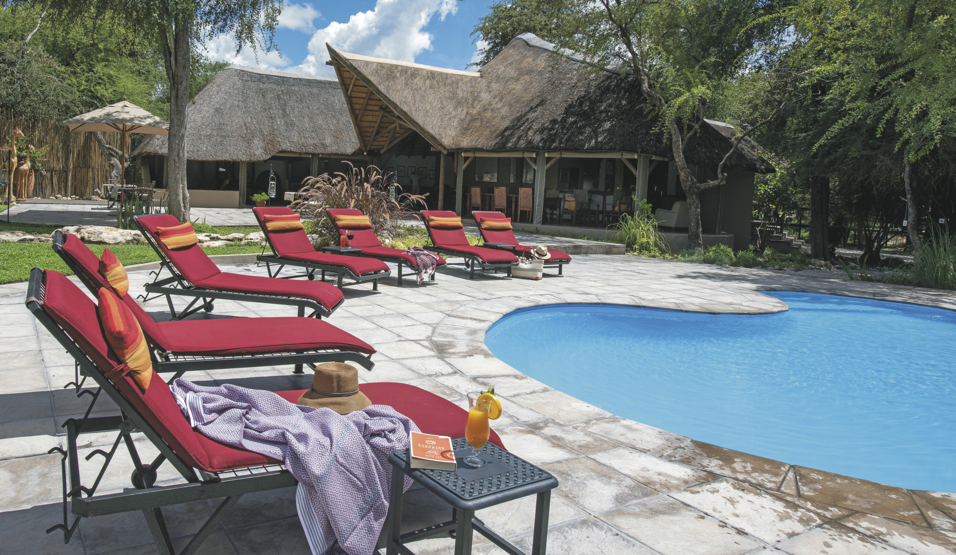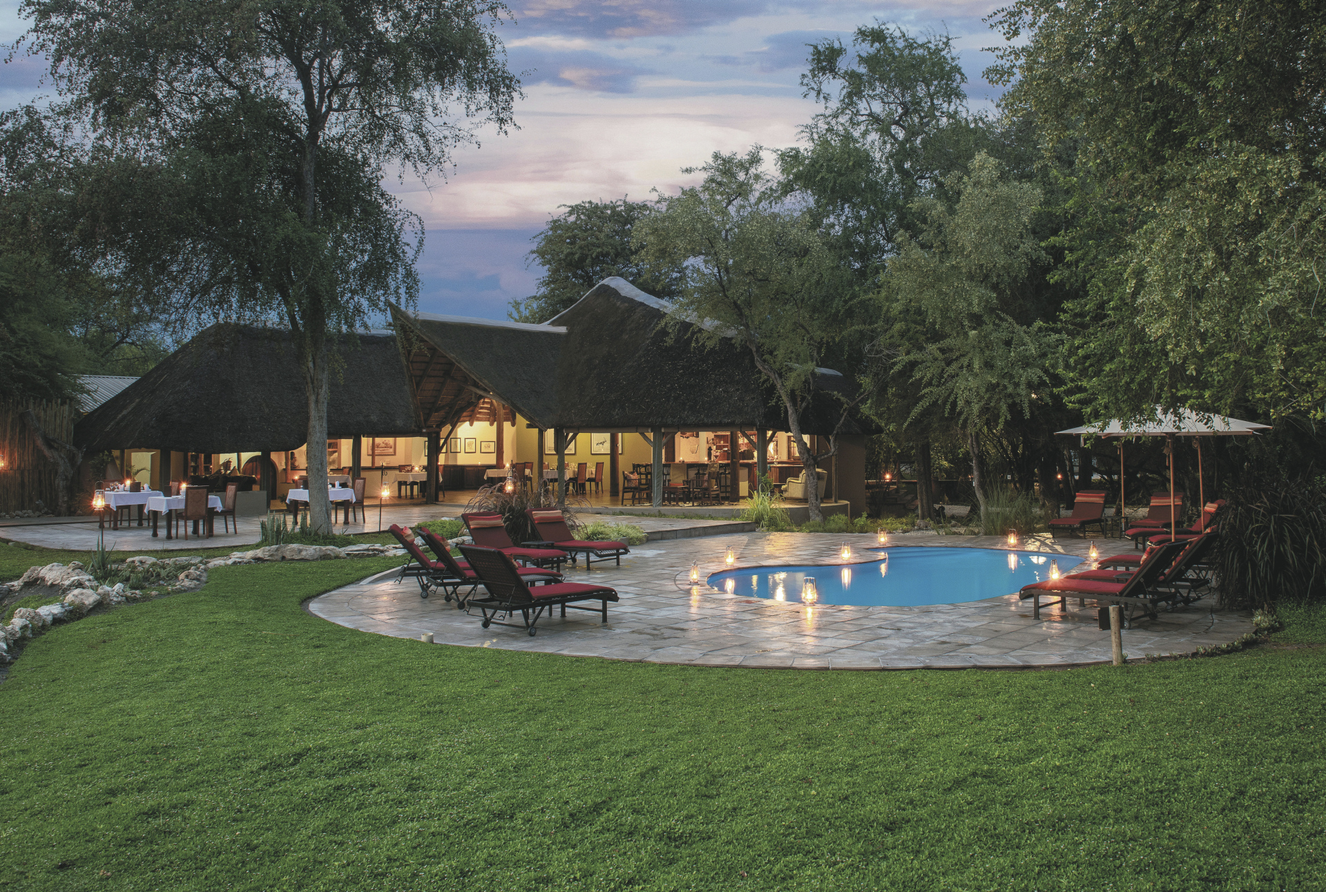 Eine klassische Safarilodge mit Pioniercharakter versteckt in den Bäumen des Reservates mit intimer und entspannter Atmosphere erwartet Sie. Im reetgedeckten Hauptgebäude befinden sich die Bar und das Restaurant, wo Ihnen klassische und namibische Gerichte serviert werden, begleitet von ausgesuchten Weinen aus dem eigenen Weinkeller. In der Lounge prasselt an kühlen Abenden ein wärmendes Feuer im Kamin. Von der großen Terrasse und dem Pool blickt man auf das nahegelegene, gut besuchte Wasserloch. Das Abendessen wird nach Möglichkeit unter dem afrikanischen Sternenhimmel eingenommen. Kostenloses WLAN im Hauptbereich. Optionale Aktivitäten: Pirschfahrt im Etosha Nationalpark oder im Onguma Reservat, Fußpirsch, Onkolo-Fotoansitz (Beobachtungsversteck), Kids-Programm, Massagen; Frühstück, oder Abendessen im Busch. Etwas ganz besonderes ist eine optionale, aufregende Nacht im Dream Cruiser, einem umgebauten Land Cruiser. Auf zwei Ebenen bietet der Abenteuerschlafplatz alles was benötigt wird: unten ein Badezimmer, während sich auf dem oberen Deck ein Schlafzimmer mit Lounge-Bereich befindet.