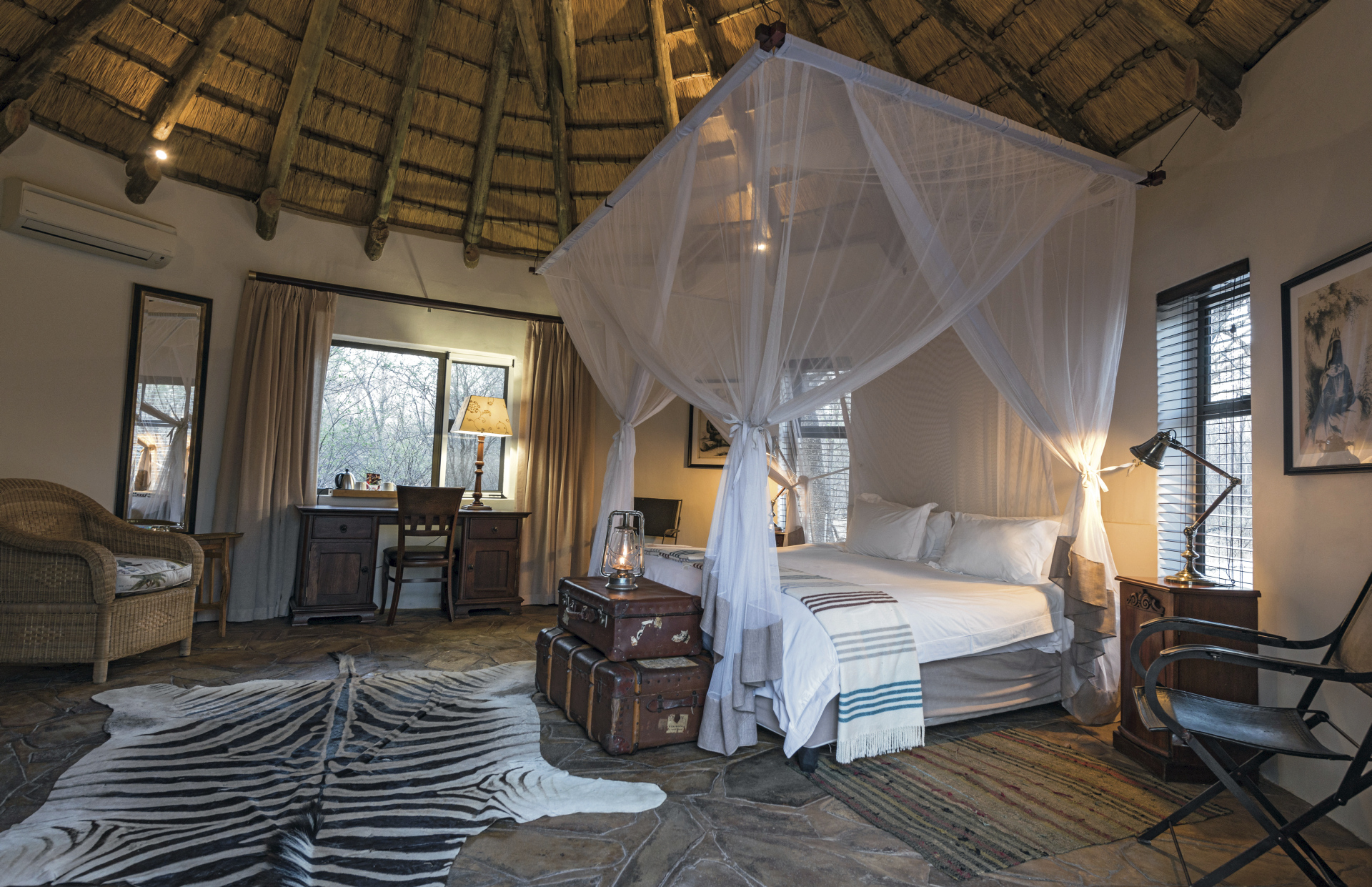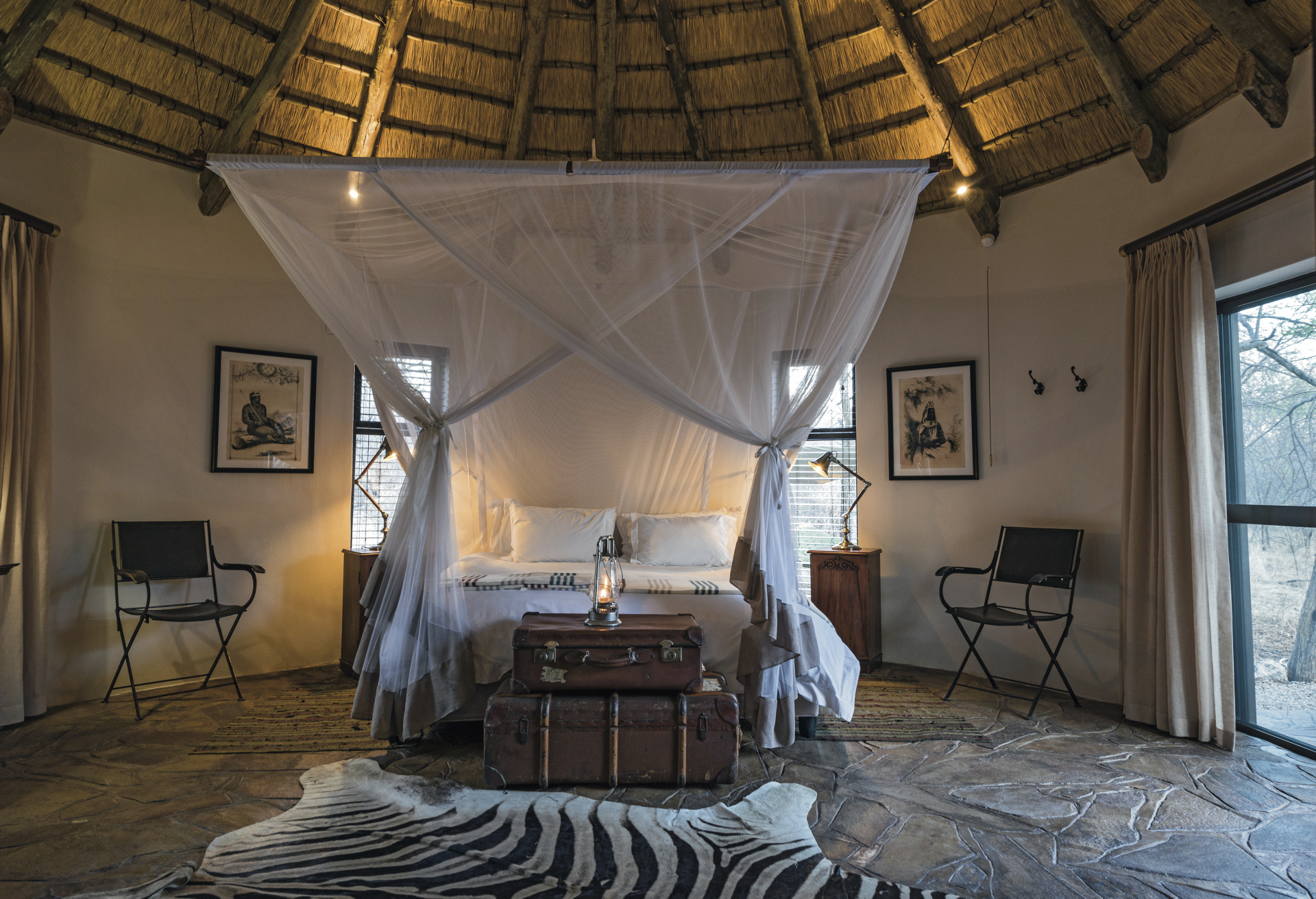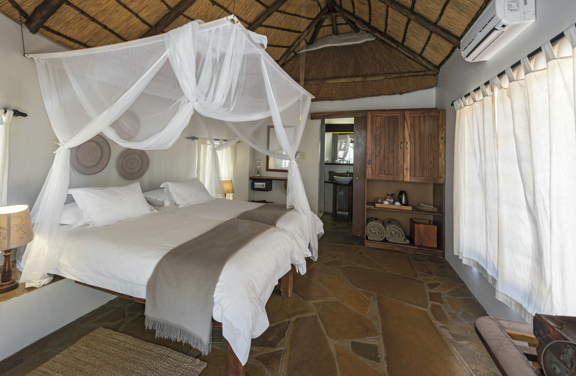 Die 11 reetgedeckte Bungalows in verschiedenen Kategorien fügen sich charmant in die Umgebung ein und bieten eine gute Mischung aus Komfort und Privatsphäre. Alle mit eigenem Bad, Veranda, Moskitonetz, Klimaanlage, Safe, Tee-/Kaffeezubereiter, Busch-Minibar, Fön und kostenlosem WLAN. Die 4 freistehenden Heritage Bungalows liegen dem Haupthaus am nächsten. Die 3 Bush-Suiten eignen sich mit 2 Schlafzimmern und einem Badezimmer ideal für Familien oder gemeinsam reisende Freunde. Die 3 großzügigen Explorer-Bungalows glänzen durch ihre abgeschiedene Lage im Busch. Der Honeymoon-Bungalow bietet viel Platz für Zweisamkeit und Romantik, dazu trägt vorrangig das Freiluftbadezimmer mit Außendusche und -badwanne und eine gemütliche Doppelhängematte bei.
