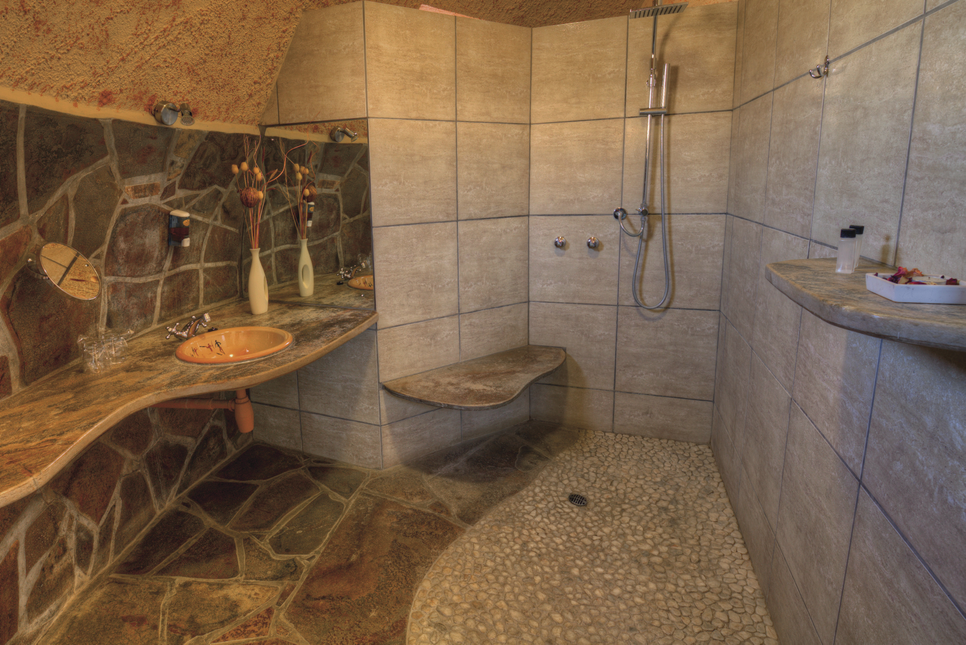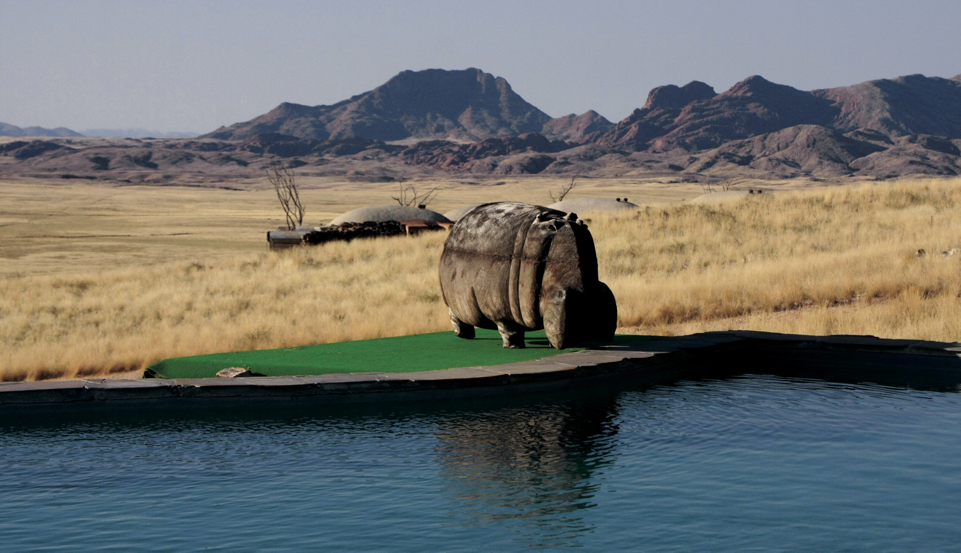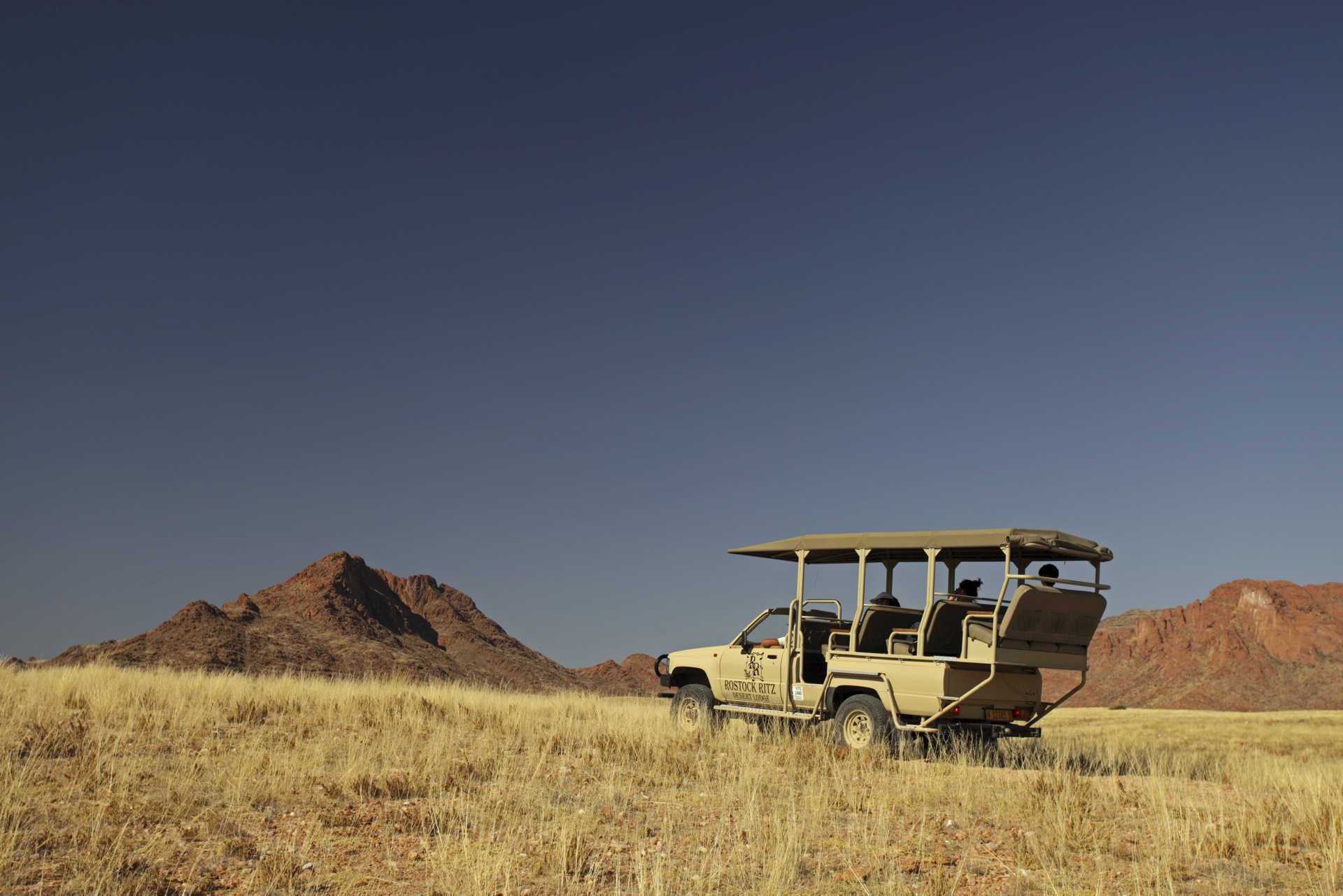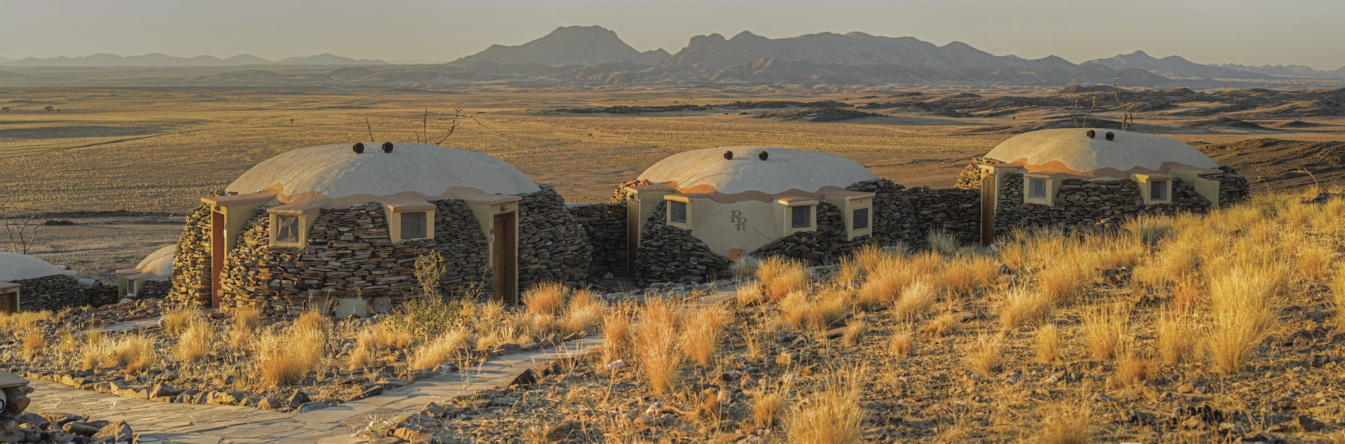 Die Lodge ist harmonisch durch die runde Bauweise in die Landschaft eingebettet und schmiegt sich an einen Hügel, von wo aus man einen ungehinderten Blick über die Ebene der Namib bis an die Bergkette hat. Im Hauptgebäude befinden sich neben dem Restaurant, welches mit einer unglaublichen Speisekarte überrascht, auch die Lounge und die Bar sowie kostenloses WLAN. Am Pool unter der strohgedeckten Lapa finden Sie den besten Platz der Lodge! Entspannen Sie in einem der gemütlichen Hängeschwingern und ergötzen Sie sich an der Weite der Landschaft und dieser unfassbaren Ruhe. Am nahegelegenen Wasserloch finden sich immer wieder Zebras, Springböcke, aber auch Oryx Antilopen und verschiedene Vögel ein um ihren Durst zu stillen. Optionale Aktivitäten: 10 verschiedene markierte Wanderwege, Fahrt zu den Felszeichnungen, Panoramafahrt zum Sonnenuntergang, Meerkat Rescue Project.