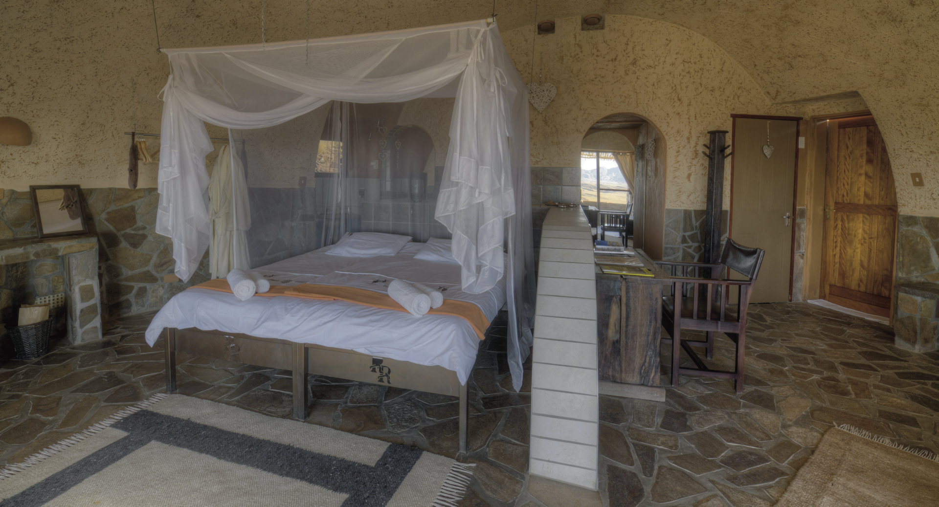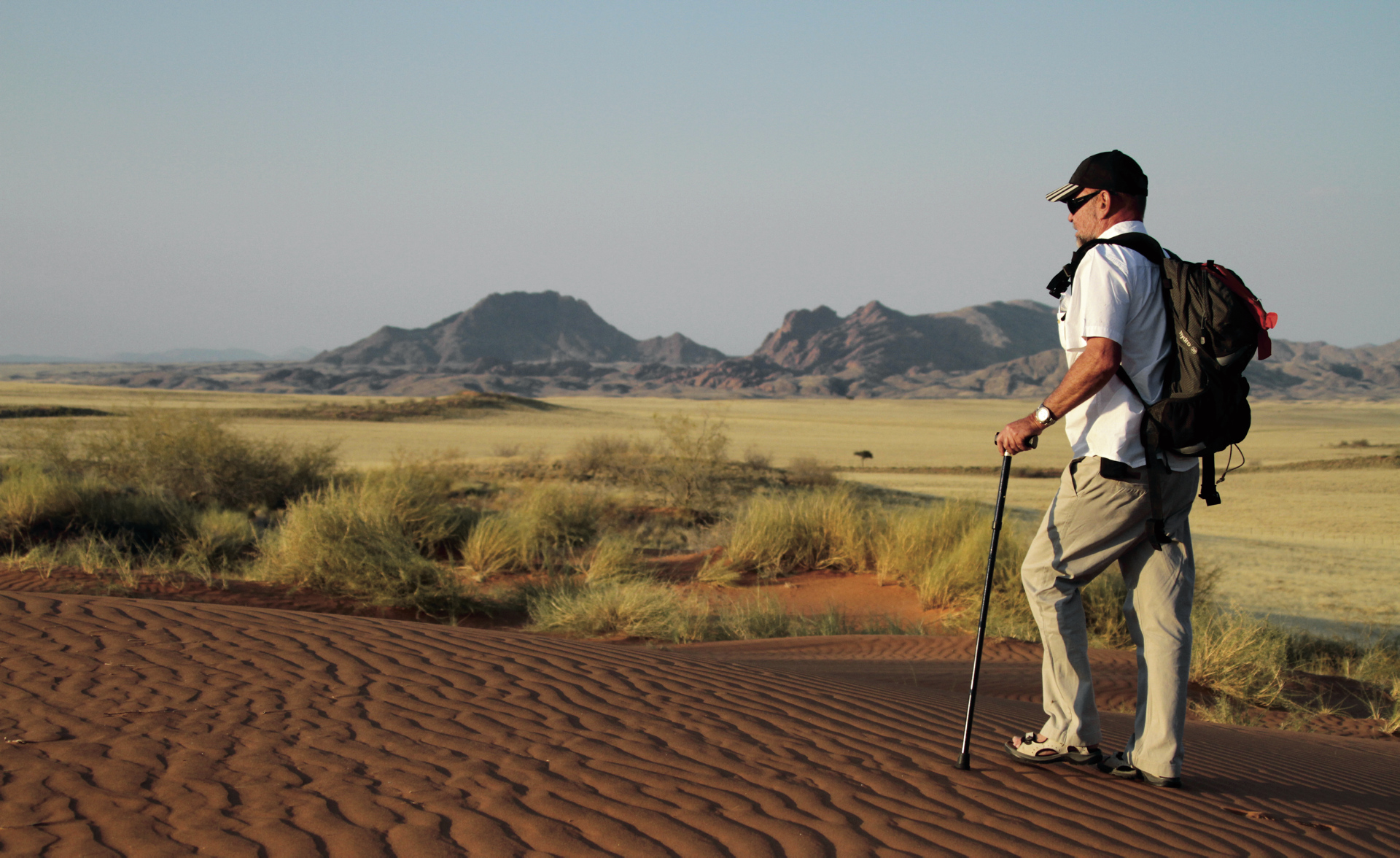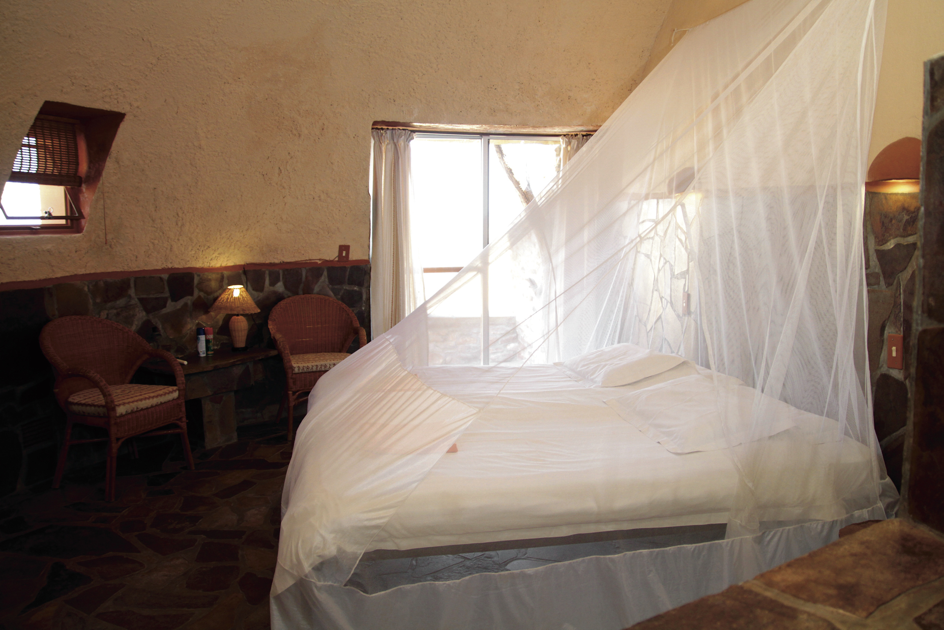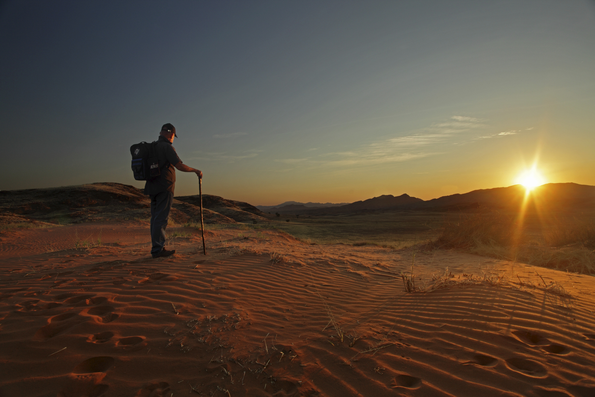 Die Lodge ist harmonisch durch die runde Bauweise in die Landschaft eingebettet und schmiegt sich an einen Hügel, von wo aus man einen ungehinderten Blick über die Ebene der Namib bis an die Bergkette hat. Im Hauptgebäude befinden sich neben dem Restaurant, welches mit einer unglaublichen Speisekarte überrascht, auch die Lounge und die Bar sowie kostenloses WLAN. Am Pool unter der strohgedeckten Lapa finden Sie den besten Platz der Lodge! Entspannen Sie in einem der gemütlichen Hängeschwingern und ergötzen Sie sich an der Weite der Landschaft und dieser unfassbaren Ruhe. Am nahegelegenen Wasserloch finden sich immer wieder Zebras, Springböcke, aber auch Oryx Antilopen und verschiedene Vögel ein um ihren Durst zu stillen. Optionale Aktivitäten: 10 verschiedene markierte Wanderwege, Fahrt zu den Felszeichnungen, Panoramafahrt zum Sonnenuntergang, Meerkat Rescue Project.