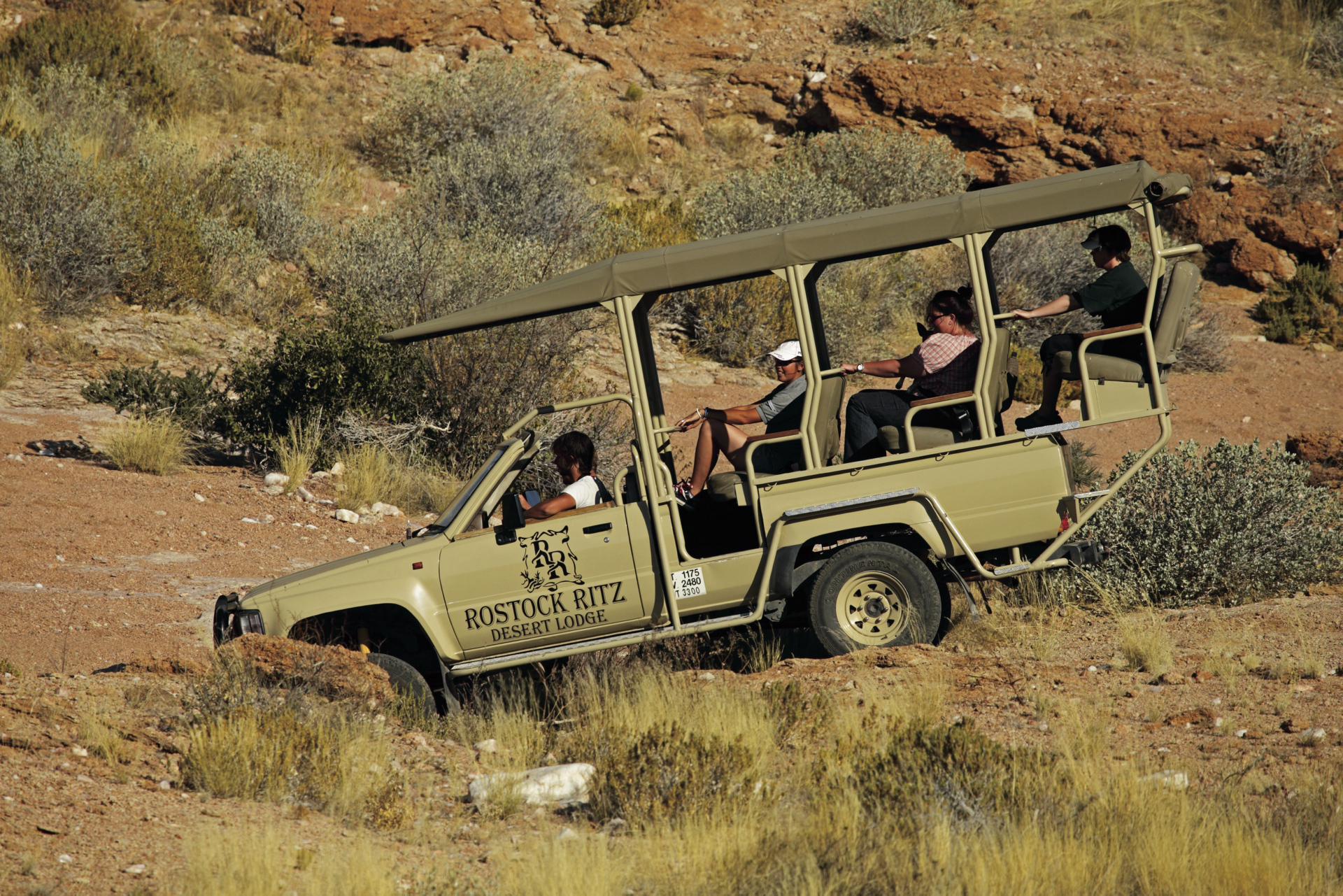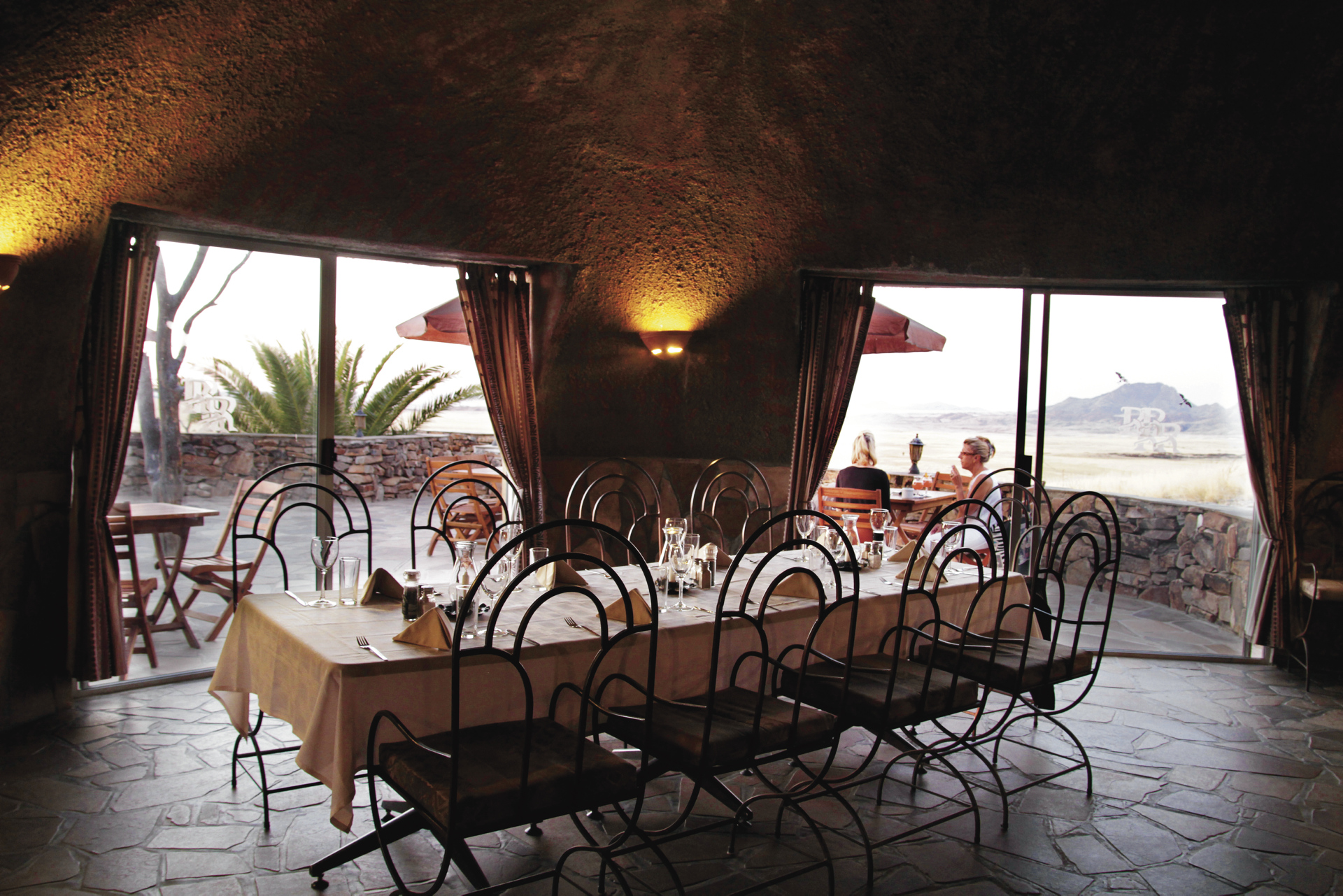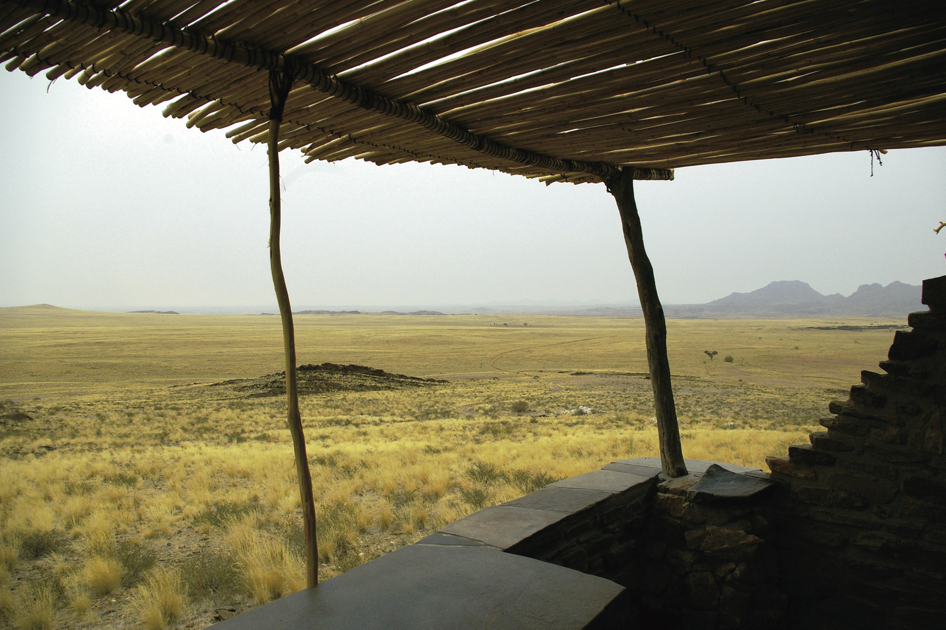 Rustikale Lodge auf einer Anhöhe mit grandiosem Blick über die Namib Wüste und die Rotstock Berge, einem Wanderparadies. Das einzige Ritz der Welt, das von Felsen und Wüste umgeben ist.