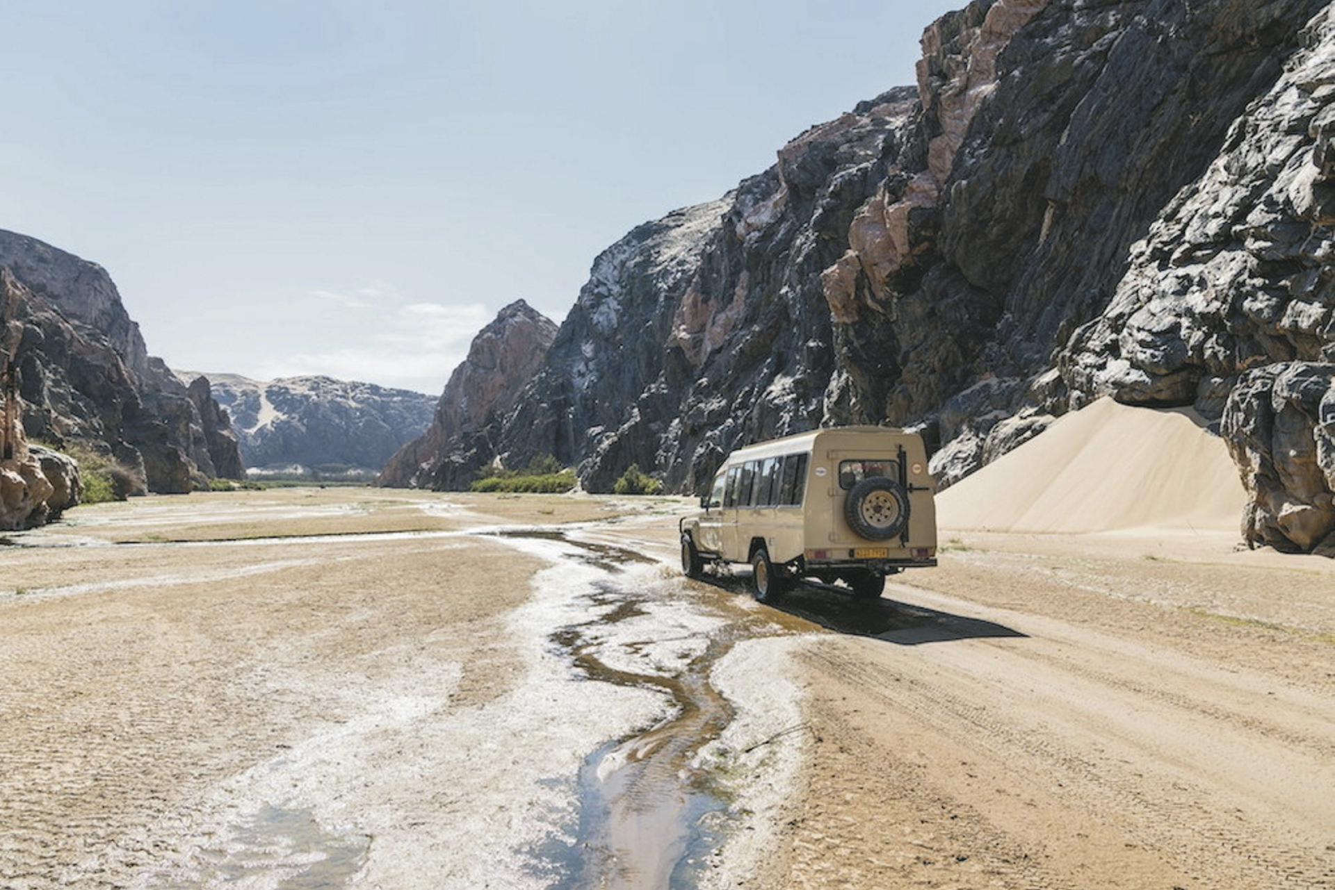 Die Anreise erfolgt per Mietfahrzeug via Möwe Bay. Hier können Sie entweder Ihren Mietwagen sicher abstellen und ins Transferfahrzeug der Lodge umsteigen, oder dem Transferfahrzeug im eigenen Mietwagen folgen. Gäste, die vom Hoanib Valley Camp kommen erreichen die Lodge mit einem etwa 6-stündigen Panoramatransfer durch die Wüste, ggf. auch im eigenen Mietfahrzeug Konvoi mit einem Lodgefahrzeug.