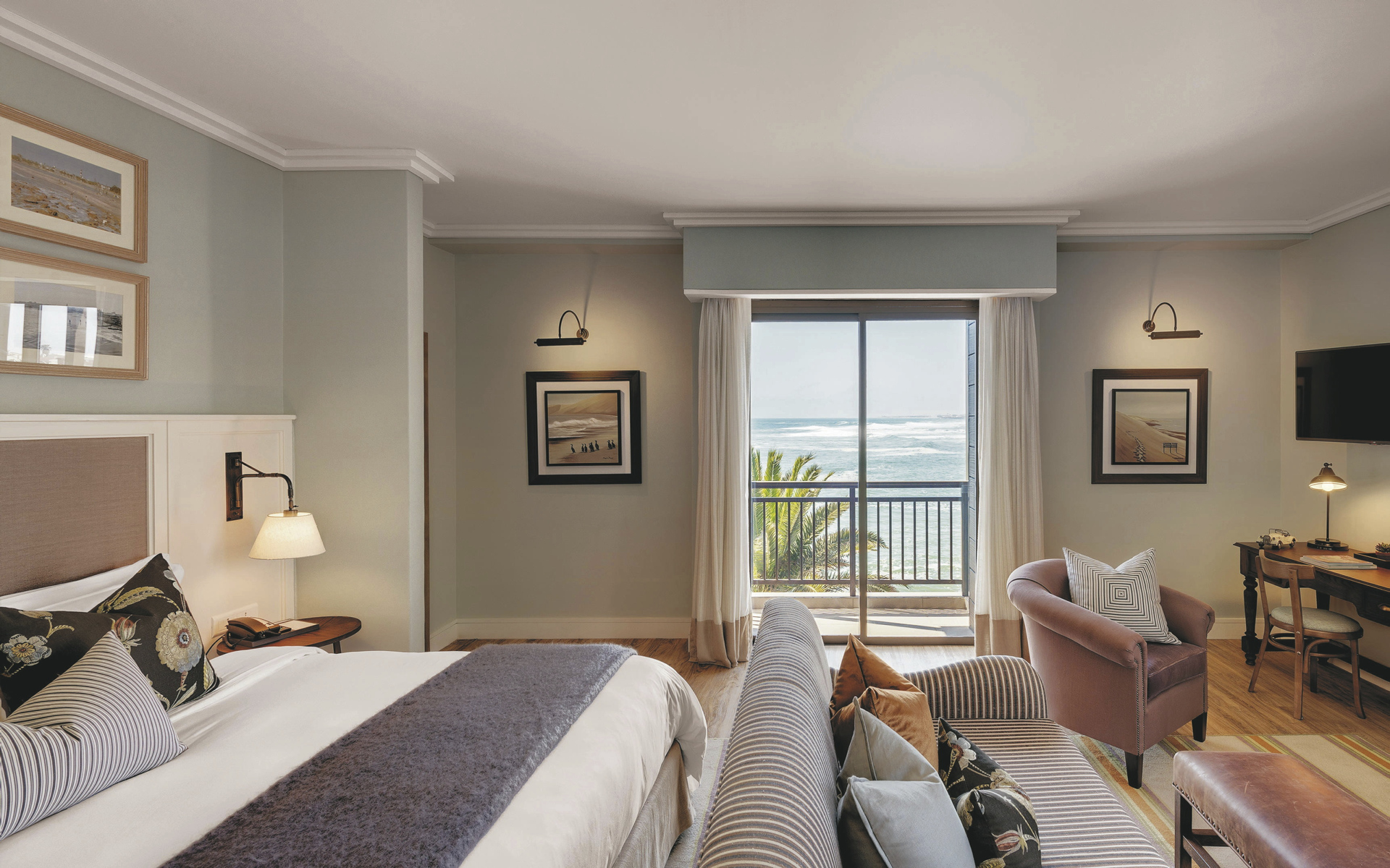 Modern und luxuriös erwartet Sie das bekannte Strand Hotel. Die Einrichtung ist eine gelungene Kombination aus Großstadt-Flair und luftigem Strandhaus-Charme. Das Hotel ist mit drei ausgezeichneten Restaurants und einem Biergarten ein Paradies für Schlemmer. Egal ob frische Salate, Meeresfrüchte, ein gutes Stück Fleisch oder doch nur Kaffee und Kuchen, im Strand Hotel kommen Sie auf jeden Fall auf Ihre Kosten. Im schönen Lounge-Bereich und auf der herrlichen Terrasse kann man problemlos verweilen und den Sonnenuntergang genießen. Es stehen Ihnen außerdem ein voll ausgestatteter Fitnessraum und ein Spa mit Sauna und Dampfbad zur Verfügung. Nutzen Sie die Zeit in Swakopmund für eine der vielen lokalen Aktivitäten oder genießen Sie einfach die Aussicht auf den Atlantik.
