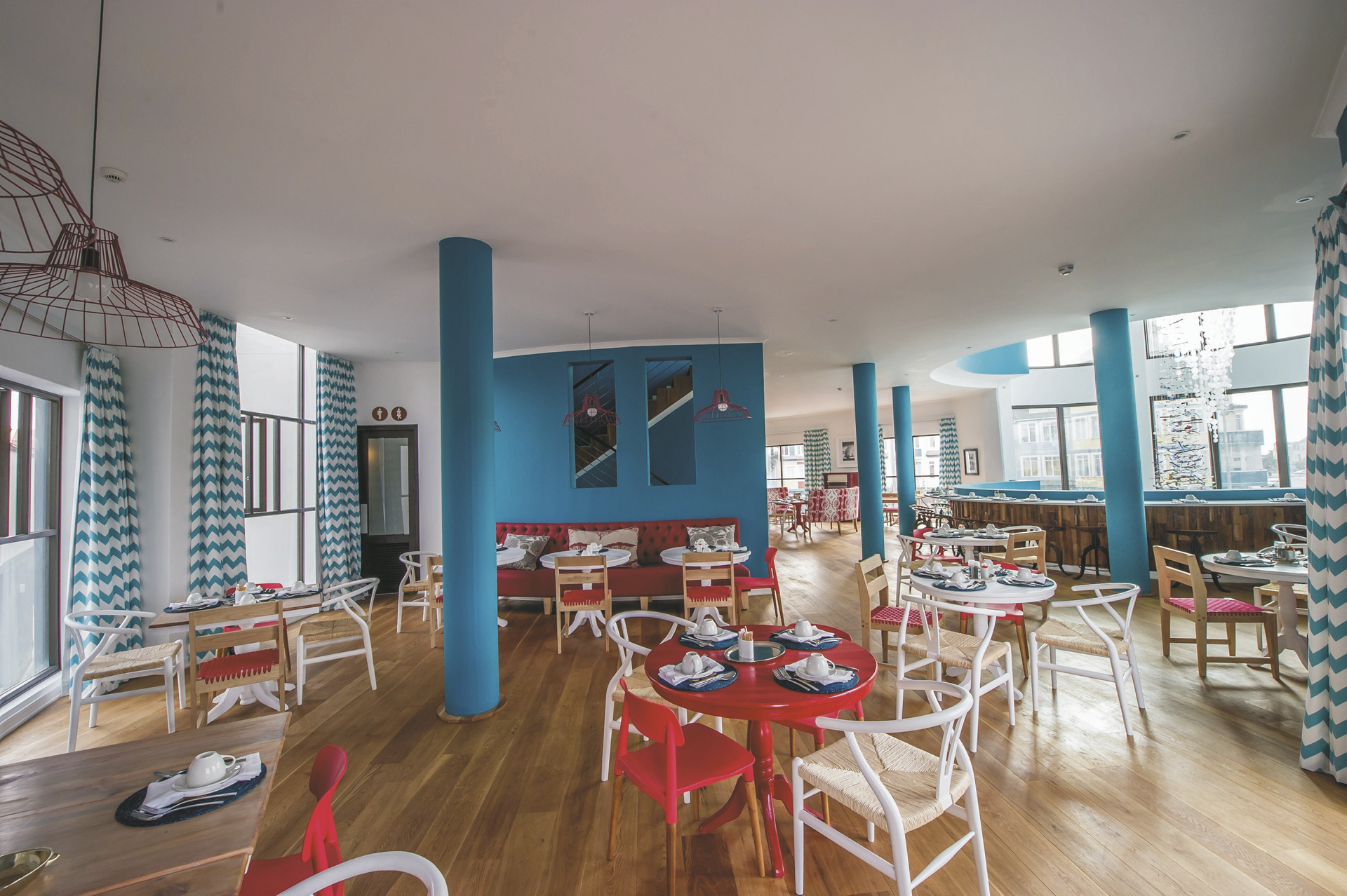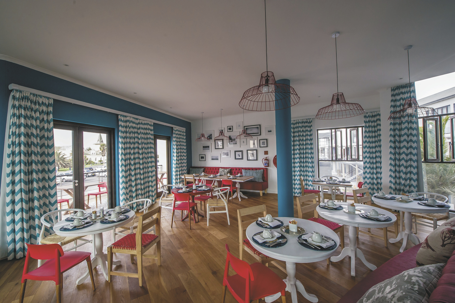 Das außergewöhnliche Hotel ist modern in kräftigen Farben eingerichtet. In der unteren Etage erwartet Sie eine stylische Bar mit vielen individuellen Sitzmöglichkeiten, der Frühstücksraum liegt im 1. Stock. Kostenfreies WLAN ist vorhanden. Es stehen sichere Parkplätze für Ihren Mietwagen zur Verfügung und an der Rezeption ist man Ihnen gerne behilflich bei der Buchung von Aktivitäten und Tischreservierungen in einem der zahlreichen Swakopmunder Restaurants.