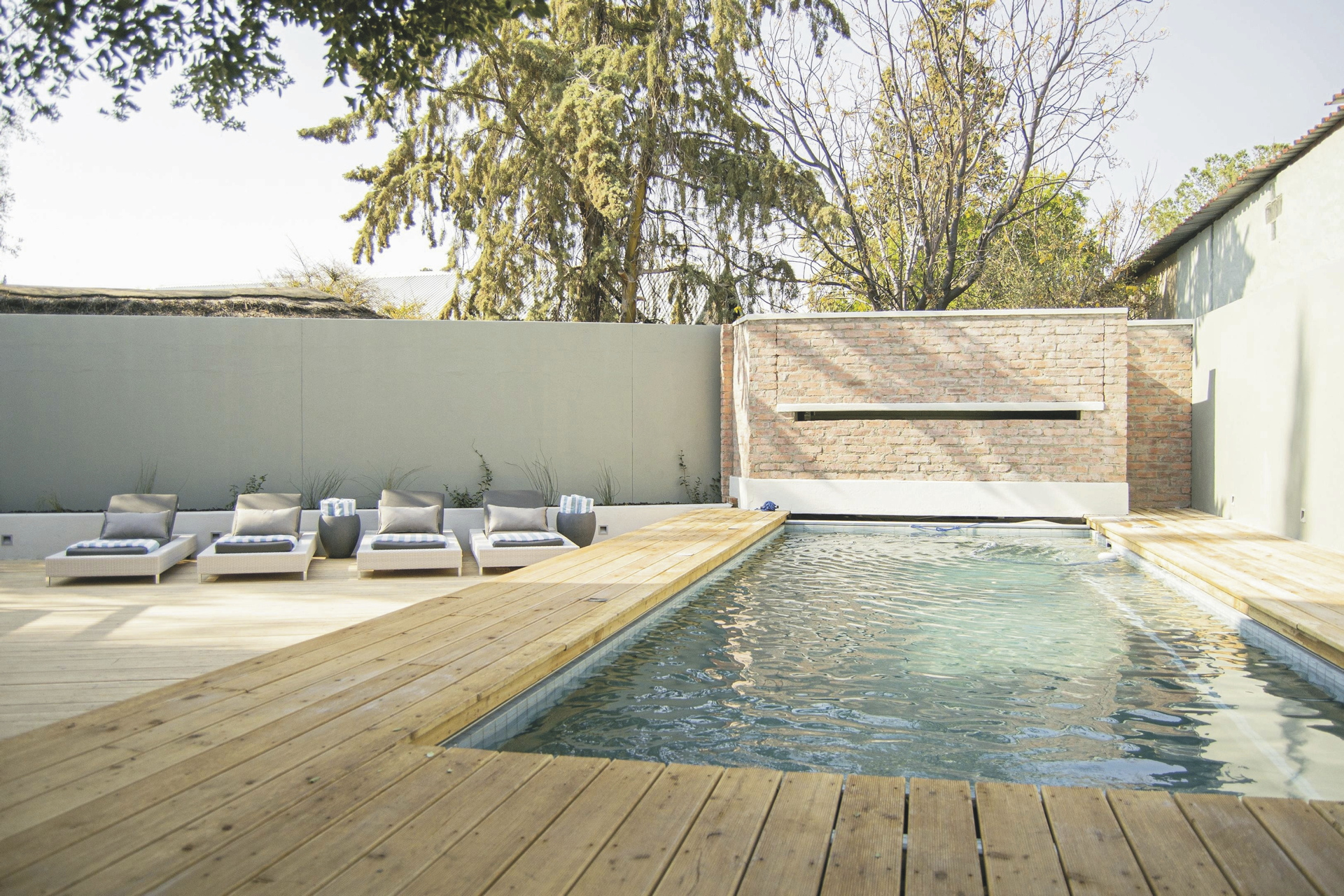 Luxus und Ruhe im Herzen der namibischen Hauptstadt. Der schöne, holzgedeckte Poolbereich ist der perfekte Ort um sich unter freiem Himmel zu Entspannen und die Seele nach einem ereignisreichen Tag in Windhoek baumeln zu lassen. Fußläufig zum Hotel finden Sie drei der besten Restaurants der Stadt, die dem Hotel angegliedert sind. Das Frühstück nehmen Sie entweder im Stellenbosch Tasting Room oder im Stellenbosch Market ein, abends steht Ihnen dann auch noch die Stellenbosch Wine Bar mit kulinarischen Köstlichkeiten zur Verfügung. Kostenlose gesicherte Parkplätze stehen am Hotel zur Verfügung.