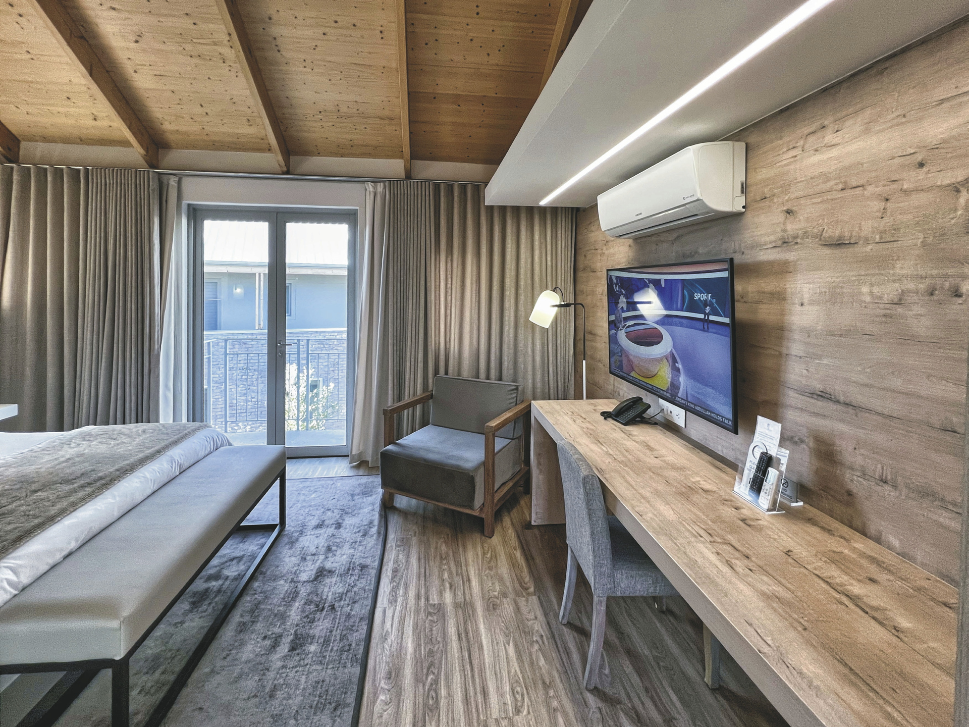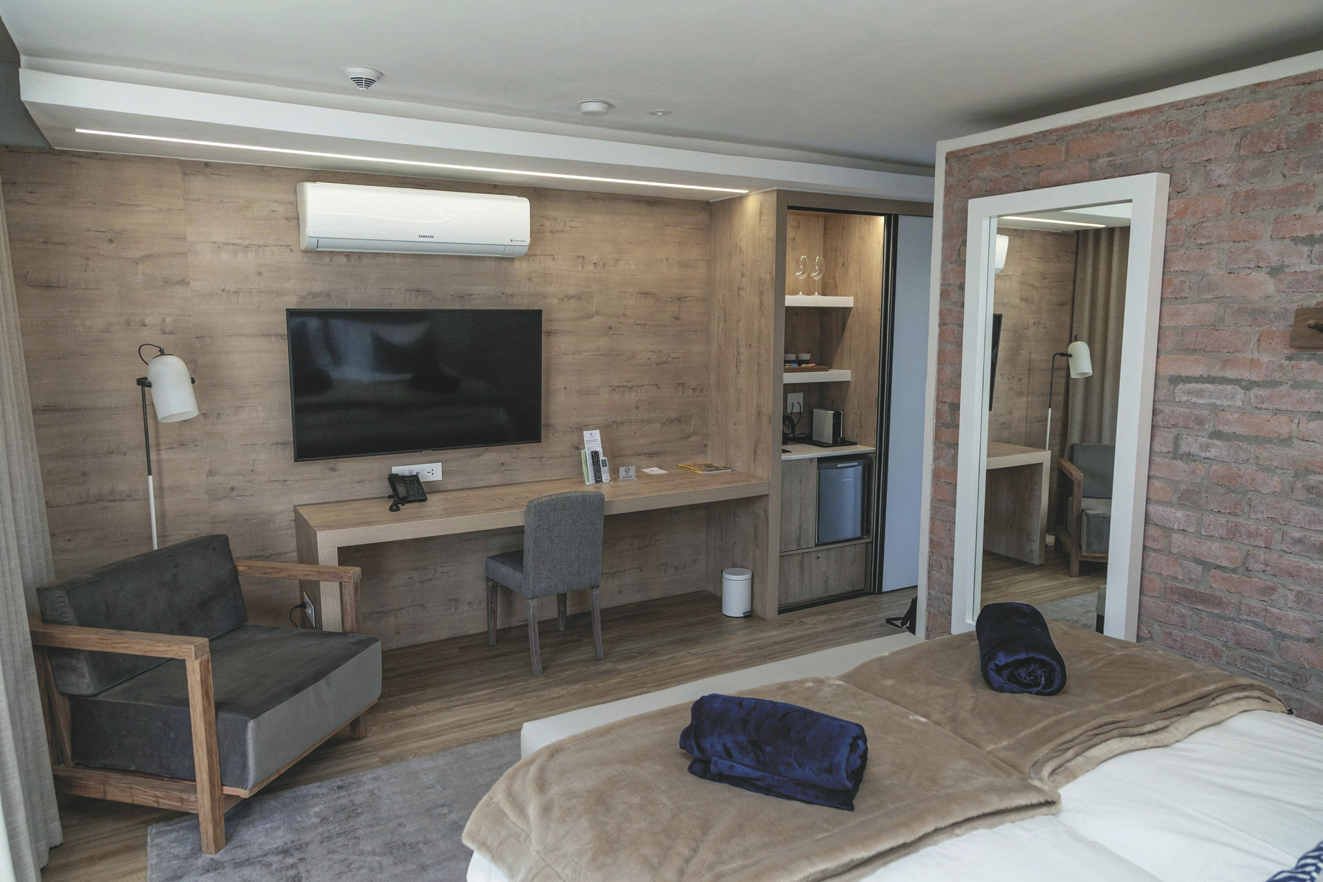 Die 40 großzügigen Designerzimmer sind komfortabel und erlesen ausgestattet. Sie verfügen alle über ein eigenes Bad, TV, kostenlosem WLAN, Minibar, Fön, Safe, Klimaanlage/Heizung und Tee-/Kaffeezubereiter und Balkon oder Terrasse. Die Standardzimmer liegen ebenerdig, die Loft-Zimmer in der oberen Etage. Für Familien gibt es zwei Familienzimmer.