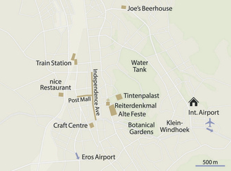 Im Herzen des Stadtteils Klein-Windhoek, ca. 10 Fahrminuten zum Stadtzentrum und ca. 40 km zum internationalen Flughafen. Nur wenige Gehminuten entfernt finden Sie ein kleines Einkaufszentrum, wo Sie unter anderem Kunsthandwerk erstehen können.