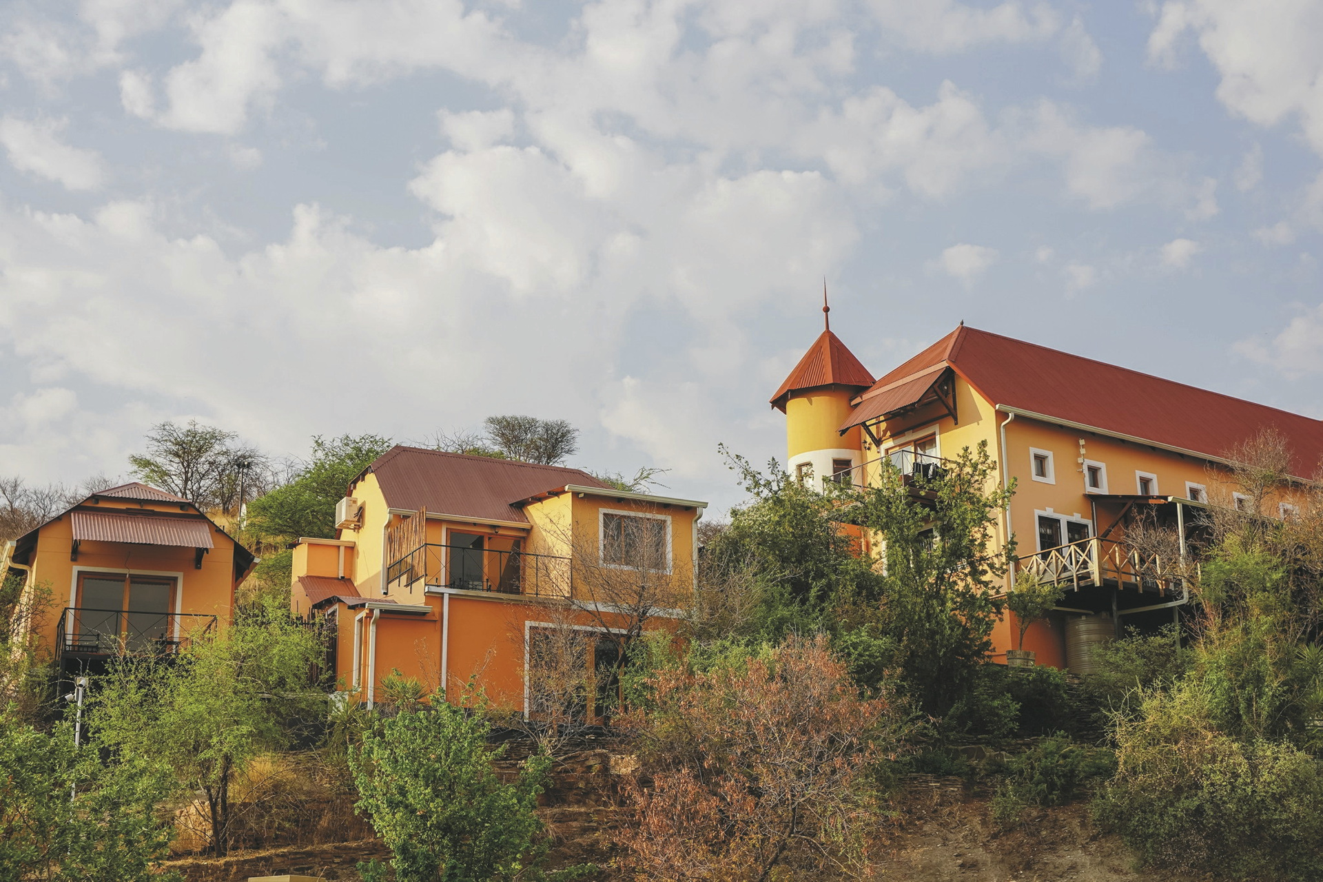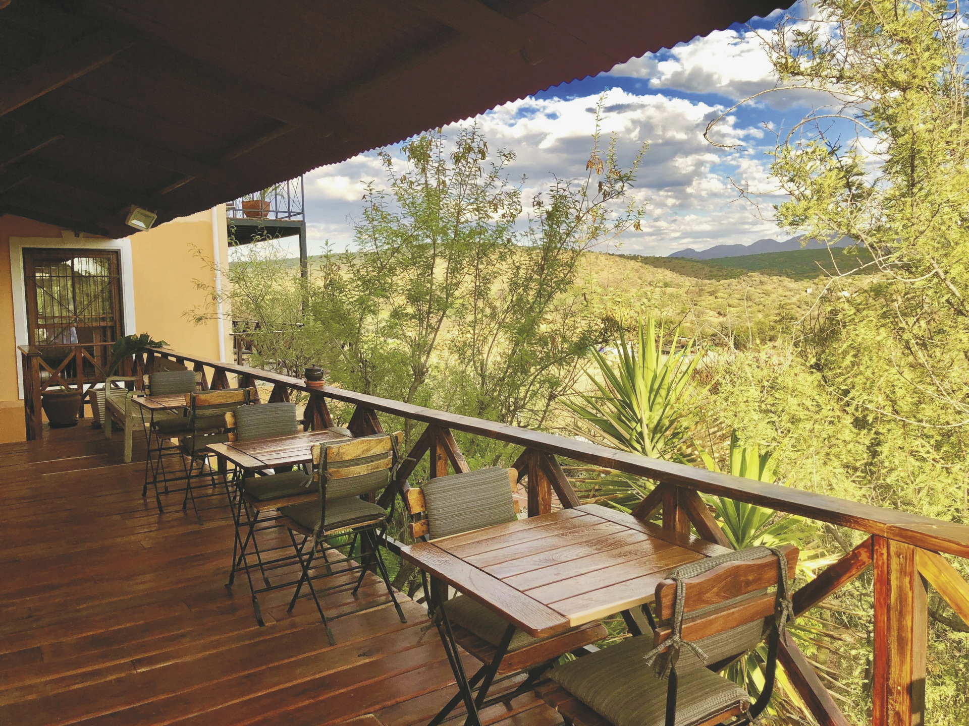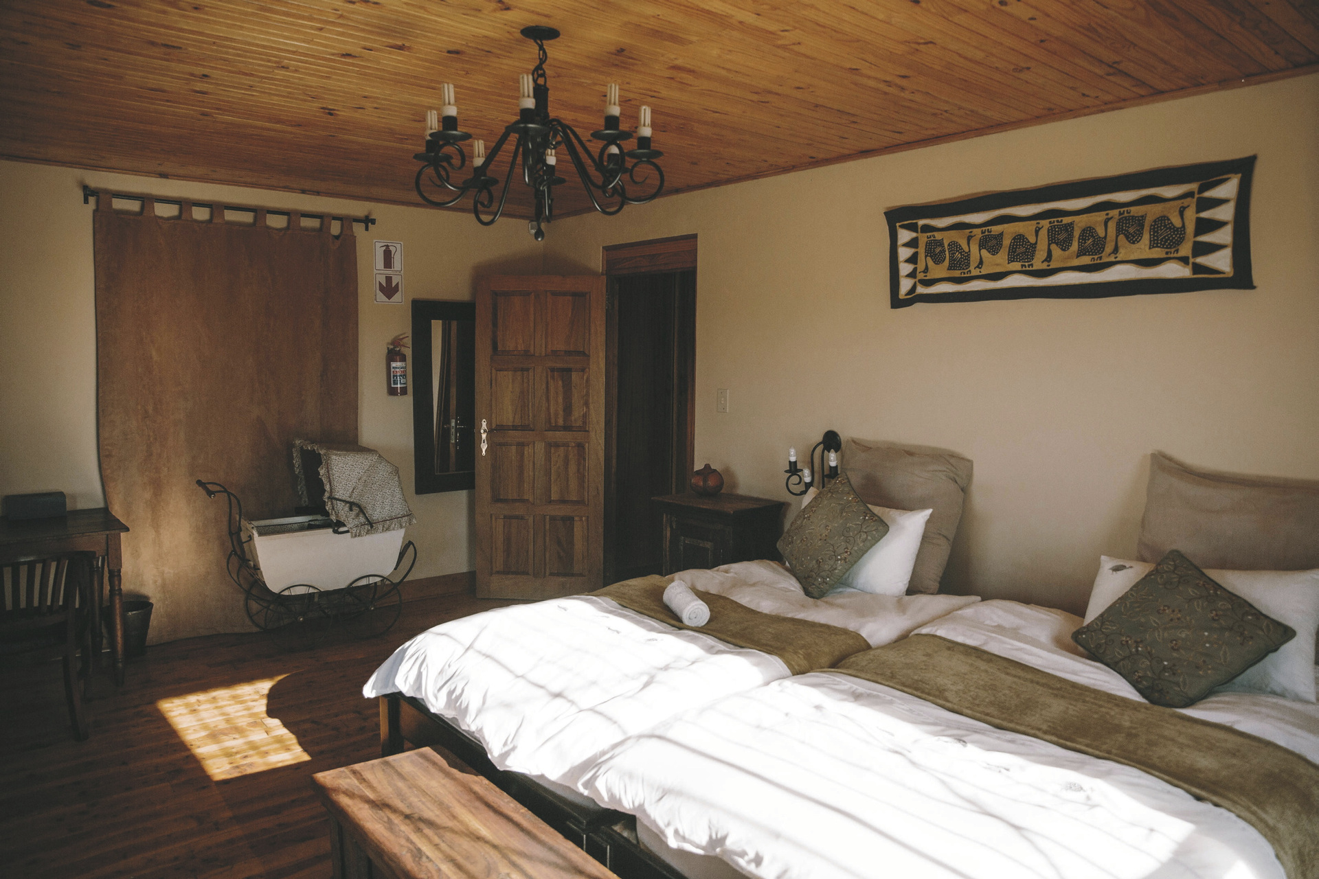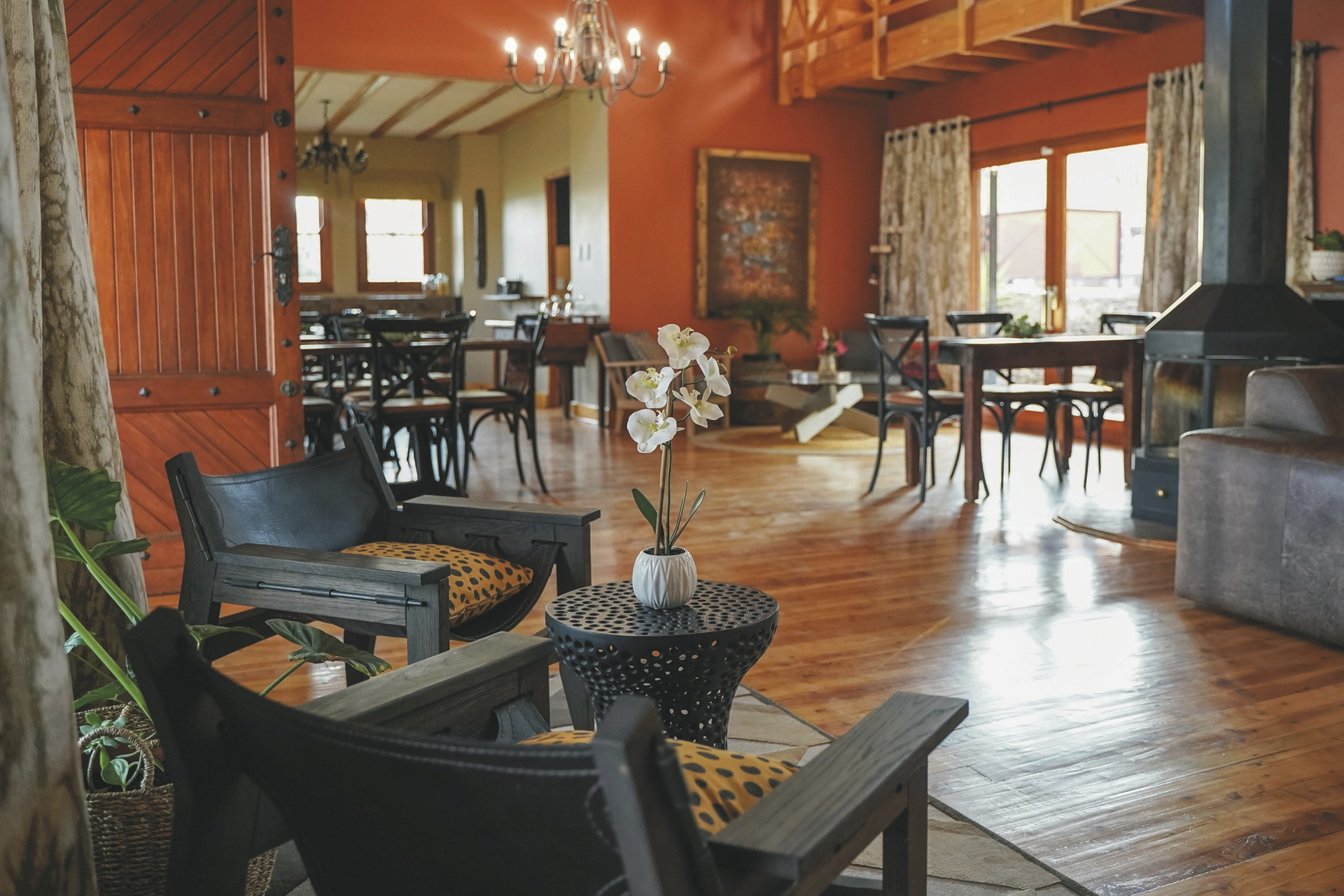Das gemütliche Gästehaus ist modern und etwas afrikanisch eingerichtet, es strahlt eine entspannte Atmosphäre und Geborgenheit aus. Die Liebe zum Detail lässt den Gast mit offenen Augen durch das Haus und den Garten schlendern, um zu sehen, was es zu entdecken gibt. Im Garten finden sich zahlreiche Skulpturen, hier hängt ein altes Telefon, dort steht eine Kamera, die ebenfalls reif fürs Museum ist. Lassen Sie sich überraschen. Der Tag beginnt mit einem guten Frühstück entweder auf der Terrasse oder im lichtdurchfluteten Frühstücksraum. Die gemütliche Lounge ist zu jeder Jahreszeit ein geselliger Treffpunkt. Im Winter spendet ein Kamin behagliche Wärme, an lauen Sommerabende sitzt man eher auf der Terrasse. Der üppige Garten lädt mit vielen Sitzmöglichkeiten zum Verweilen ein, ein kleiner Pool dient der Erfrischung nach einem ereignisreichen Tag in Namibias Hautstadt. Auf dem Gelände gibt es sichere Parkplätze für Ihren Mietwagen.