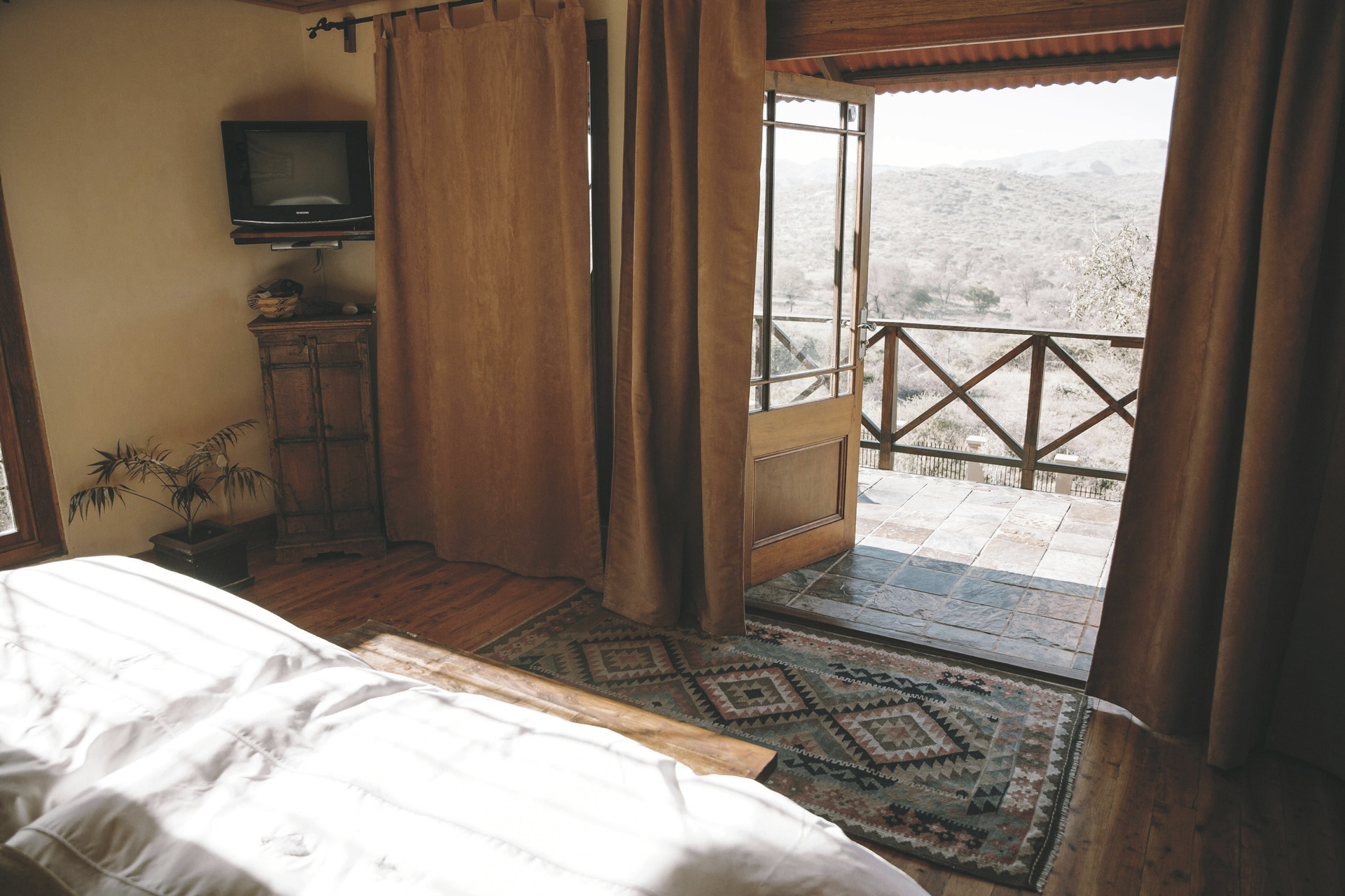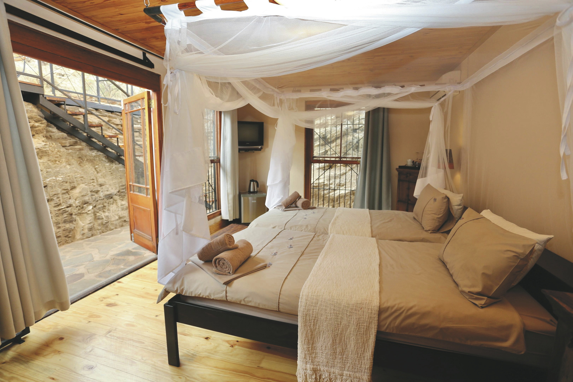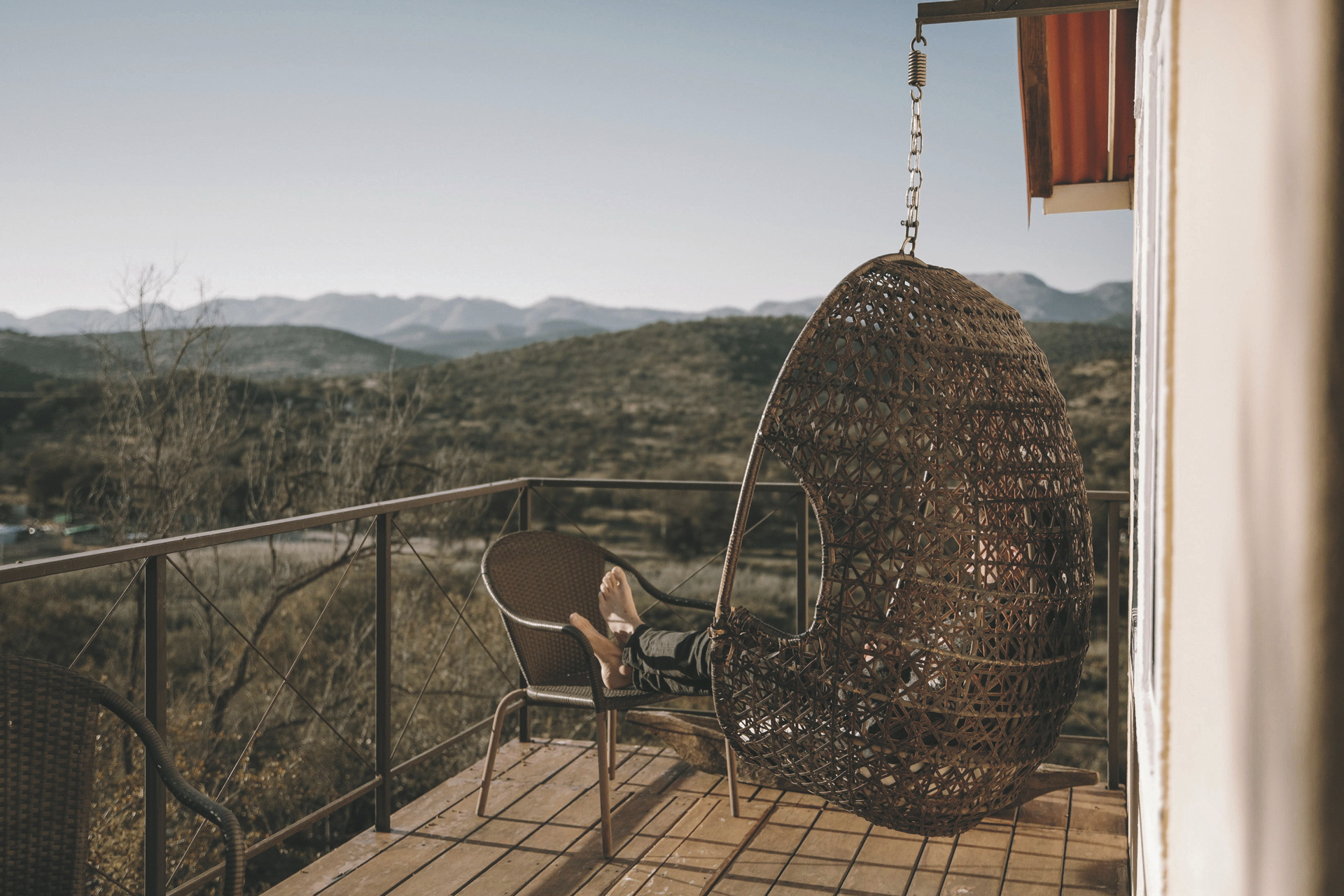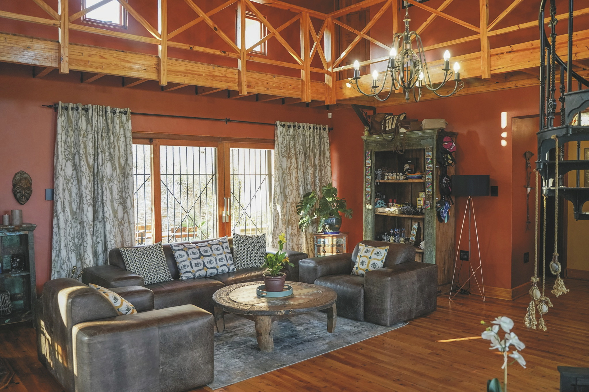 Das gemütliche Gästehaus ist modern und etwas afrikanisch eingerichtet, es strahlt eine entspannte Atmosphäre und Geborgenheit aus. Die Liebe zum Detail lässt den Gast mit offenen Augen durch das Haus und den Garten schlendern, um zu sehen, was es zu entdecken gibt. Im Garten finden sich zahlreiche Skulpturen, hier hängt ein altes Telefon, dort steht eine Kamera, die ebenfalls reif fürs Museum ist. Lassen Sie sich überraschen. Der Tag beginnt mit einem guten Frühstück entweder auf der Terrasse oder im lichtdurchfluteten Frühstücksraum. Die gemütliche Lounge ist zu jeder Jahreszeit ein geselliger Treffpunkt. Im Winter spendet ein Kamin behagliche Wärme, an lauen Sommerabende sitzt man eher auf der Terrasse. Der üppige Garten lädt mit vielen Sitzmöglichkeiten zum Verweilen ein, ein kleiner Pool dient der Erfrischung nach einem ereignisreichen Tag in Namibias Hautstadt. Auf dem Gelände gibt es sichere Parkplätze für Ihren Mietwagen.