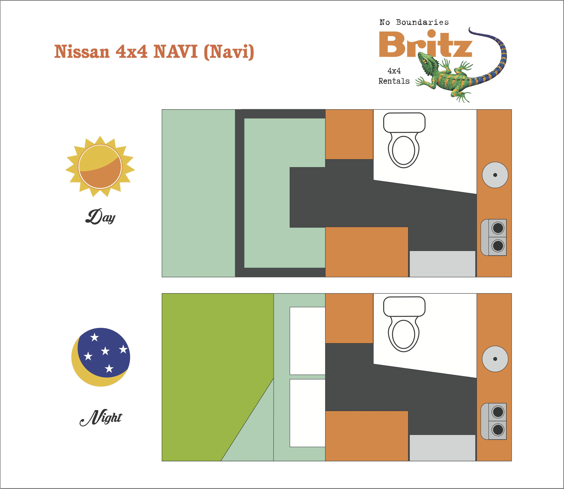 Der jüngste 4WD Camper von Britz mit 2 Schlafplätzen und Toilettenraum in einer festen Wohnkabine mit Stehhöhe.