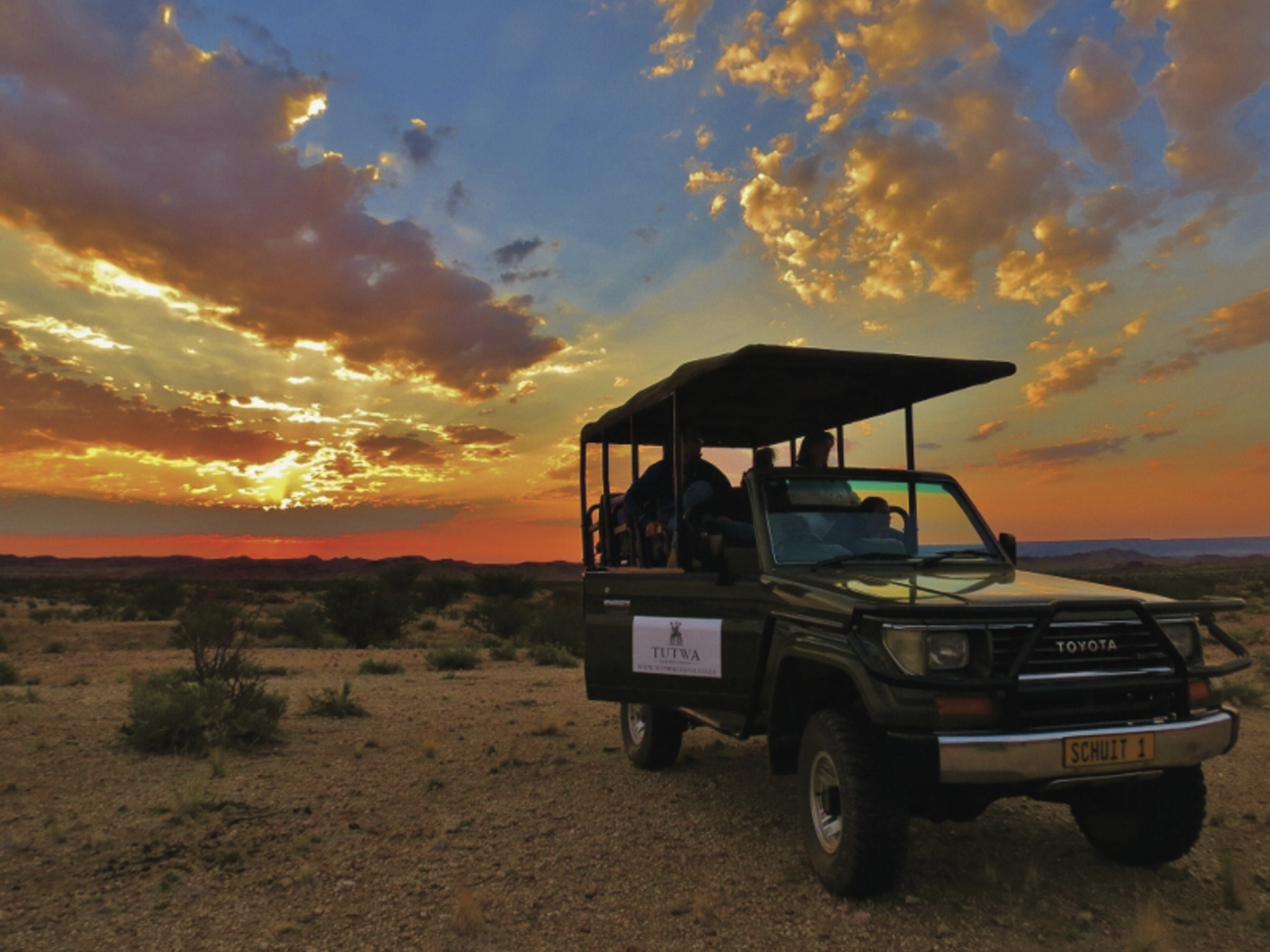 Tutwa Desert Lodge (F/M/A).Zwei Aktivitäten sind heute für Sie eingeschlossen. Genießen Sie die Landschaft entlang des großen Flusses, der die Grenze nach Namibia markiert und lassen Sie sich überraschen, wie reich die Tierwelt in diesem Teil der Wüste ist. Besonders die scheuen Leoparden werden hier häufig gesehen.