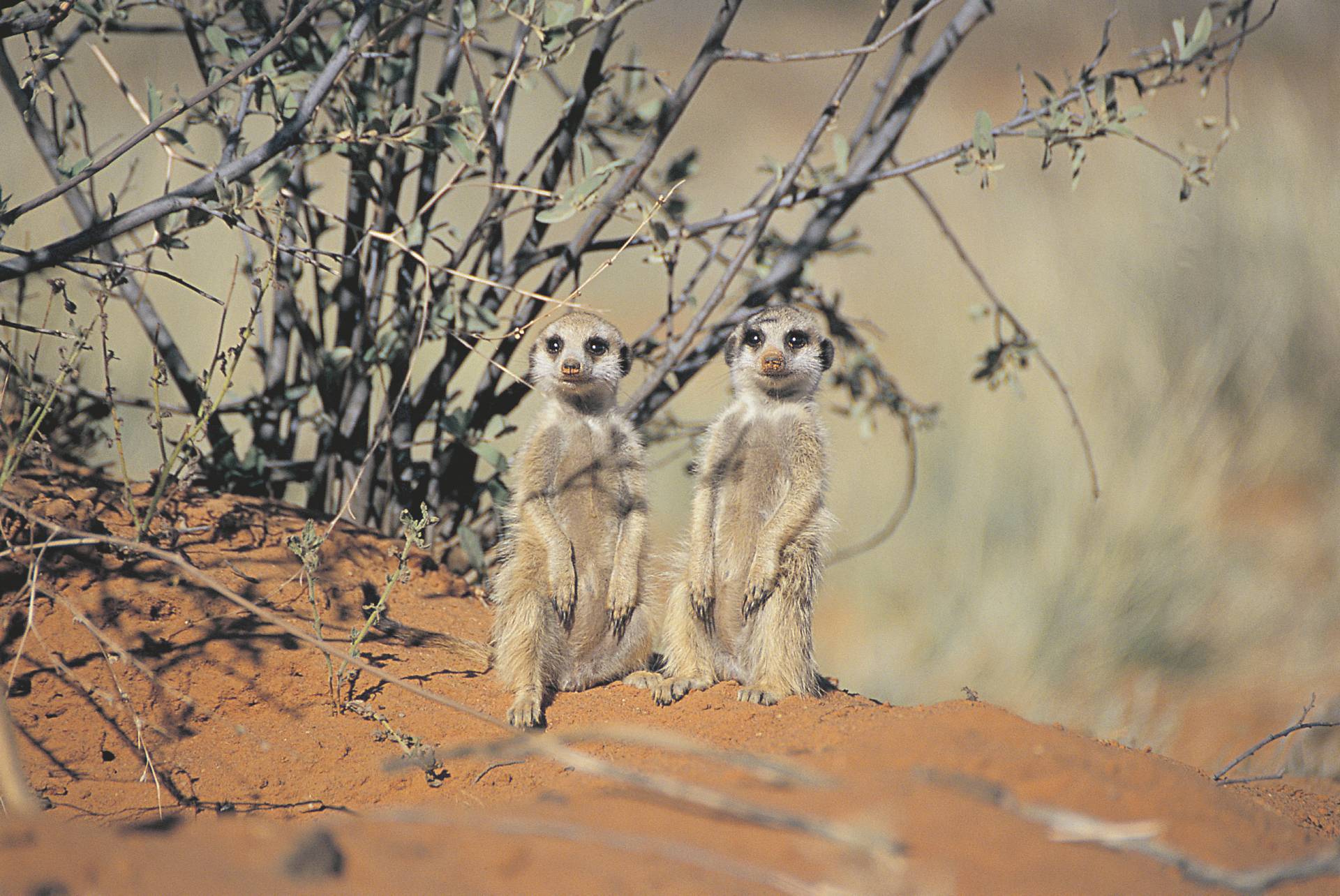 Kgalagadi Transfrontier Nationalpark (ca. 165 km).Zwischen den roten Dünen und den Kameldornbäumen halten Sie Ausschau nach Springbock-, Gemsbock-, Gnu- und Eland-Herden. Leoparden und Löwen könnten ebenfalls auf der Lauer liegen. Putzig ist auch das emsige Treiben der Erdmännchenfamilien.