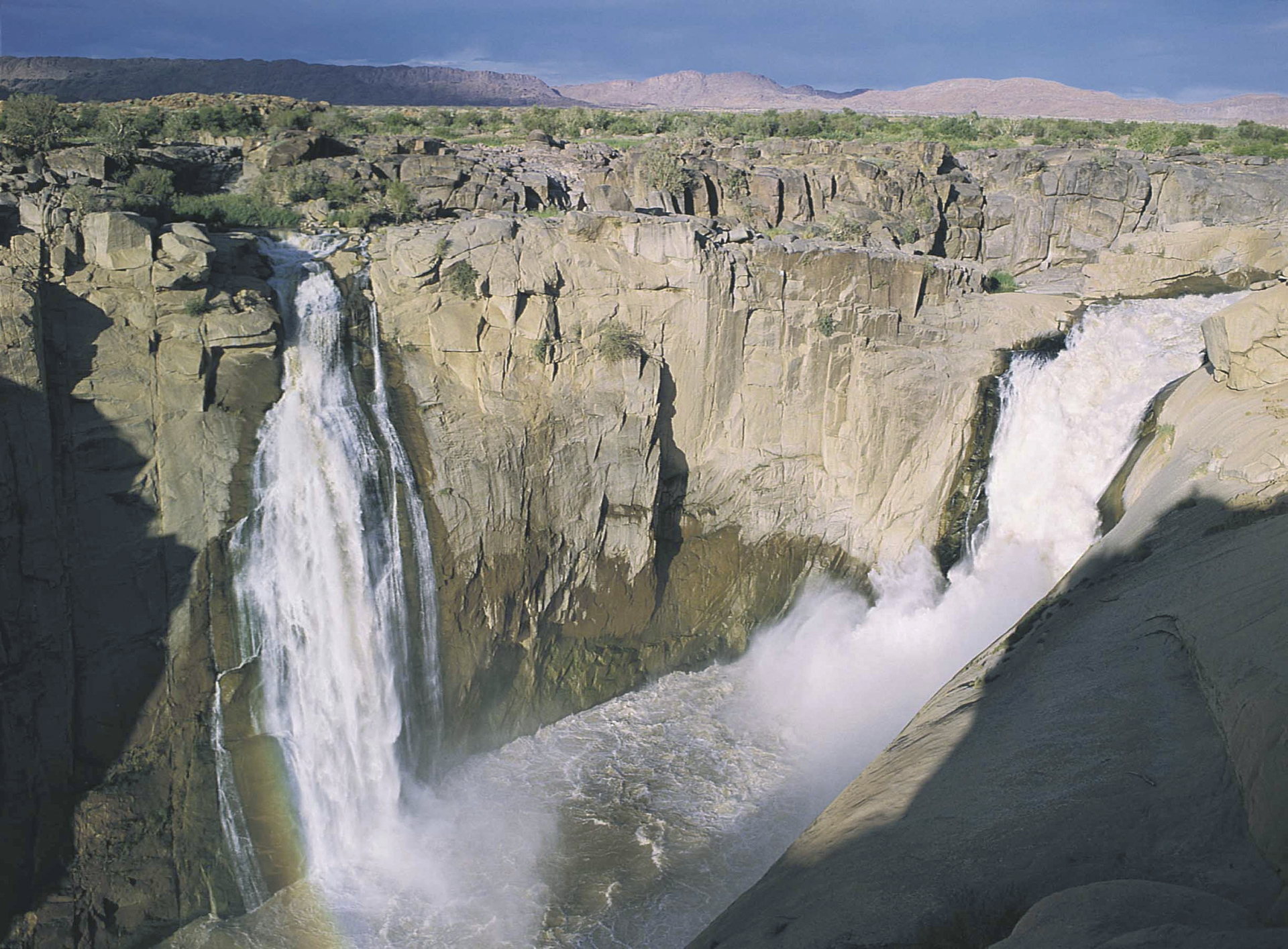 Kgalagadi Transfrontier Nationalpark - Augrabies Nationalpark (ca. 440 km; F).Nach der morgendlichen Aktivität und dem Frühstück werden Sie zurück zu Ihrem Mietwagen gebracht. Weiterfahrt zum Augrabies Nationalpark. Hier können Sie einen Rundgang zu verschiedenen Aussichtspunkten machen. Beim Hauptfall stürzen die Wassermassen gut 56 m tosend in die canyonartige Schlucht des sehr langen Gariep River, auch Orange River genannt.
