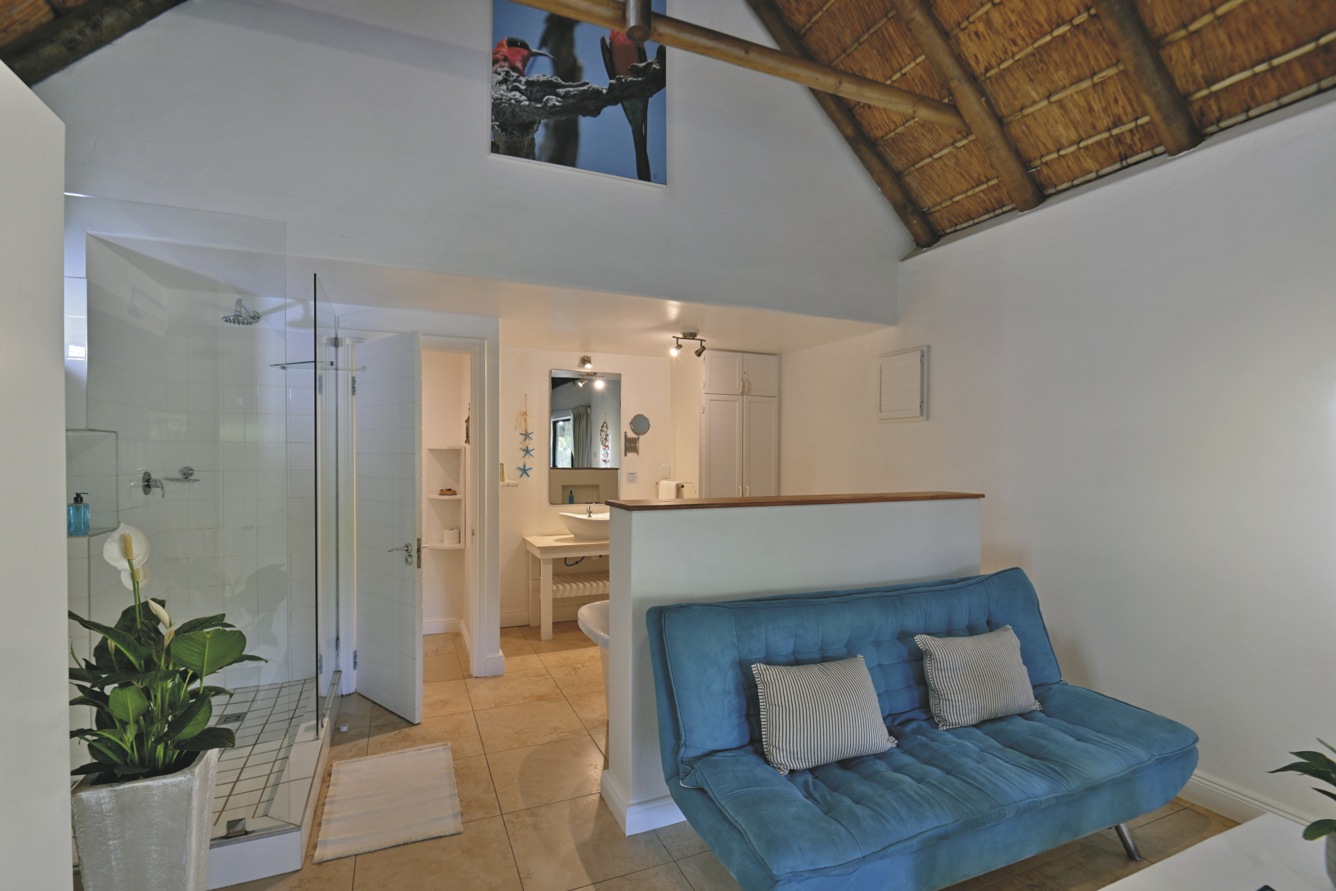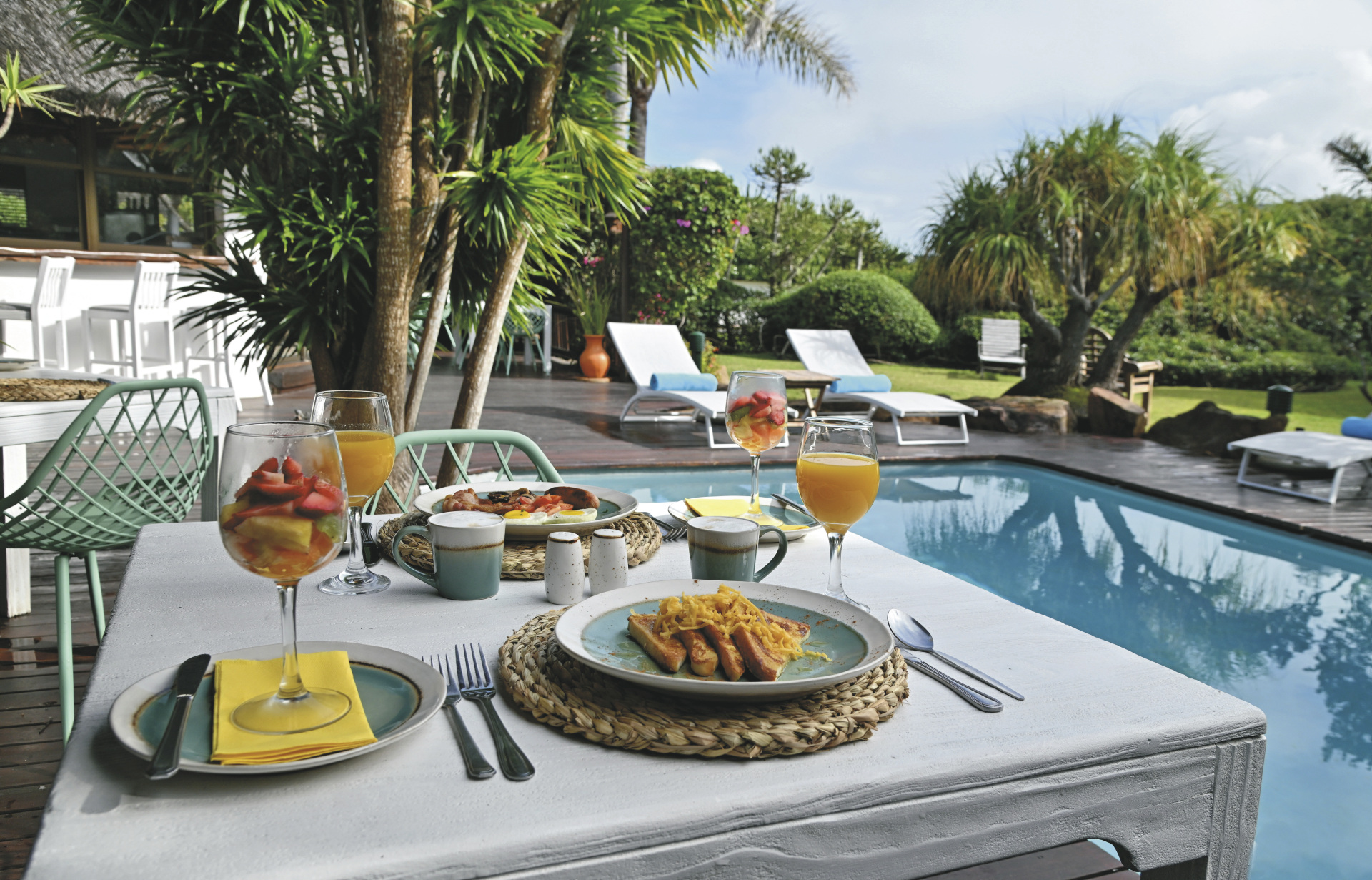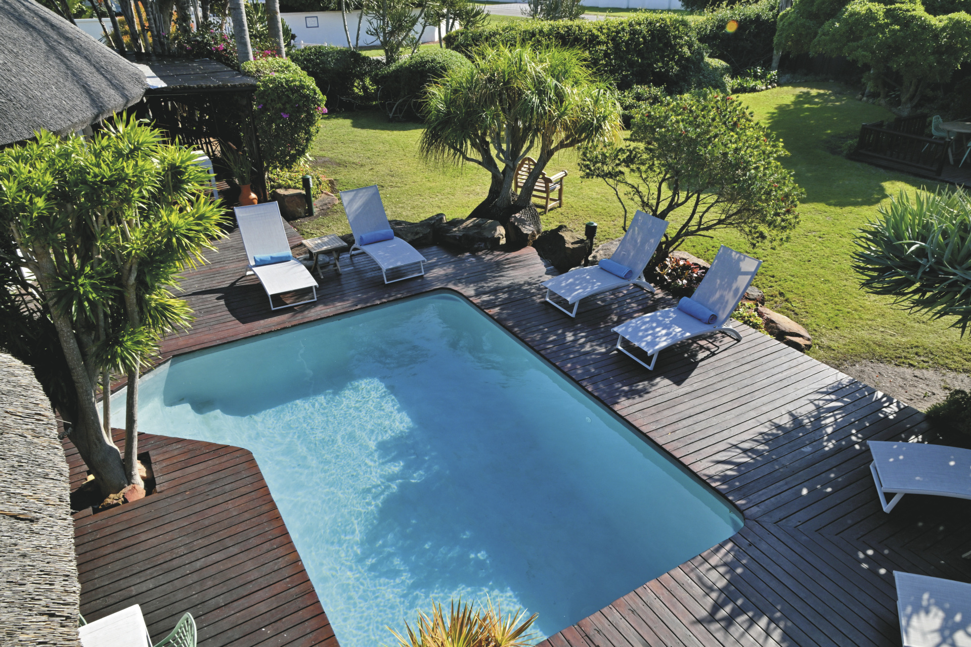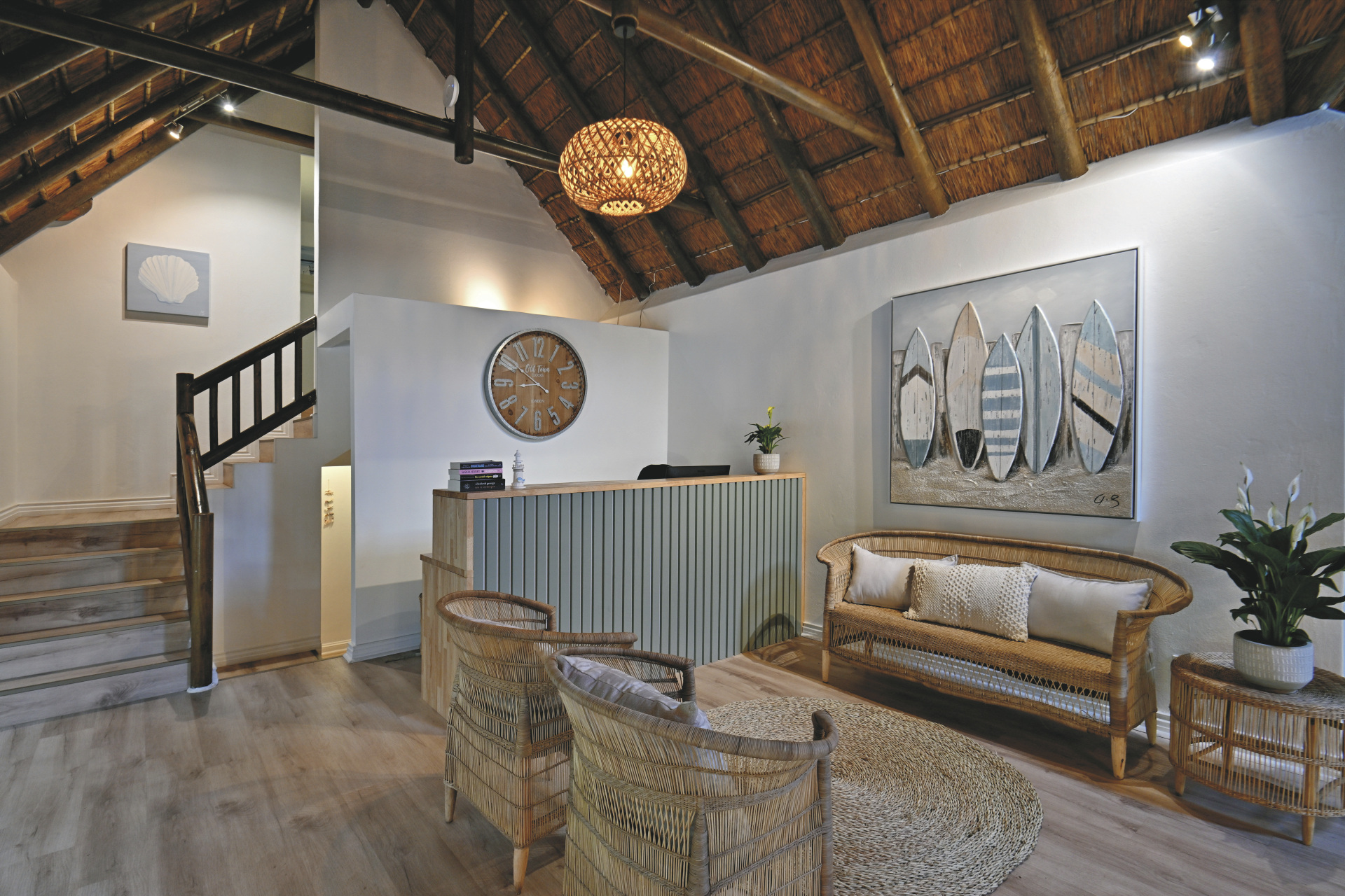 Das reetgedeckte Gästehaus ist wie nahezu alle Häuser im Ort weiß getüncht und das Interieur spiegelt die sanften, natürlichen Farben des Meeres und der umgebenden Landschaft wider und schafft so einen ruhigen Rückzugsort an der Küste. Das Ambiente dieses Boutique-Gästehauses ist eine einzigartige Mischung aus hervorragender Gastfreundschaft, Küche und Service. Auf der überdachten Terrasse wird bei gutem Wetter das Frühstück mit Blick in den Garten serviert. An dem von Palmen gesäumten Pool können sich die Gäste nach einem ereignisreichen Tag erholen. An kühlen Abenden brennt hier oder im gemütlichen Loungebereich ein wärmendes Kaminfeuer. Außerdem steht eine kleine Poolbar, eine Honesty-Bar und kostenloses WLAN zur Verfügung.