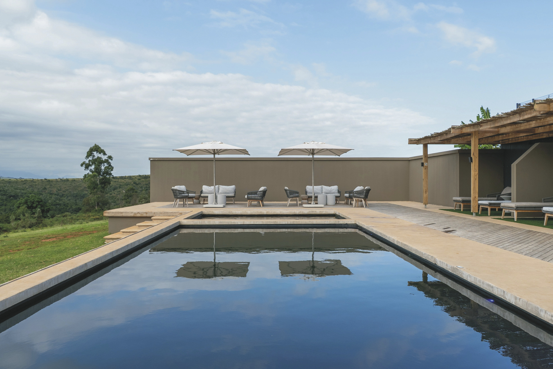 Im nördlichen Teil des Reservats wurde auf 6.000 Hektar ein Tierparadies geschaffen, das 26 Tierarten beherbergt, darunter das seltene schwarze Impala. Bewundern Sie die majestätischen Outeniqua Berge und die faszinierenden Sonnenuntergänge, die über das Reservat ziehen. Die alten, über 200 Jahre alten Farmgebäude würden liebevoll renoviert und zu einem perfekten Refugium für Safarigäste hergerichtet. Das Bellevue Restaurant mit 3 Kaminen bietet ein À-la-carte-Menü mit tollen Optionen für Kinder. Der Poolbereich ist kindersicher umzäunt und bietet einen Warm- und Kaltwasserpool und viele schattige Liegen und Sitzgelegenheiten. Am Abend trifft man sich um die Feuerstelle oder an der gemütlichen Bar. Eingeschlossene Aktivitäten: Pirschfahrt, Buschwanderung. Für die jüngsten Gäste gibt es eine Fülle von Aktivitäten, die sie während des gesamten Aufenthalts begeistern werden. Dazu gehören das Junior-Ranger-Programm, ein Kinderclub, ein herrlicher Spielplatz, Ponyreiten sowie geführte Pirschfahrten und kindgerechte Buschwanderungen. Babysitter auf Anfrage verfügbar. Optional: Reitsafari oder begleiten Sie einen Tierarzt durch das Reservat, beobachten und assistieren Sie bei der medizinischen Versorgung von Wildtieren.