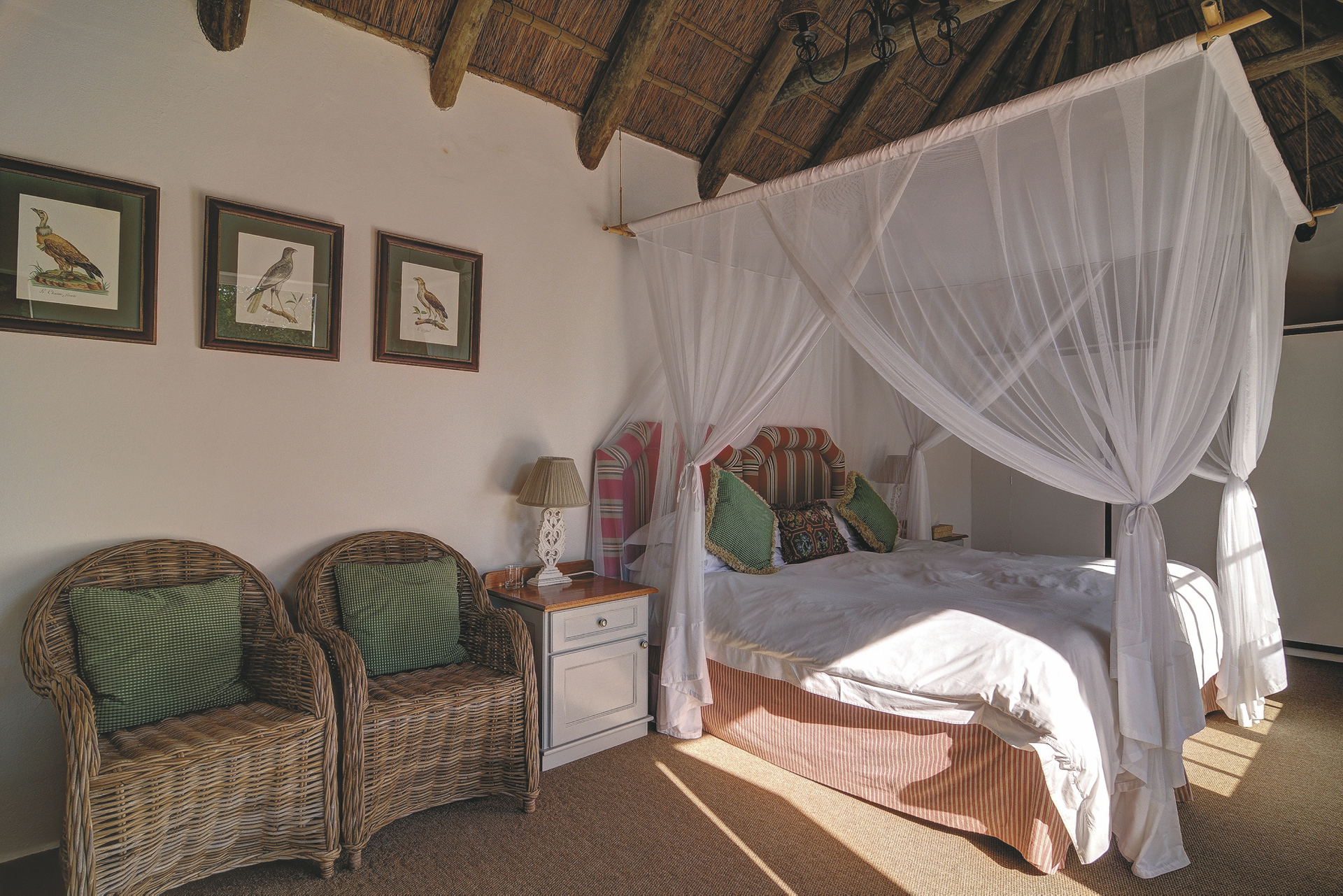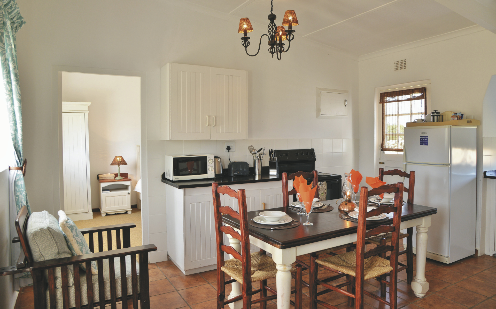 Im natürlichen Dorfcharakter weitläufig gebautes Resort mit verschiedenen landestypischen Unterkünften rund um das alte Opstal Herrenhaus. Hier befinden sich auch das Restaurant (kostenloses WLAN) mit seiner schönen Terrasse mit Blick auf das Vlei, die Bar, das Ausflugscenter, zwei Pools, der Kinderspielplatz und ein Tennisplatz.Verschiedene Wildtiere bewegen sich frei auf dem Gelände und lassen sich aus nächster Nähe beobachten. Wale können Sie von Juni - Oktober ebenfalls vom Strand aus beobachten. Da der Küstenstreifen hier Meeresschutzgebiet ist sind Walbeobachtungstouren per Boot nicht möglich. Der traumhafte Sandstrand bietet sich natürlich nicht nur zur Walbeobachtung an, sondern auch für lange einsame Spaziergänge, Sandburgen bauen und zum Sonnenbaden. Optionale Aktivitäten: geführte Wanderung zur Vogelbeobachtung oder Meereskunde, Mountainbike Tour, Bootstour auf der Lagune, Fahrradverleih, Naturrundfahrt. Außerdem durchziehen etliche markierte Wanderweg das Reservat.