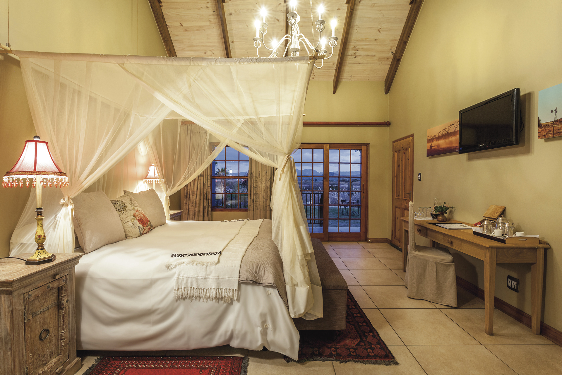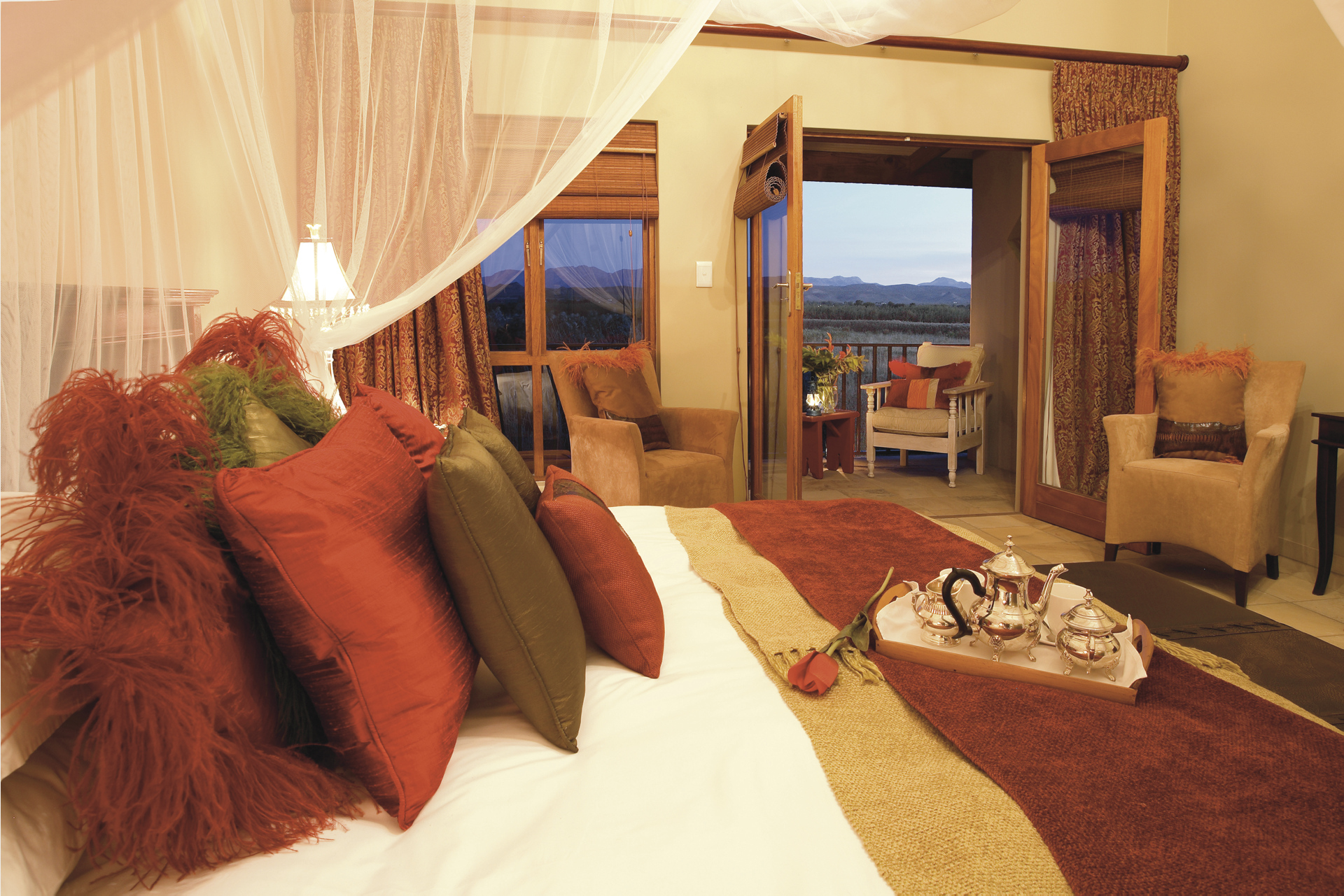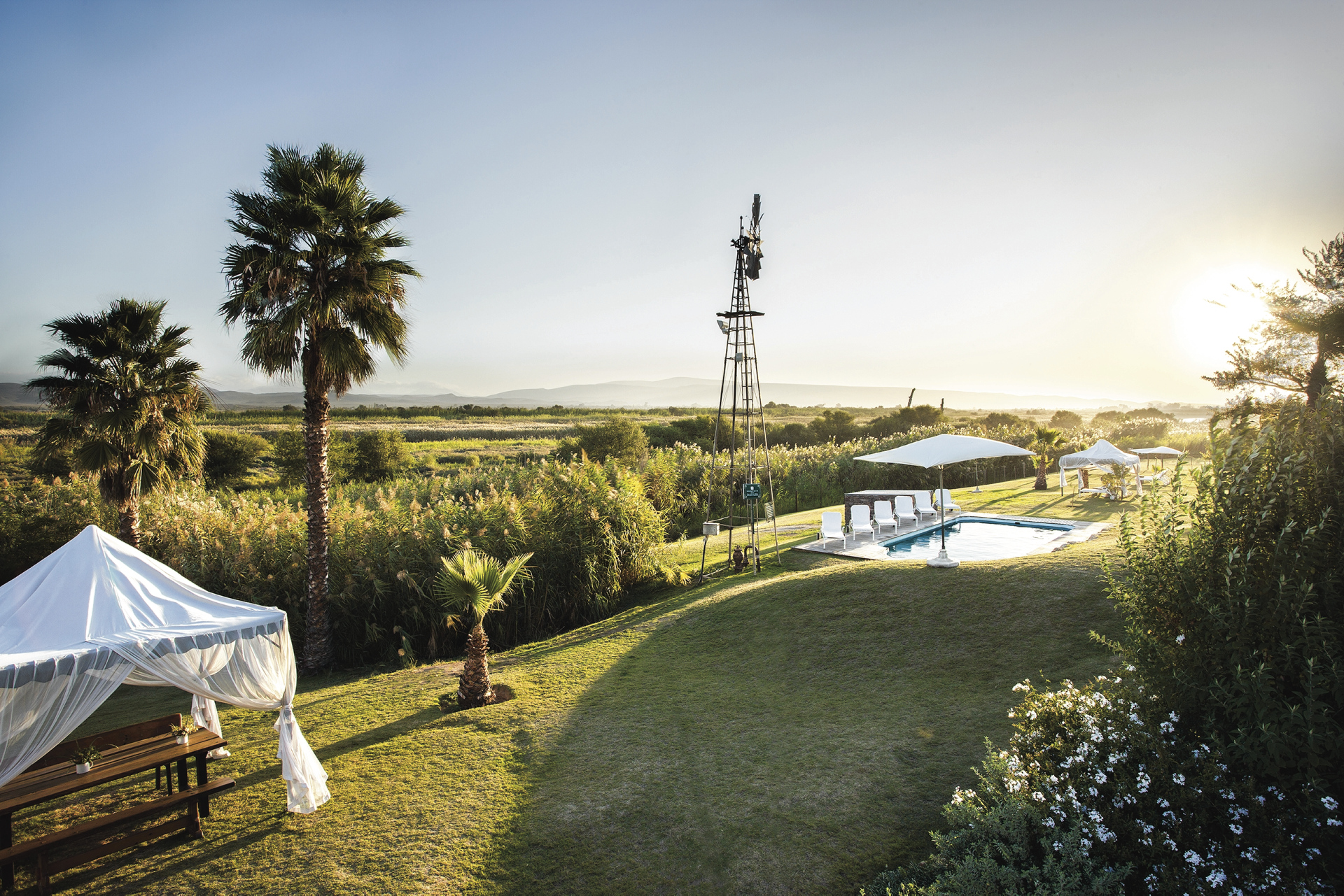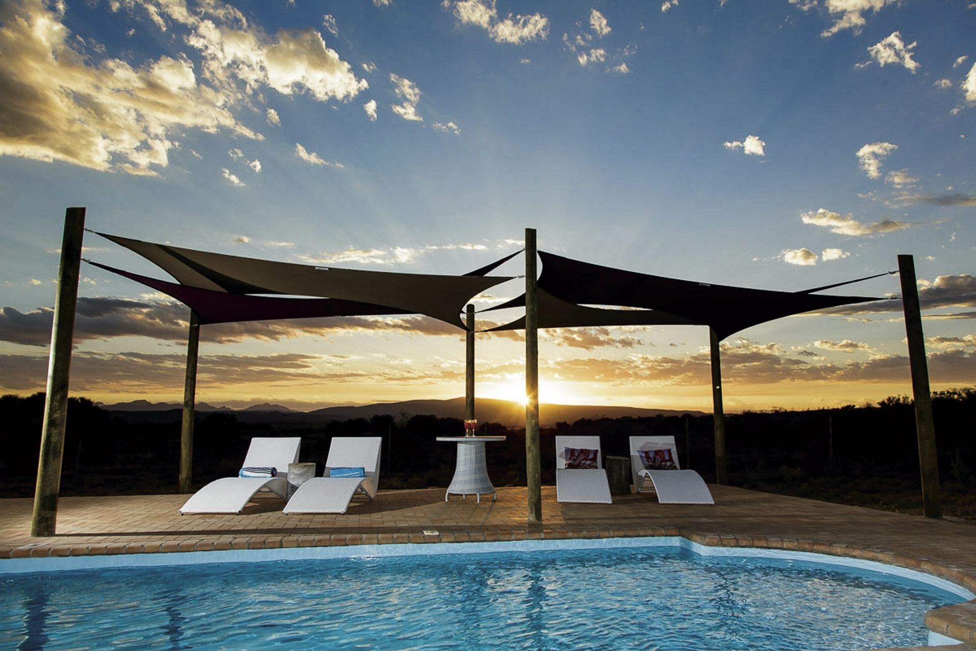 Das 150 Jahre alte Farmhaus wurde liebevoll in einen Gästebetrieb umgewandelt und um zahlreiche Nebengebäude, in denen die meisten Zimmer untergebracht sind, erweitert. Im Restaurant erwartet Sie einzigartige Karoo-Küche mit vielen Produkten aus eigenem Anbau bzw. eigener Zucht. Die urige Bar, die gemütliche Lounge oder aber die Feuerstelle unter den Sternen Afrikas, das sind die Treffpunkte der Gäste am Abend. Für entspannte Stunden finden Sie am Salzwasserpool oder im Spa ein gutes Plätzchen. In der hauseigenen Boutique können Sie, neben klassischen Souvenirs, vor allem Produkte und Lederwaren vom Strauß direkt vom Erzeuger erwerben. Kostenloses WLAN finden Sie im Haupthaus. Wer die Umgebung gerne aktiv erkunden möchte, kann sich ein Mountain-Bike oder ein Kanu ausleihen oder auf einem der vielen ausgewiesenen Wanderwegen zu Fuß die Region erwandern. Optionale Aktivität: Erdmännchen-Safari.