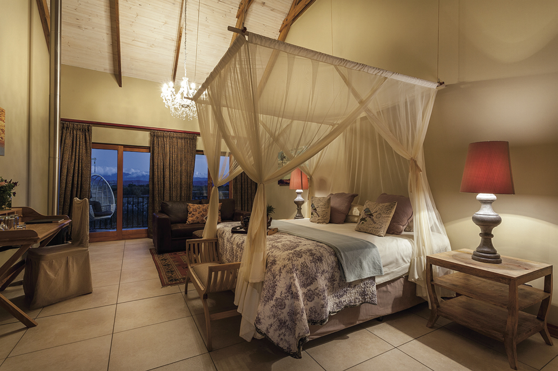 Die 24 individuell eingerichteten Zimmer versprühen einen charmanten Farmcharakter. Sie befinden sich in verschiedenen Gebäuden und unterscheiden sich durch den Ausblick und die Größe voneinander. Jedes hat ein eigenes, teils offenes Badezimmer, außerdem einen Fön, Klimaanlage, Safe, Kühlschrank, WLAN, Tee-/Kaffeezubereiter, TV, Moskitonetz; einige Zimmer haben einen Kamin.