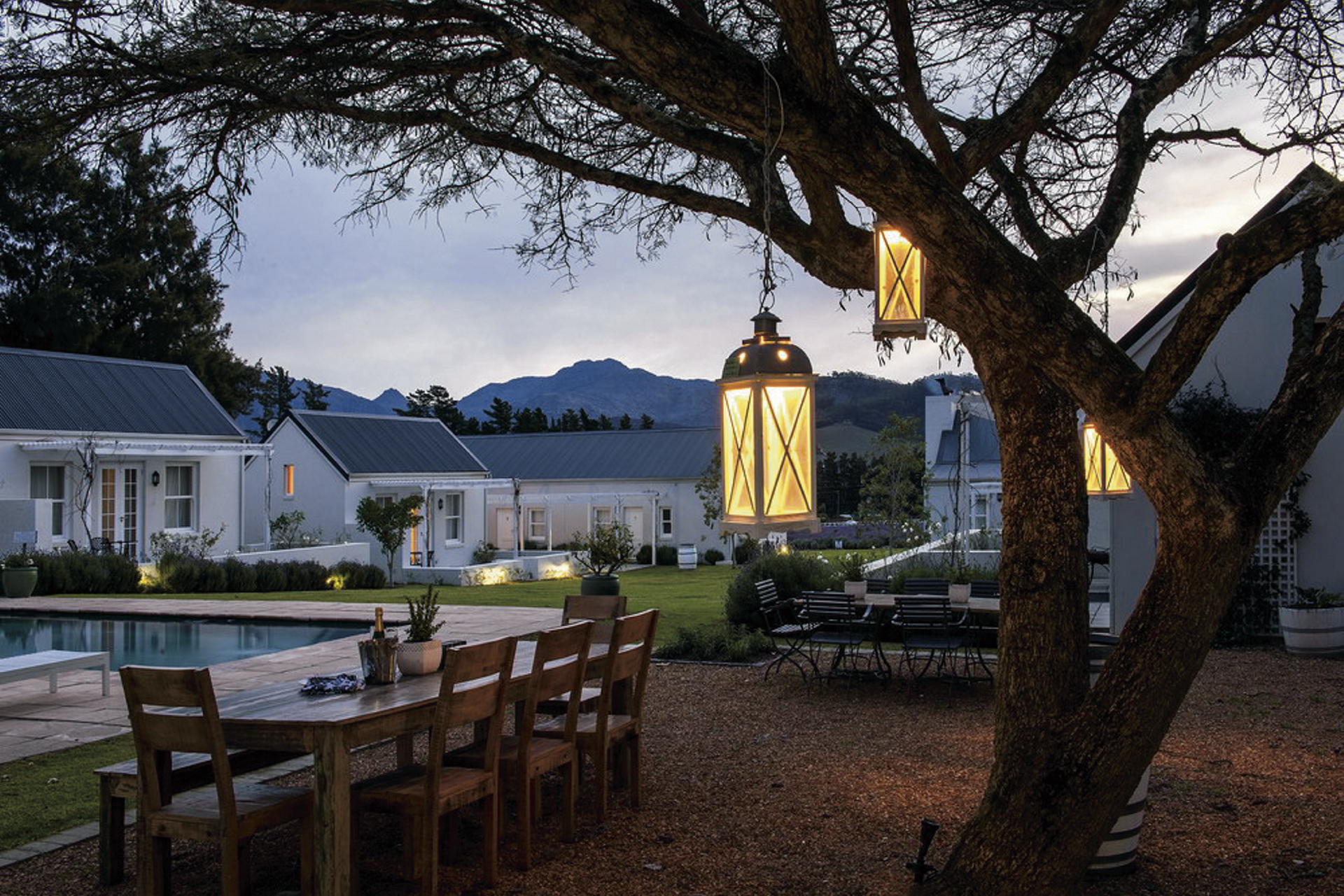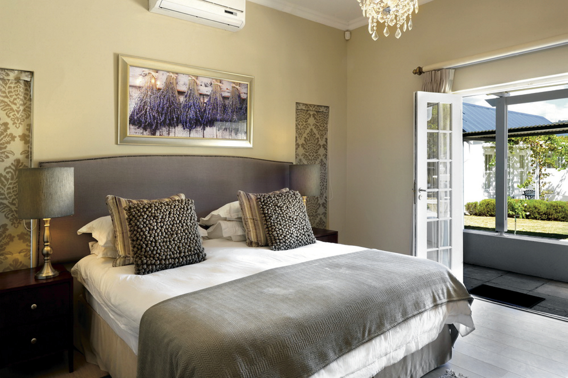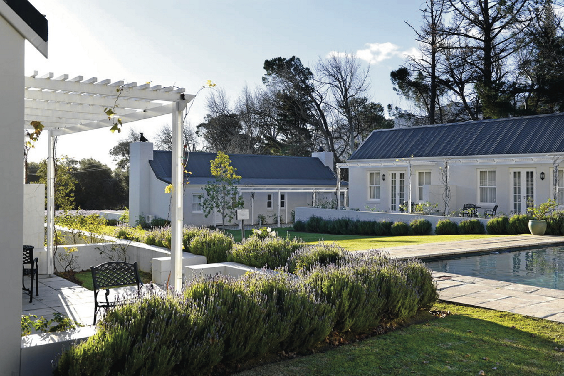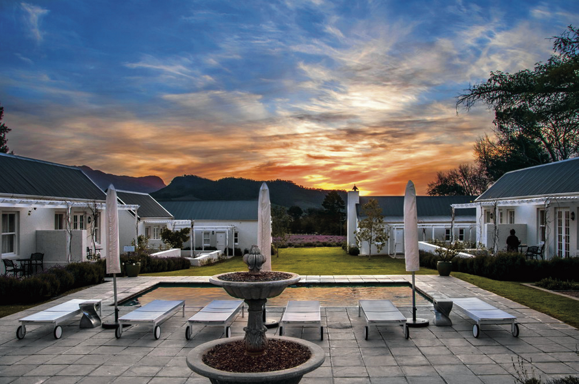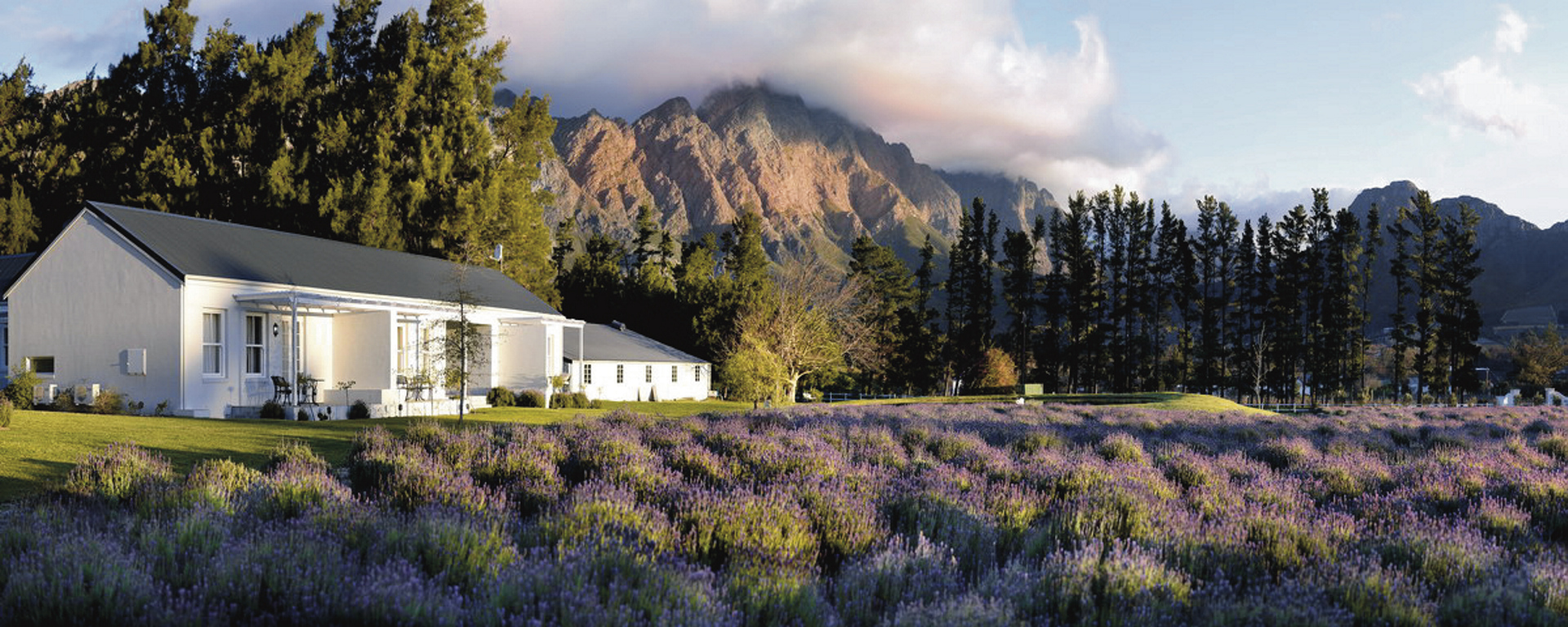 Das gemütliche Gästehaus, umgeben von Bergen und blühenden, violetten Feldern, befindet sich in einem großen, abgeschlossenen Wohnkomplex und besteht aus mehreren Gebäuden. Diese sind teils im kap-holländischen Stil erbaut und gruppieren sich im Garten um den Pool. Im alten Herrenhaus befindet sich der gemütliche, helle Frühstücksraum, bei schönes Wetter können Sie auch auf der Terrasse in den Tag starten. Die Open-Air Bar am Pool, nicht nur mit Weinen aus Franschhoek bestückt, ist bis zum Einbruch der Dunkelheit für Sie geöffnet. Sie können verschiedene Spa-Anwendungen in Ihrer Suite in Anspruch nehmen. Für Ihren Mietwagen gibt ausreichend, sichere Parkplätze.