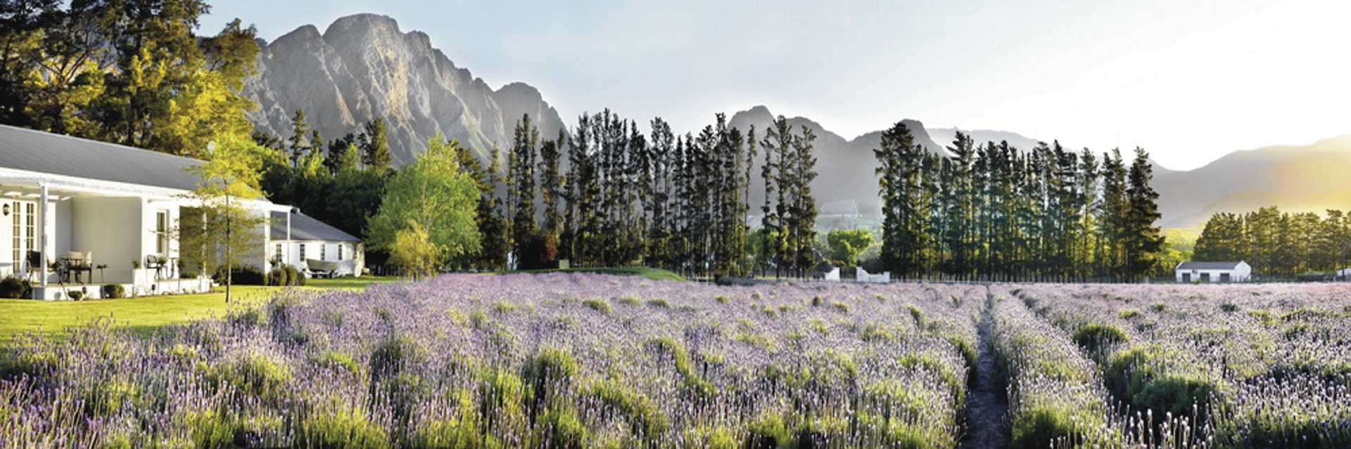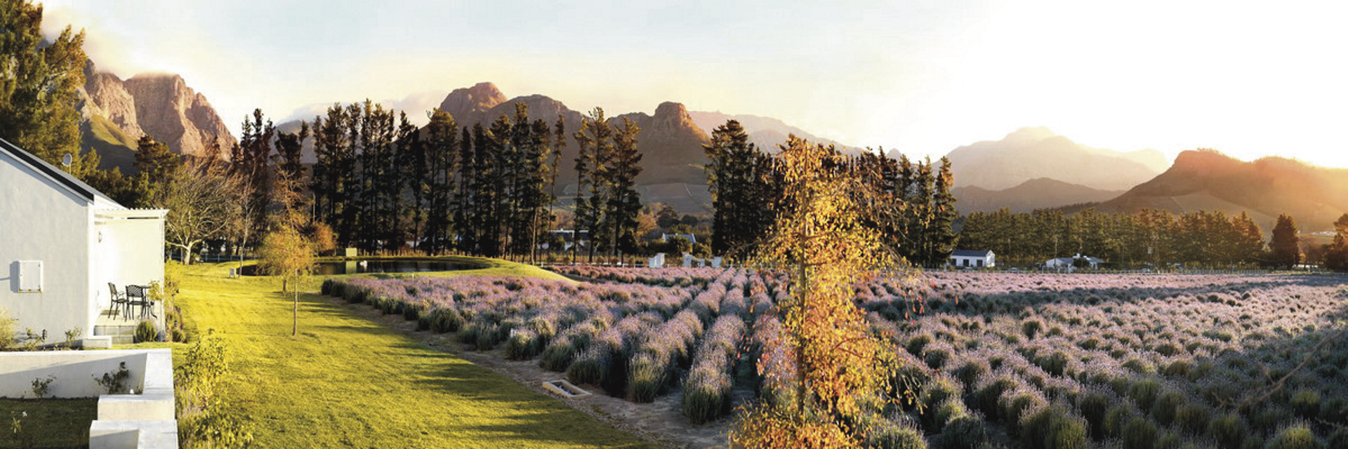Ca. 2 km außerhalb von Franschhoek inmitten duftender Lavendelfelder gelegen; Kapstadt ist ca. 70 km entfernt.