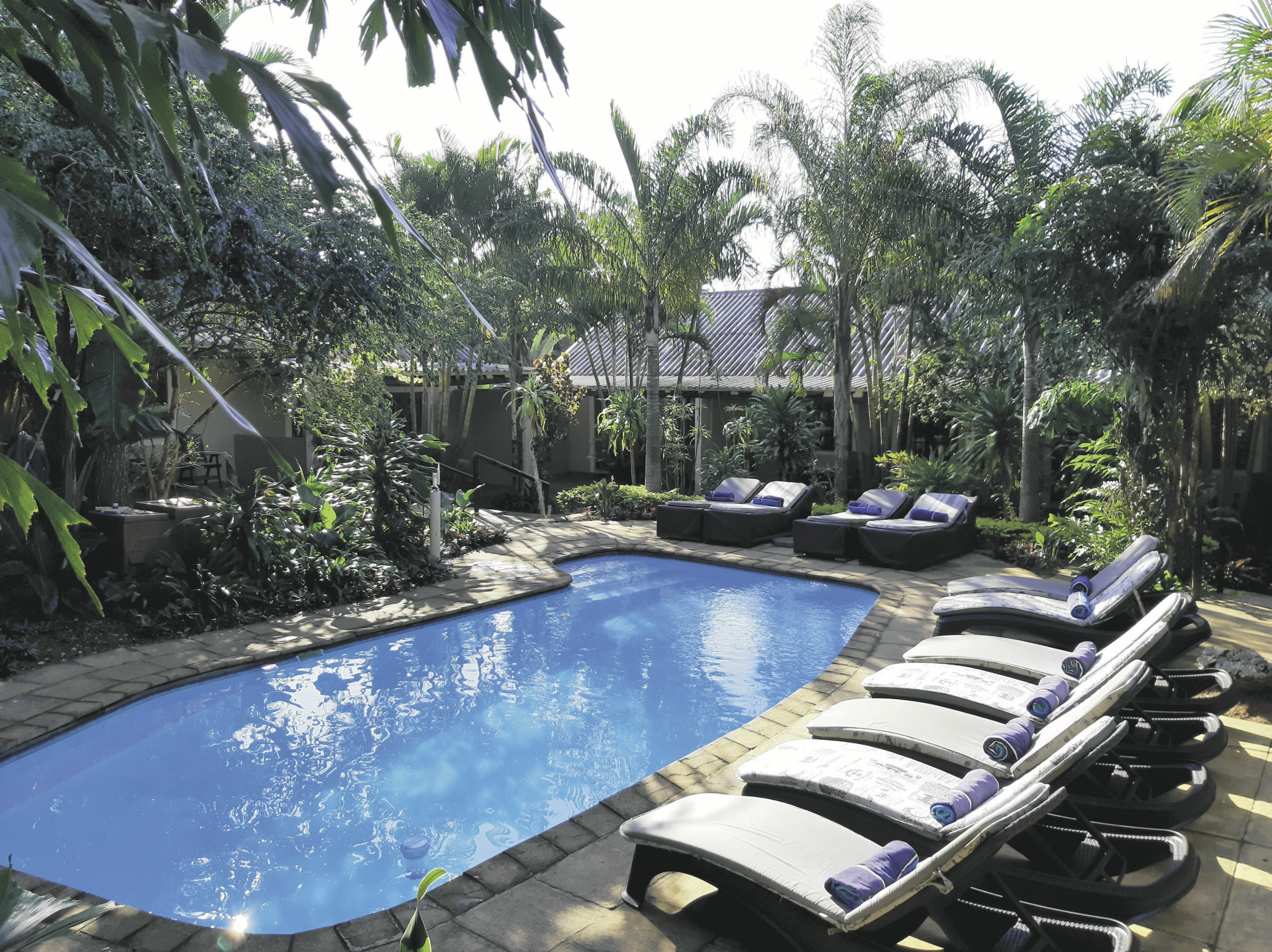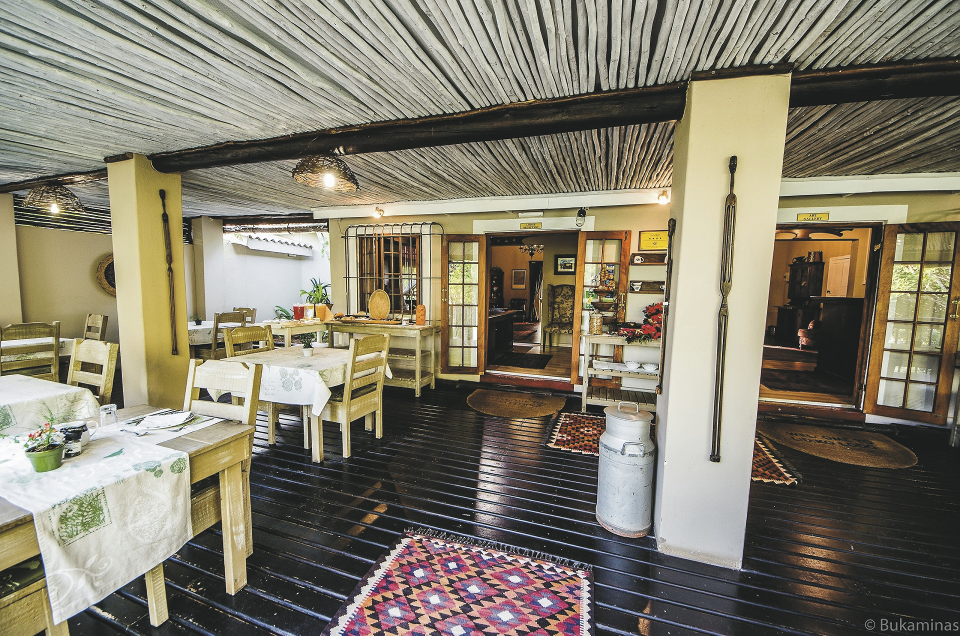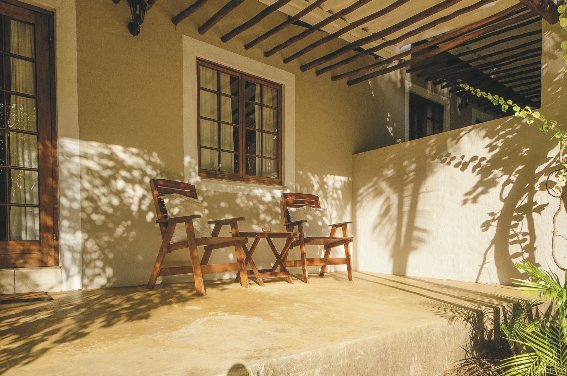 Das rietgedeckte Hauptgebäude, eines der ältesten Kolonialgebäude im Ort, und der Pool mit seiner Sonnenterrasse liegen in einer gepflegten Gartenanlage. Hier finden Sie das offene Speisezimmer mit großer Terrasse, kostenloses WLAN und eine Lounge mit Bibliothek.