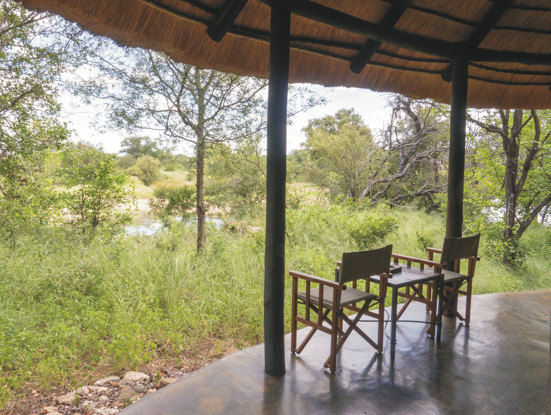 Die 15 geräumigen Bungalows im traditionellen Rundhüttenstil sind gemütlich im afrikanischen Stil eingerichtet und bieten entweder einen tollen Blick in den Busch oder auf das Flussufer. Jeder Bungalow verfügen über ein Bad mit Außendusche, Klimaanlage, Moskitonetz, Tee-/Kaffeezubereiter, Fön, Safe. Es gibt 2 Familienunterkünfte.