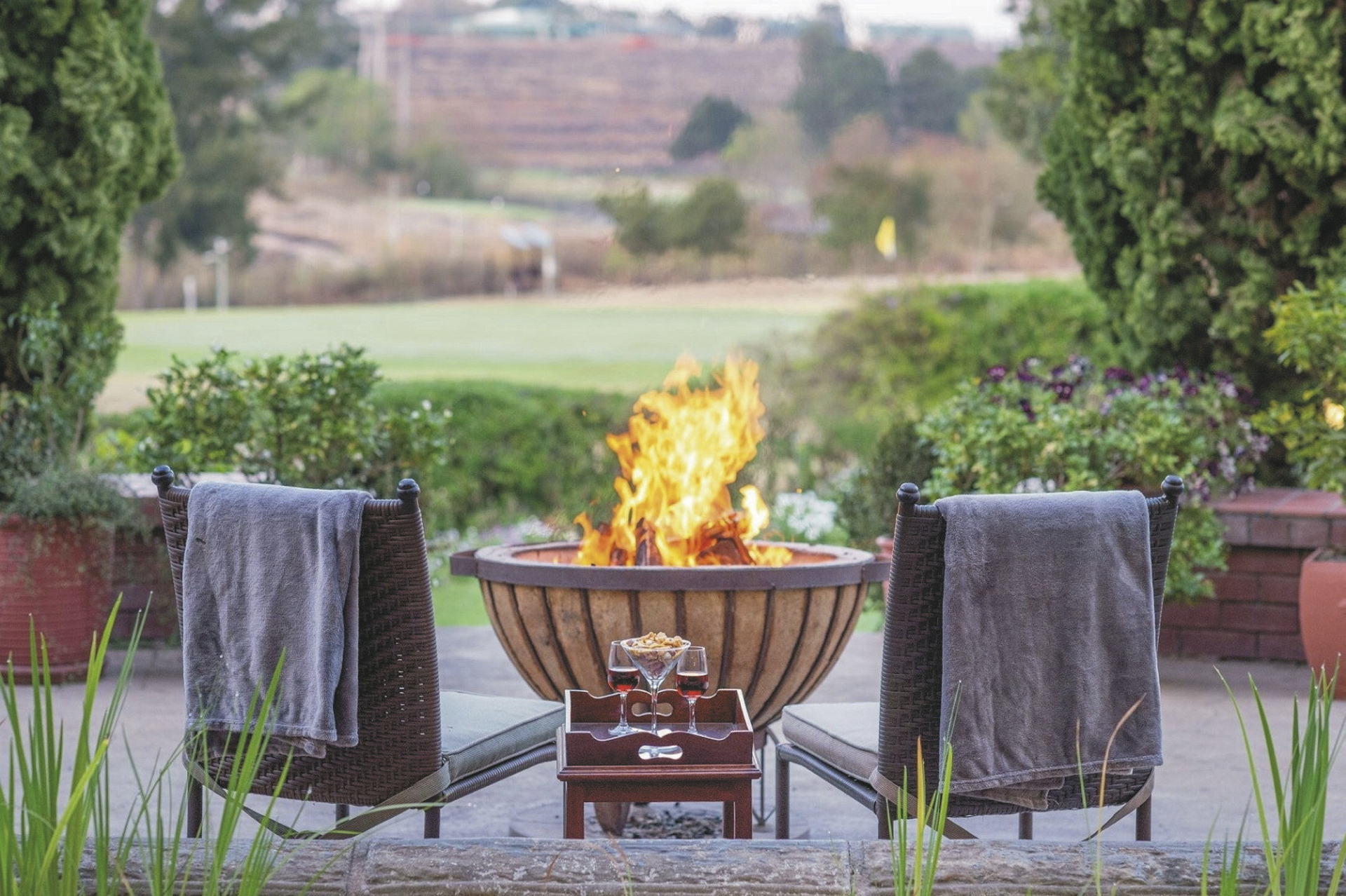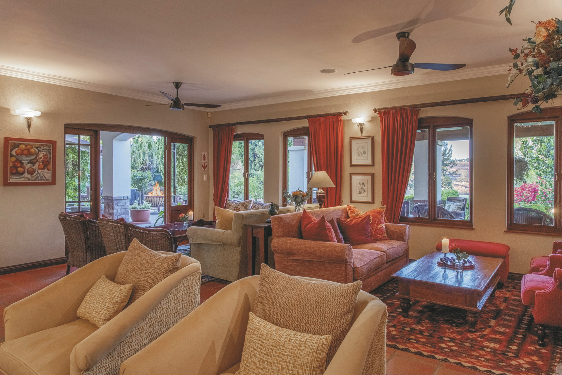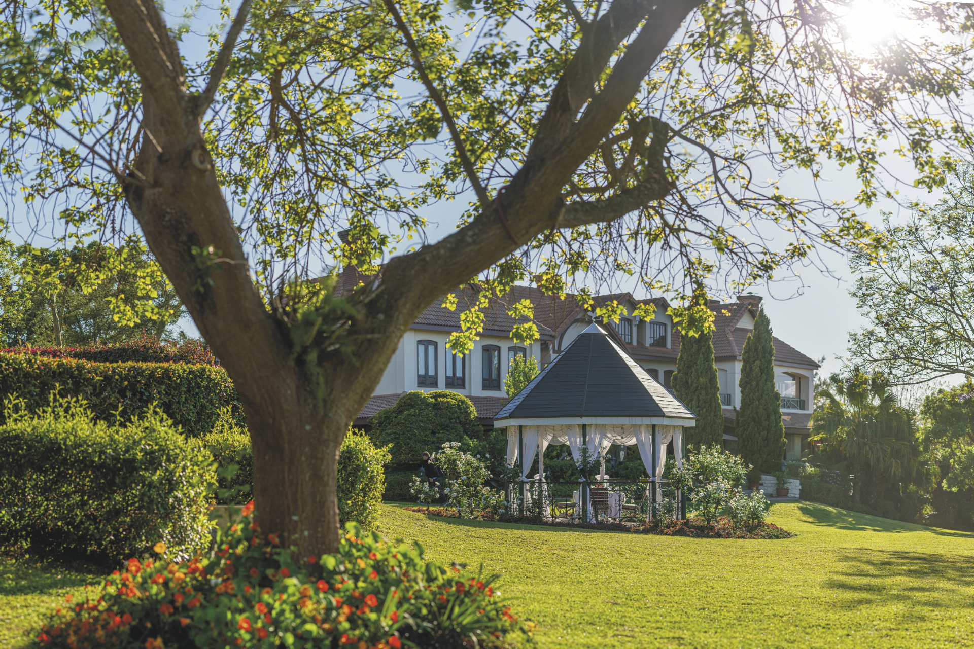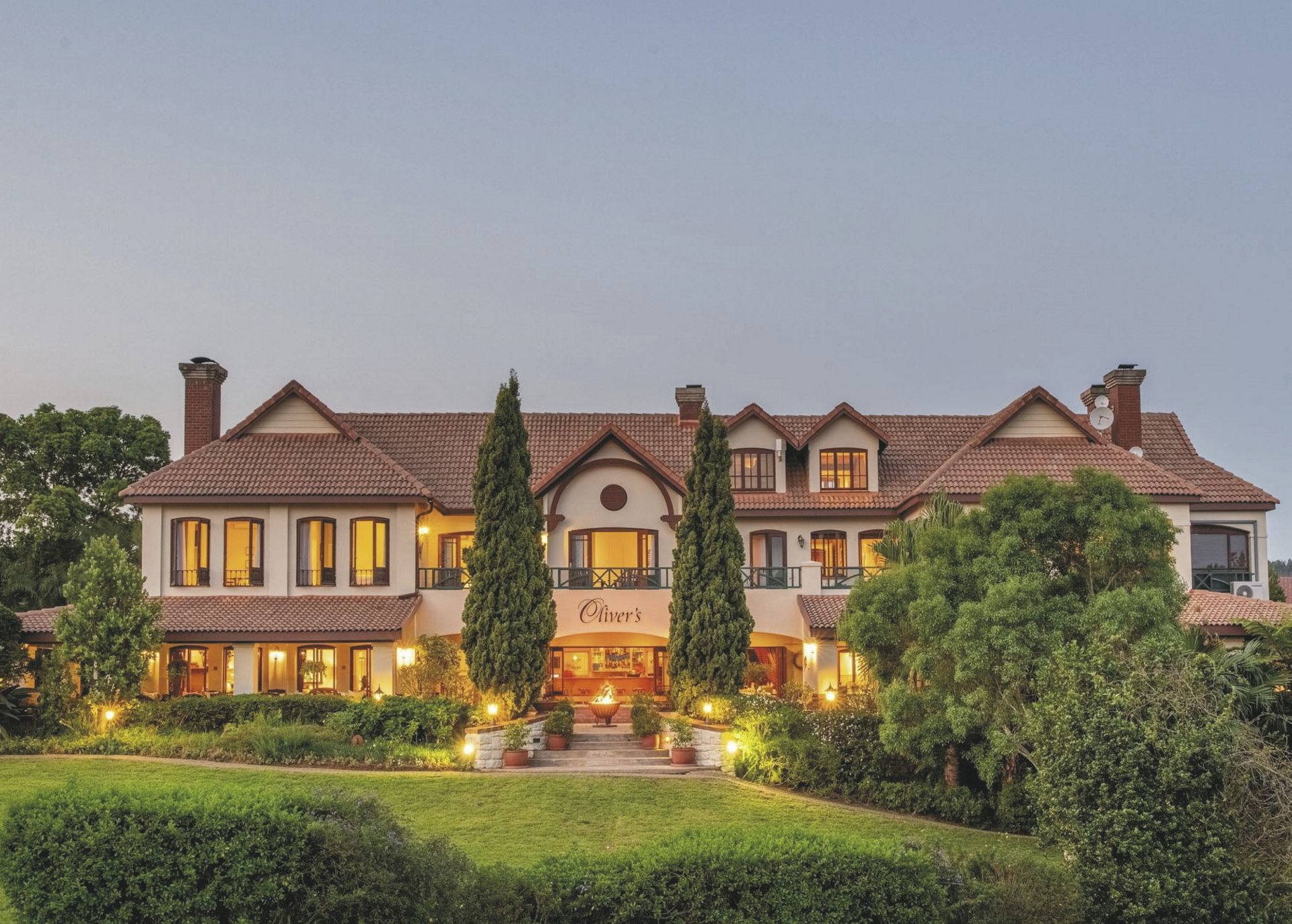 Das hauseigenes Restaurant bietet köstliche Gerichte mit südafrikanischem und österreichischem Einfluss, ergänzt durch eine Auswahl erlesener südafrikanischer Weine aus dem gut sortierten Weinkeller. Die Speisekarte ist so aufgebaut, dass die nachhaltige Beschaffung lokal produzierter Produkte saisonal gewährleistet ist. Bei schönem Wetter können Sie auch auf der Terrasse mit Blick über den Golfplatz die Köstlichkeiten der Küche genießen. Etwas ganz Besonderes ist ein Abendessen im Weinkeller, bei dem man sich in Österreich wähnt, oder ein romantisches Dinner im Gartenpavillon. Der zentral gelegene Poolbereich ermöglicht ein entspanntes Sonnenbad nach einem ereignisreichen Tag entlang der Panorama Route. Den Sonnenuntergang genießt man am besten von der Terrasse oder bei einem Spaziergang durch den grünen Garten. Beste Entspannung finden Sie im Oliver’s Wellness & Beauty Center z.B. bei einer Massage durch eine der professionellen Therapeutinnen. Das familienfreundliches Haus verfügt über eine spezielle Kinderspeisekarte und einen Spielbereich im Garten für die kleinen Gäste. Ihr Fahrzeug ist auf dem gesicherten Parkplatz bestens aufgehoben.