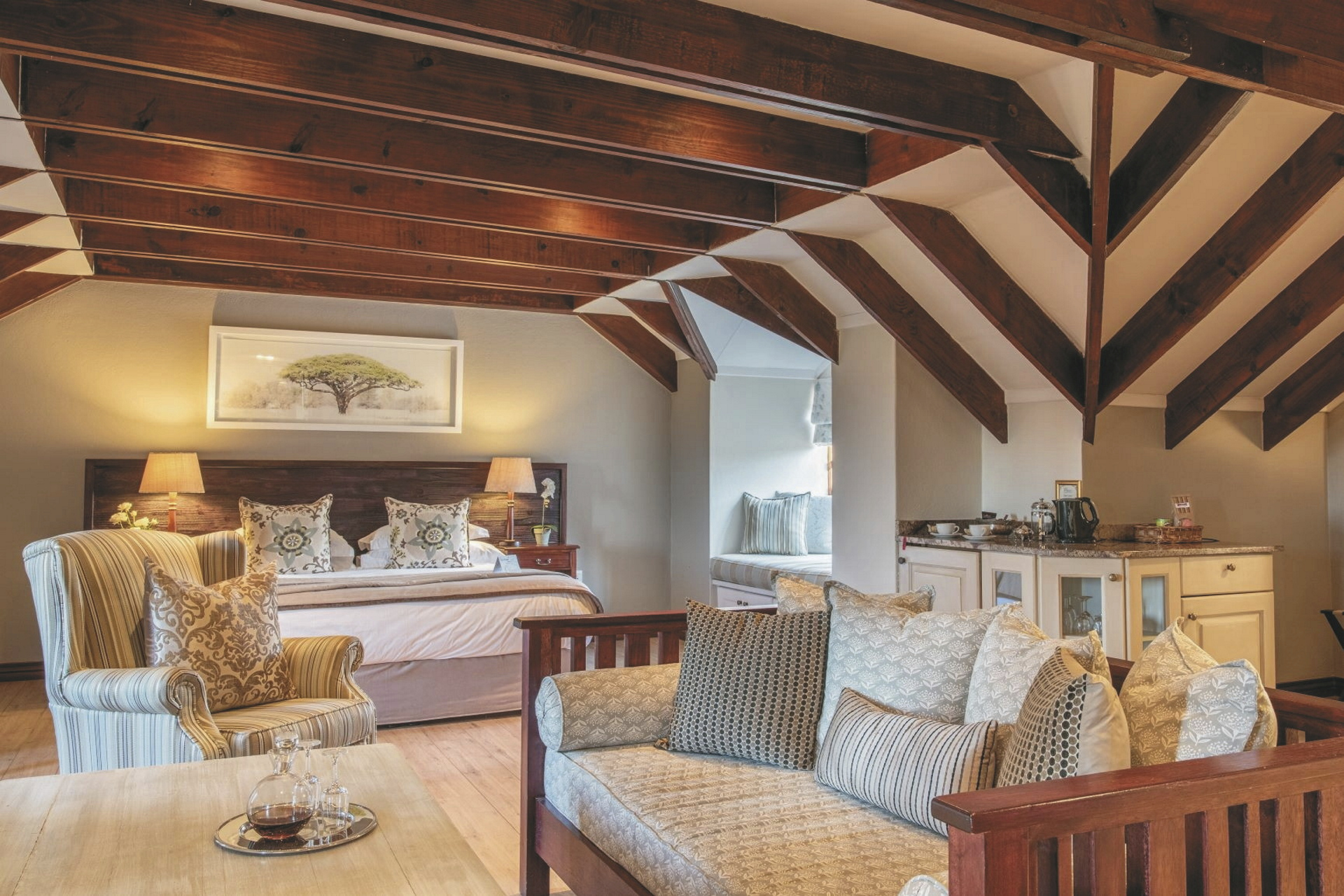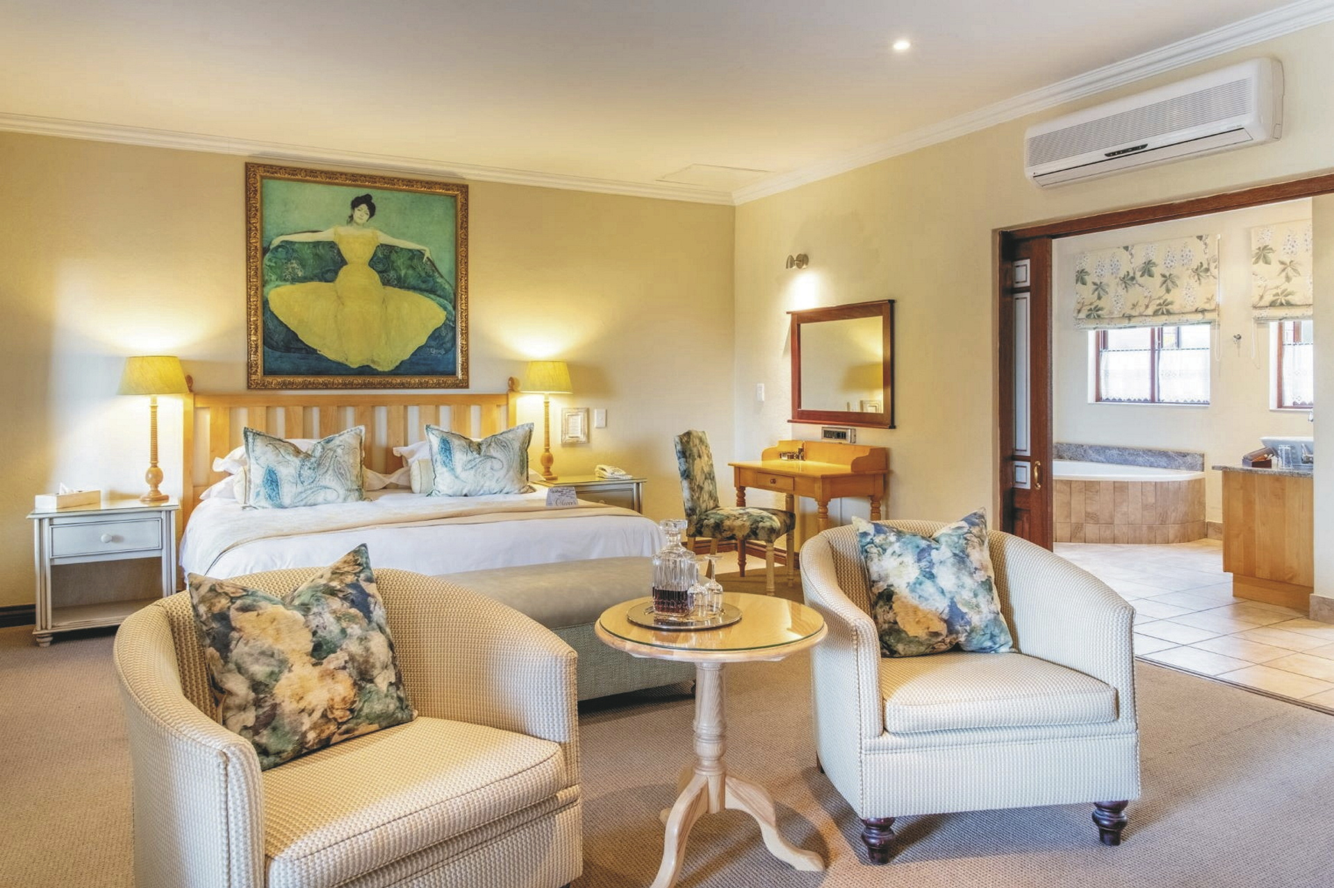 Die 13 individuell eingerichteten Zimmer und Suiten sind klassisch, modern bieten aber vor allem ganz viel Gemütlichkeit und lassen keine Wünsche offen. Sie sind ausgestattet mit einem großzügigem Bad, Fön, TV, Telefon, Minibar, Klimaanlage/Heizung, Tee-/Kaffeezubereiter sowie Balkon oder Terrasse. Die Luxus-Zimmer haben zusätzlich einen Loungebereich mit Kamin. Die Executive-Suiten haben ein abgetrenntes Schlafzimmer sowie eine Außendusche. Für Familien gibt es Zimmer mit Verbindungstür und ein Familiencottage mit 2 Schlaf- und Badezimmern.