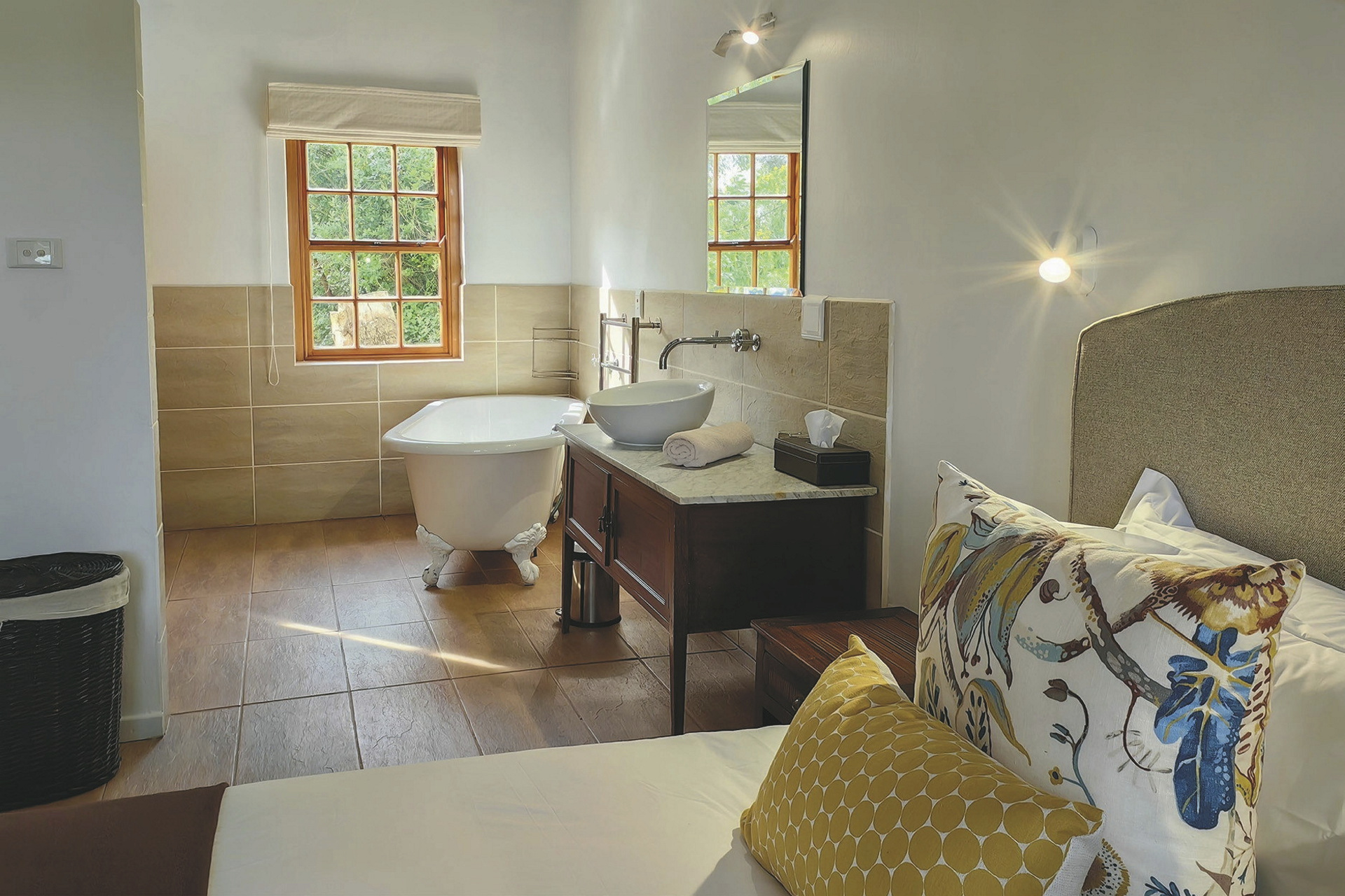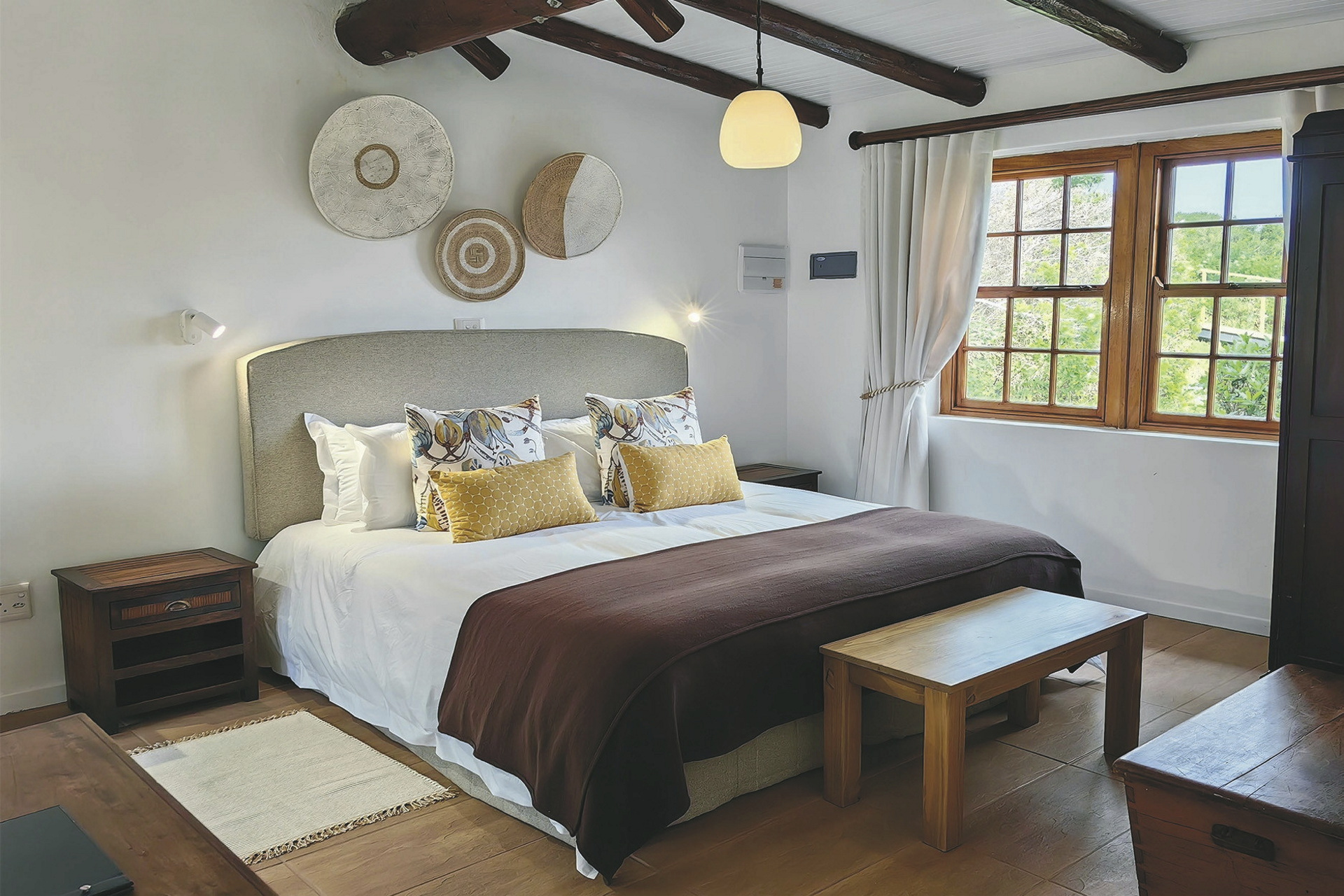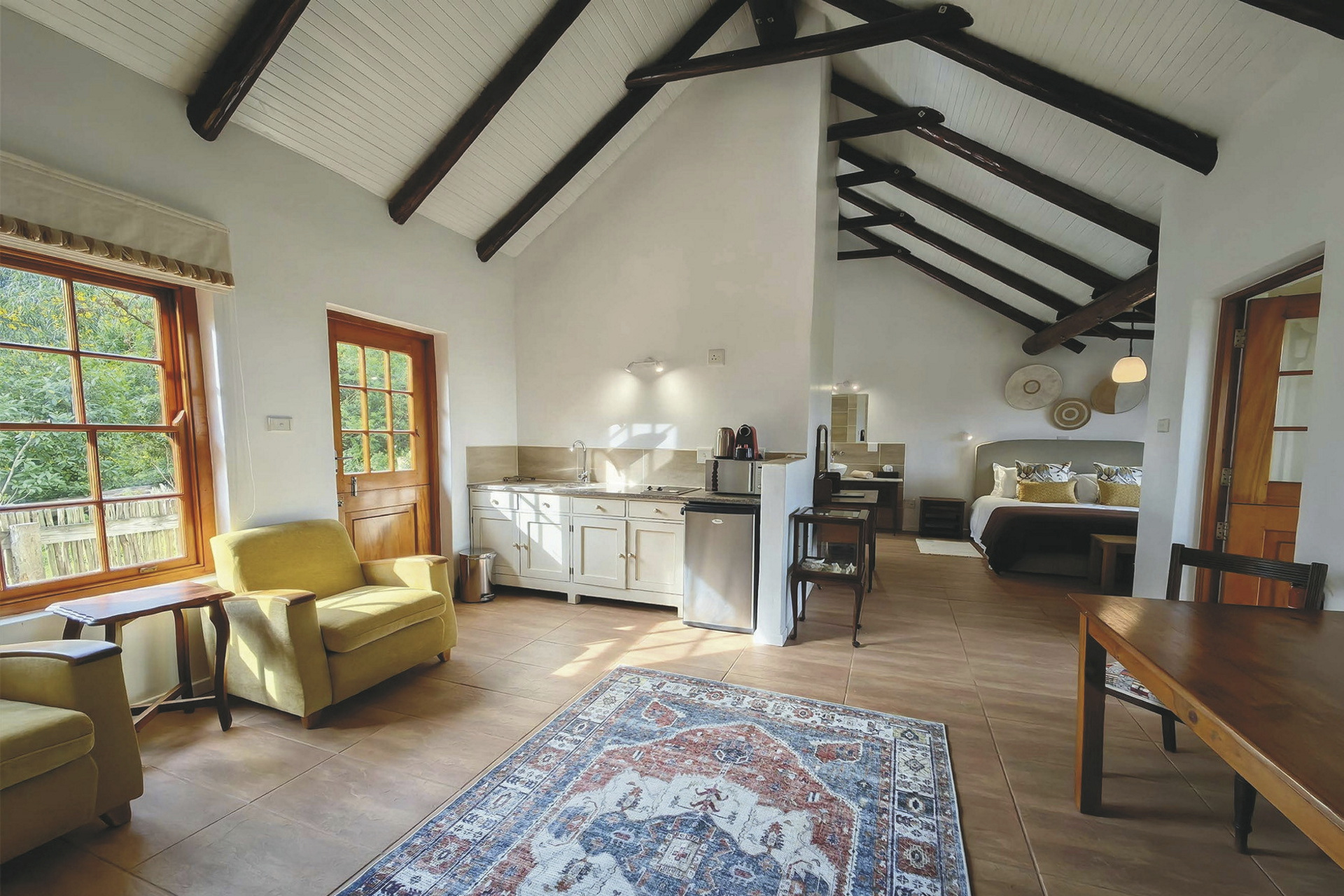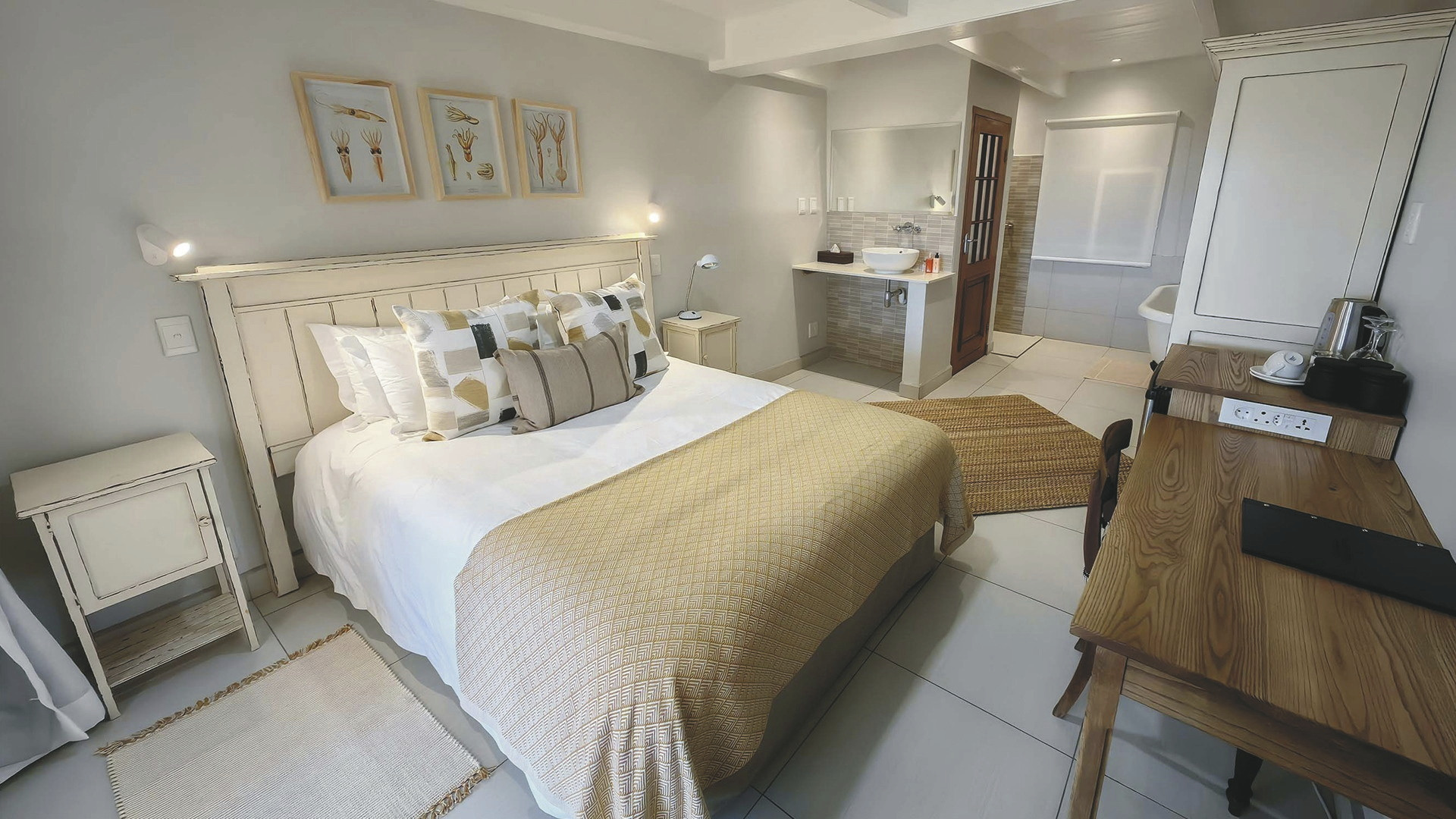 Es gibt 10 individuell eingerichtete Standardzimmer und 4 großzügige Suiten, alle mit hohen Decken und gemütlicher Farmhaus-Möblierung. Alle Einheiten verfügen über ein eigenes, teils offenes Badezimmer sowie einen Safe, Kühlschrank, Fön, Tee-/Kaffeezubereiter und eine überdachte Terrasse. Die 4 großzügigen Suiten sind im kapholländischen Stil erbaut, durch die Dünenvegetation sieht man das Meer glitzern. Jede Suite verfügt außerdem über eine Küchenzeile, einen Kamin, Fußbodenheizung und einen offenen Wohn-/Schlafbereich. Es stehen auch Familienzimmer mit 2 Schlafzimmern oder Zustellbett zur Verfügung. Alle Zimmer verfügen über kostenloses WLAN.
