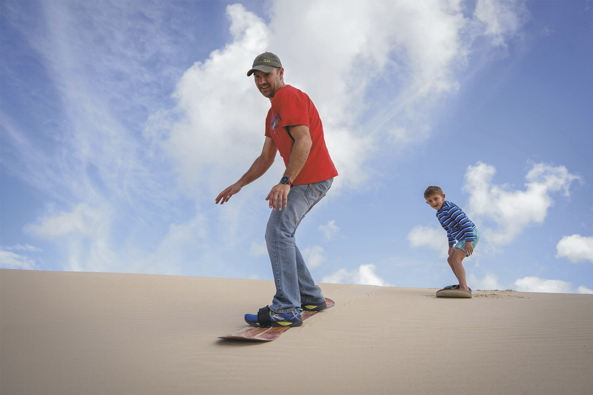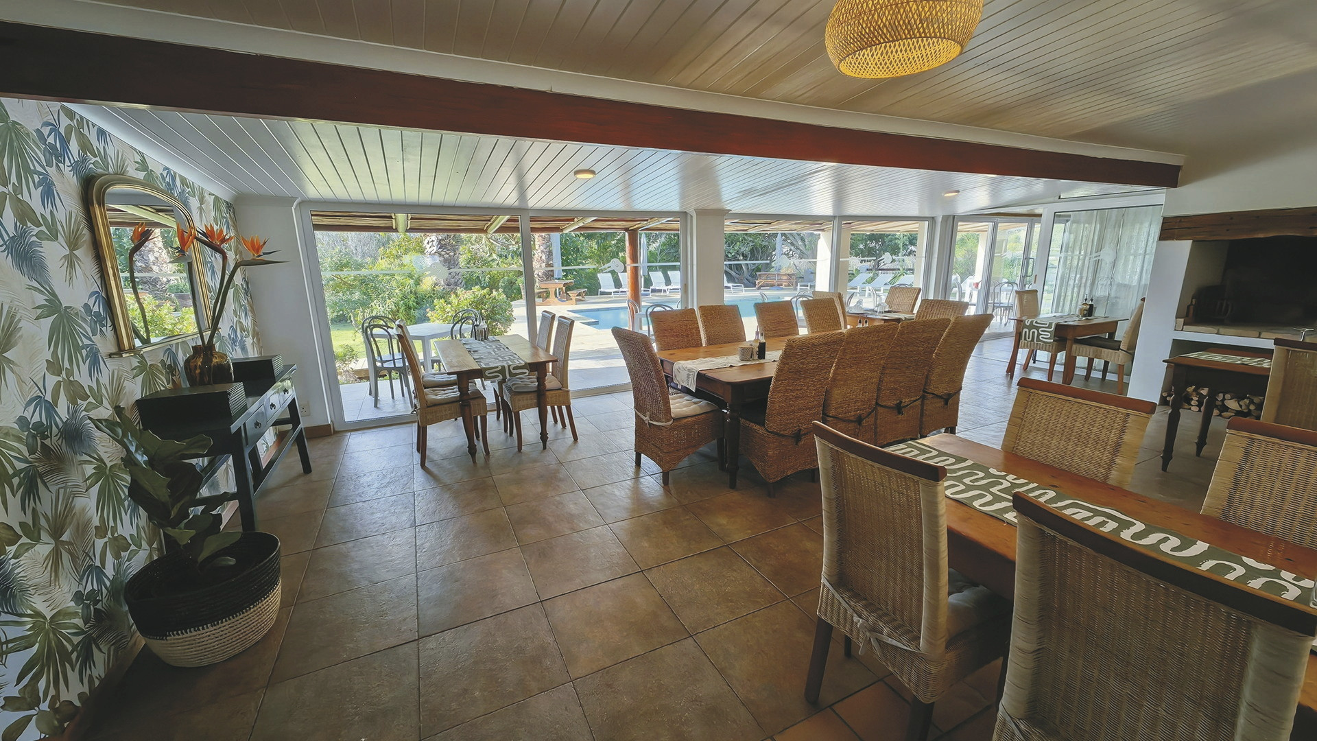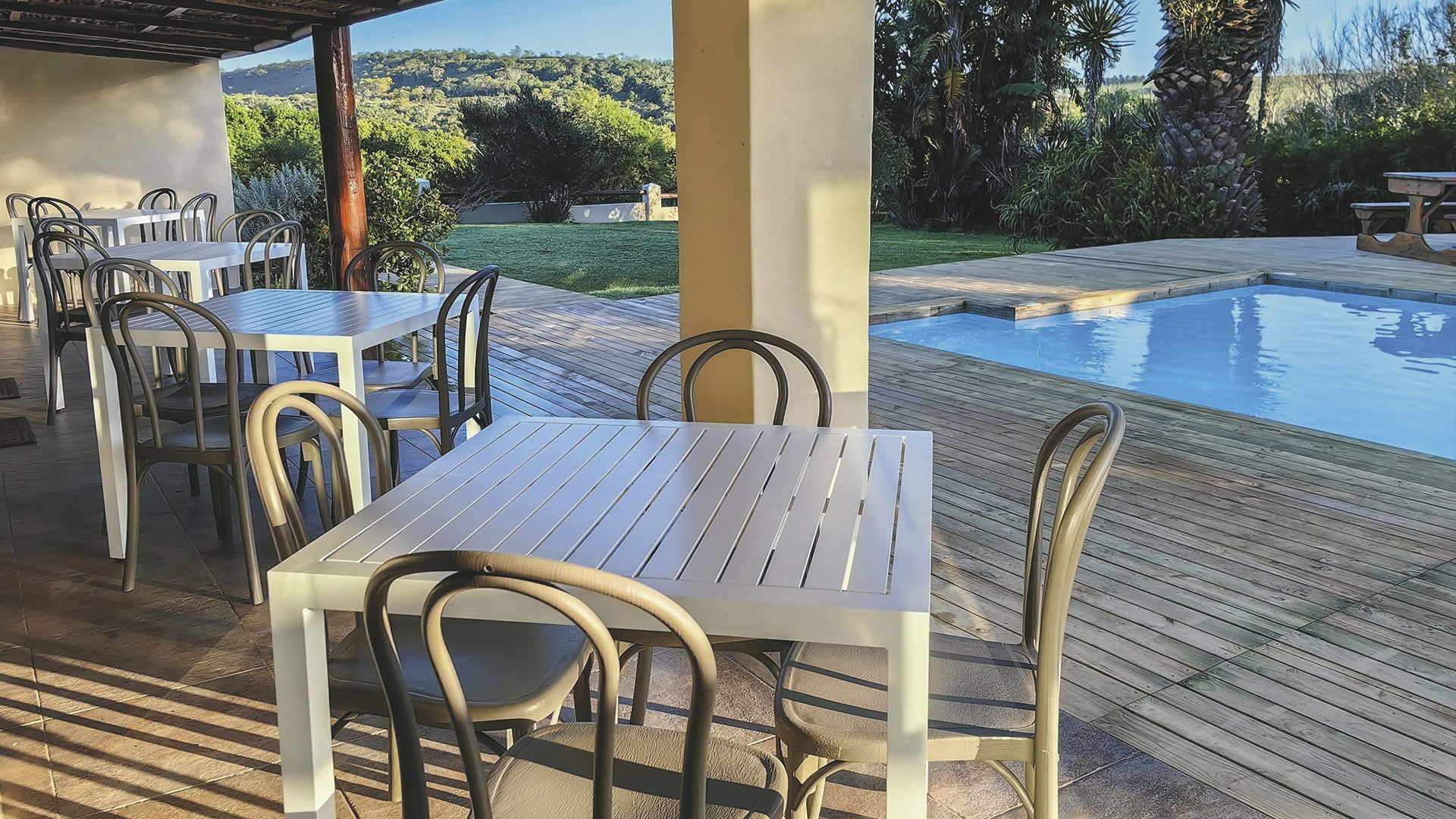 Die kleine, gemütliche Lodge, direkt hinter den Dünen gelegen, ist ein Oase der Ruhe und Erholung. Im hellen Haupthaus befinden sich das Restaurant und eine großzügige behaglich möblierte Bar, in der Sie abends gemütlich am Kamin entspannen können. Bei gutem Wetter genießen Sie die ausgezeichneten Mahlzeiten auf der Terrasse, welche gleich an den windgeschützt gelegenen Pool mit seinen einladenden Sonnenliegen angrenzt. Auch ein schattiges Plätzchen findet sich im Garten zu jeder Zeit. Vor dem Haus bietet eine erhöhte Aussichtsplattform den perfekten Platz um die Sonne am Ende eines wunderbaren Tages hinter den Dünen im Meer versinken zu sehen. Eine Vielzahl optionaler Aktivitäten stehen zur Auswahl: geführte Reitausflüge, auch für Ungeübte und Kinder; Sandboarden, geführte Dünensafari mit dem Quadbike, Besuch beim Milchbauern nebenan. Außerdem können Fatbikes geliehen und die traumhafte Landschaft auf gut markierten Wanderwege erkundet werden. Ein besonderes Erlebnis ist ein Picknick am Strand, auf einer schattigen Bank mit grandioser Aussicht auf den Indischen Ozean.
