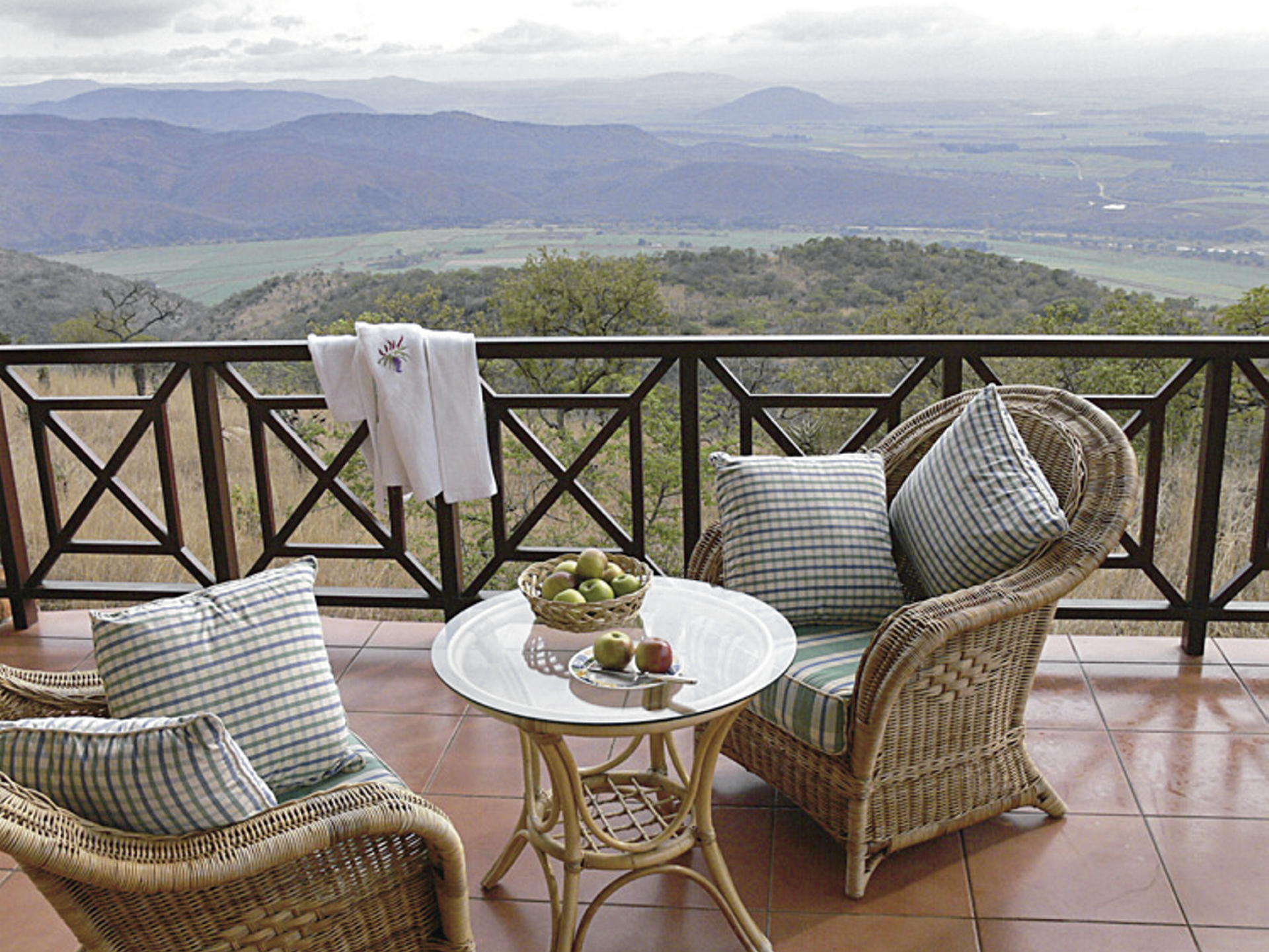 Die 7 eleganten, individuell eingerichteten und geräumigen Suiten liegen im Garten etwas abseits des Haupthaus und bieten bereits beim Aufwachen einen atemberaubenden Blick auf das tiefer gelegene Wildreservat. Neben einem luxuriösen Badezimmer sind die Suiten ausgestattet mit einem Fön, Safe, Minibar, Tee-/Kaffeezubereiter sowie kostenfreiem WLAN, auf weitere Technik wurde bewusst verzichten, einen Fernseher finden Sie im Haupthaus. 3 Treppenstufen führen Sie vom Schlafzimmer in den Loungebereich und dann weiter auf eine große überdachte Terrasse. Die Honeymoon-Suite überrascht mit einer unvergleichlichen Aussicht, einem Marmorbad und einer separaten Lounge, gehalten in kräftigen Erdfarben.Für Familien mit größeren Kindern gibt es es die Möglichkeit zwei nebeneinander liegenden Suiten zu buchen, über den Balkon sind diese miteinander verbunden. Kleinere Kinder können in einem zusätzlichen Bett in der Suite der Eltern komfortabel untergebracht werden.