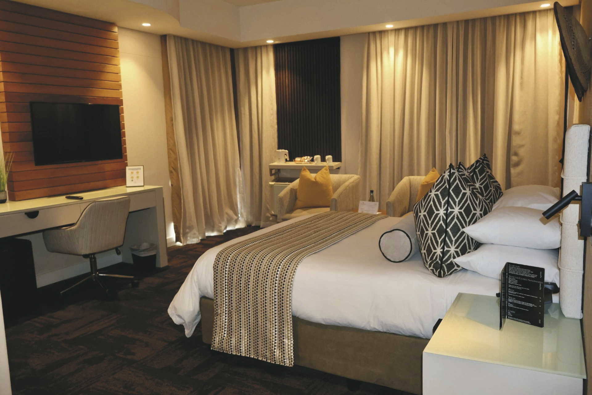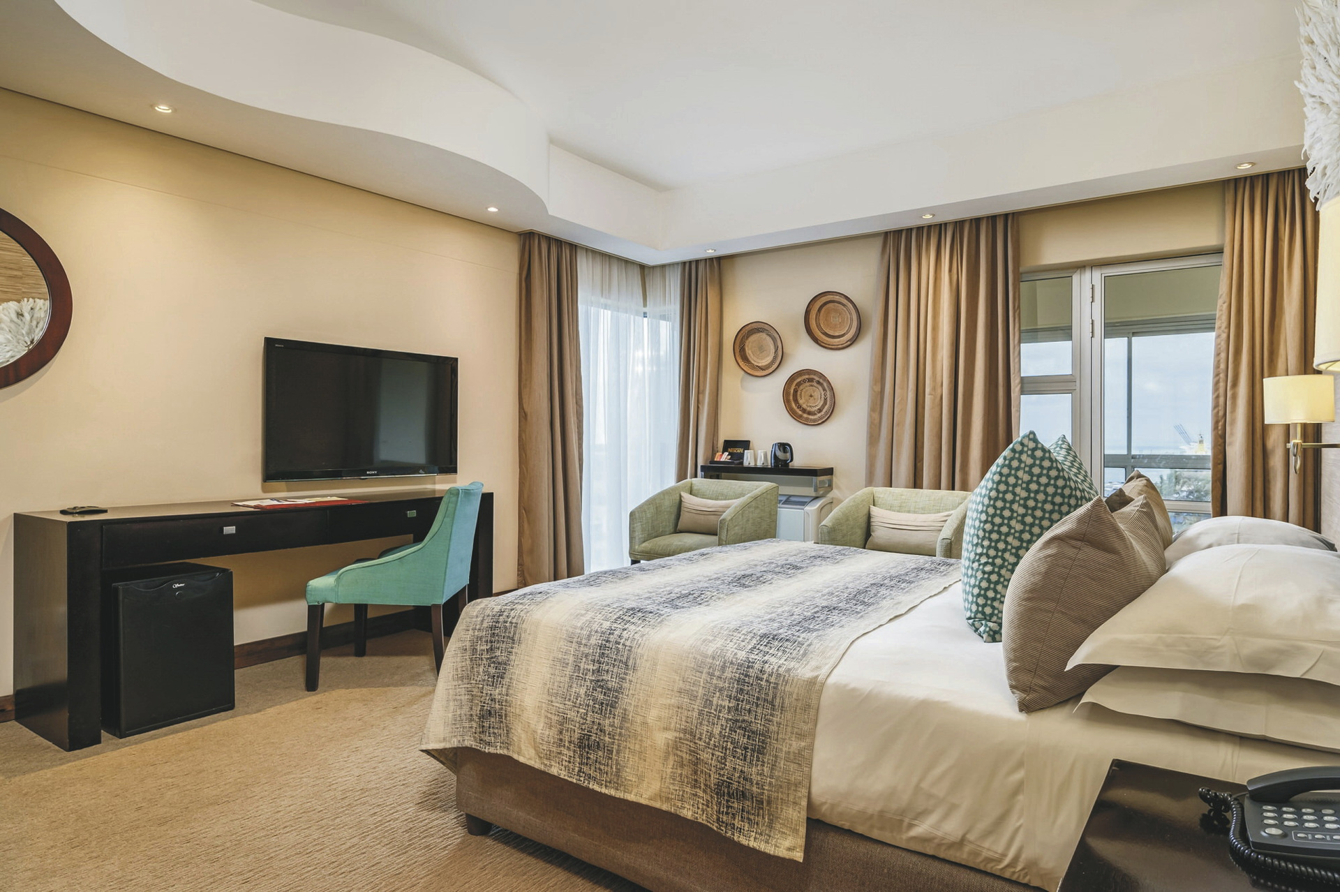 Die 79 modernen Zimmer sind in feinsten afrikanischen Farben dekoriert, bieten viel Platz und heißen Sie herzlich Willkommen. Alle Zimmer glänzen mit einem spektakulärem Blick über den Hafen und die Algoa Bucht. Jedes verfügt über ein modernes Bad, außerdem für Ihren Komfort über eine Klimaanlage, Telefon, Fön, TV, kostenloses WLAN, Kaffee-/Teezubereiter und einen Safe. Die geräumige Suite hat zusätzlich eine Lounge und einen Balkon. Für Familien gibt es Zimmer mit einer Schlafcouch.